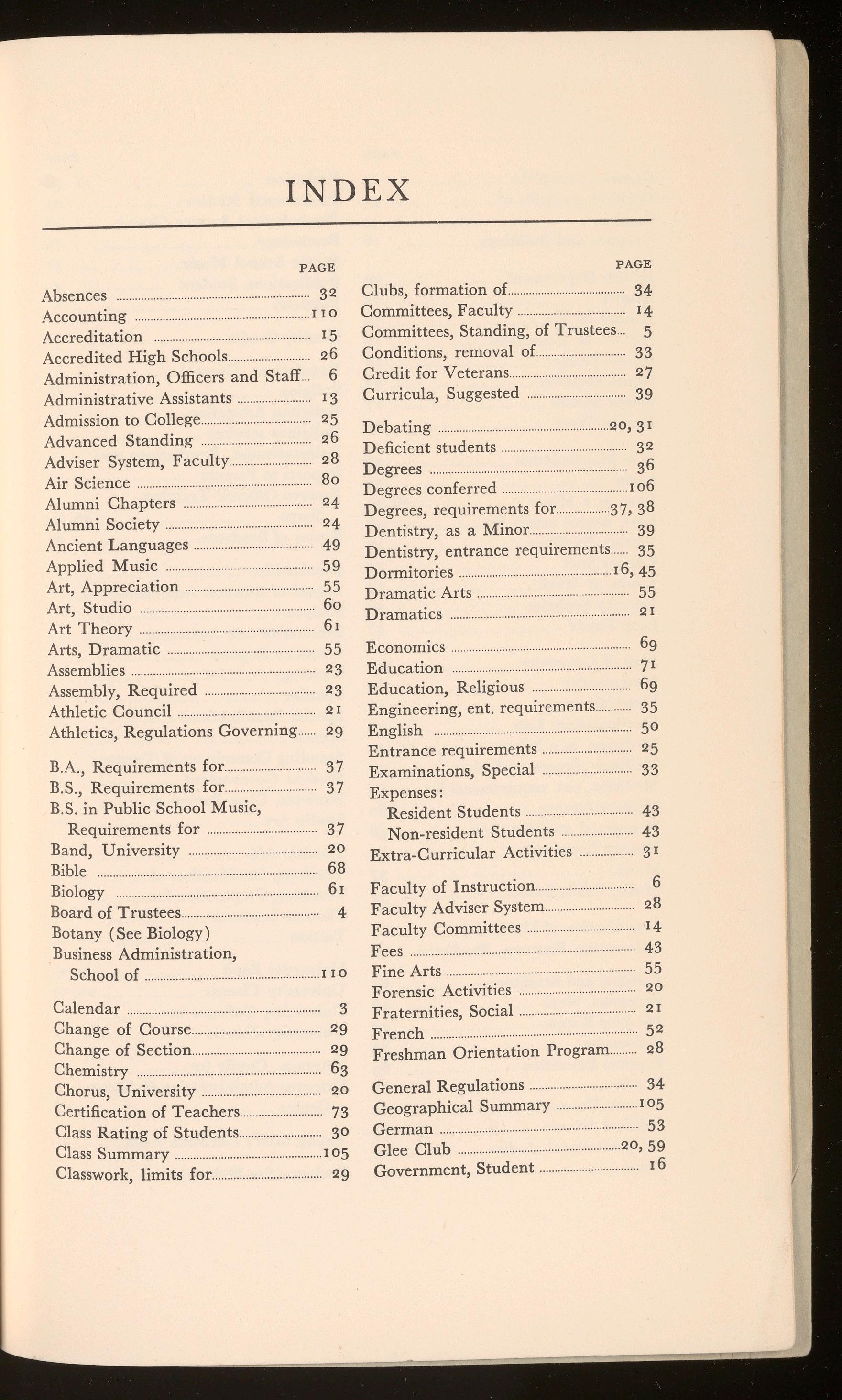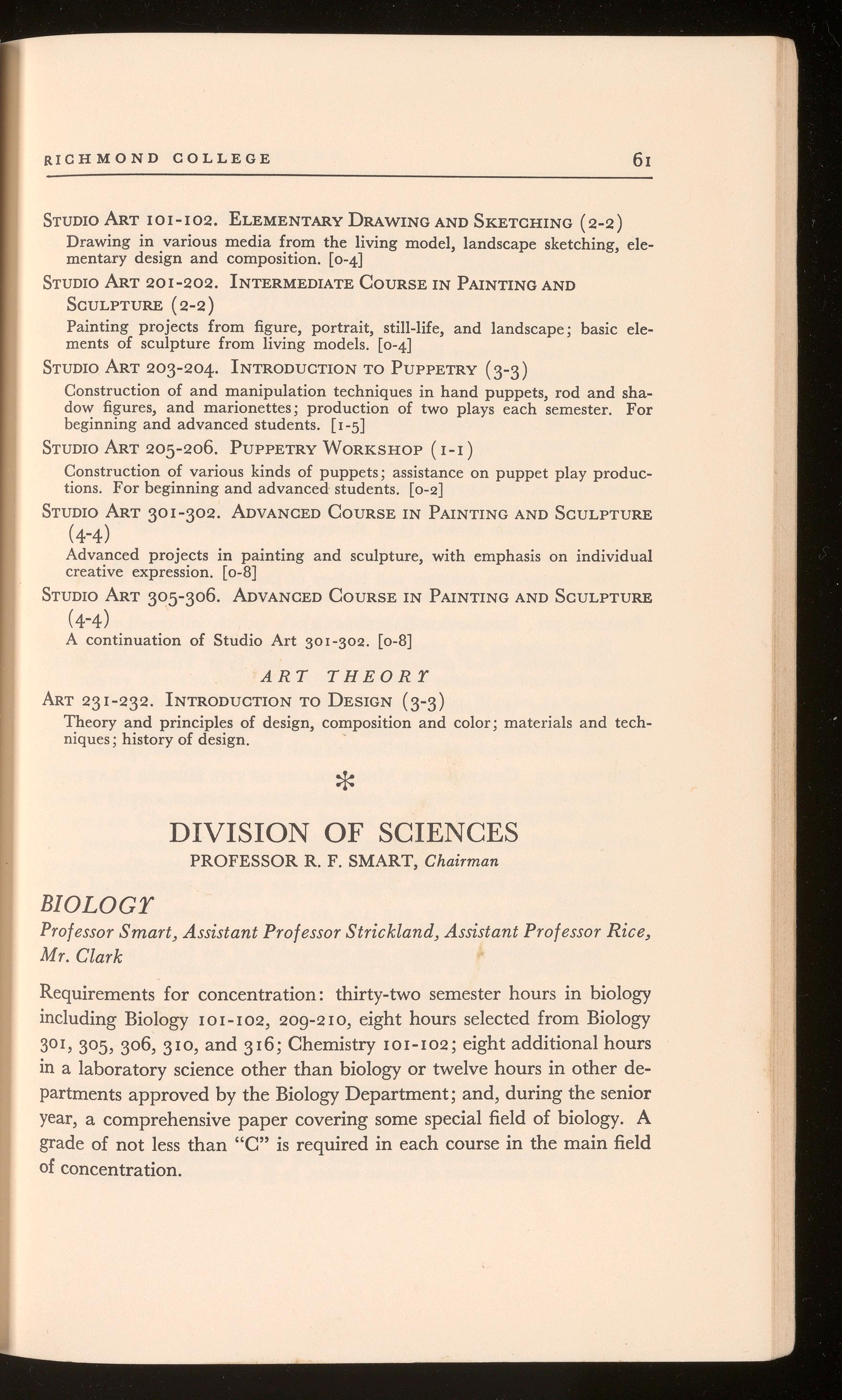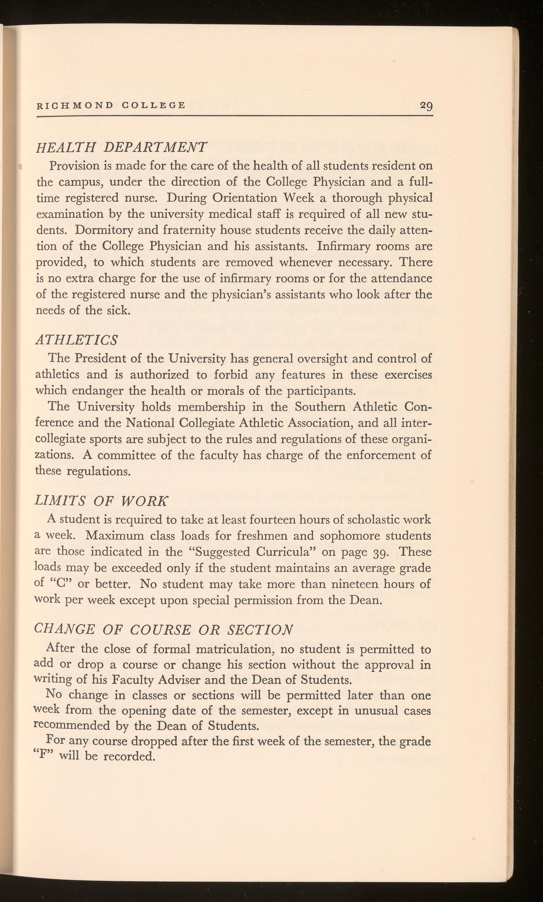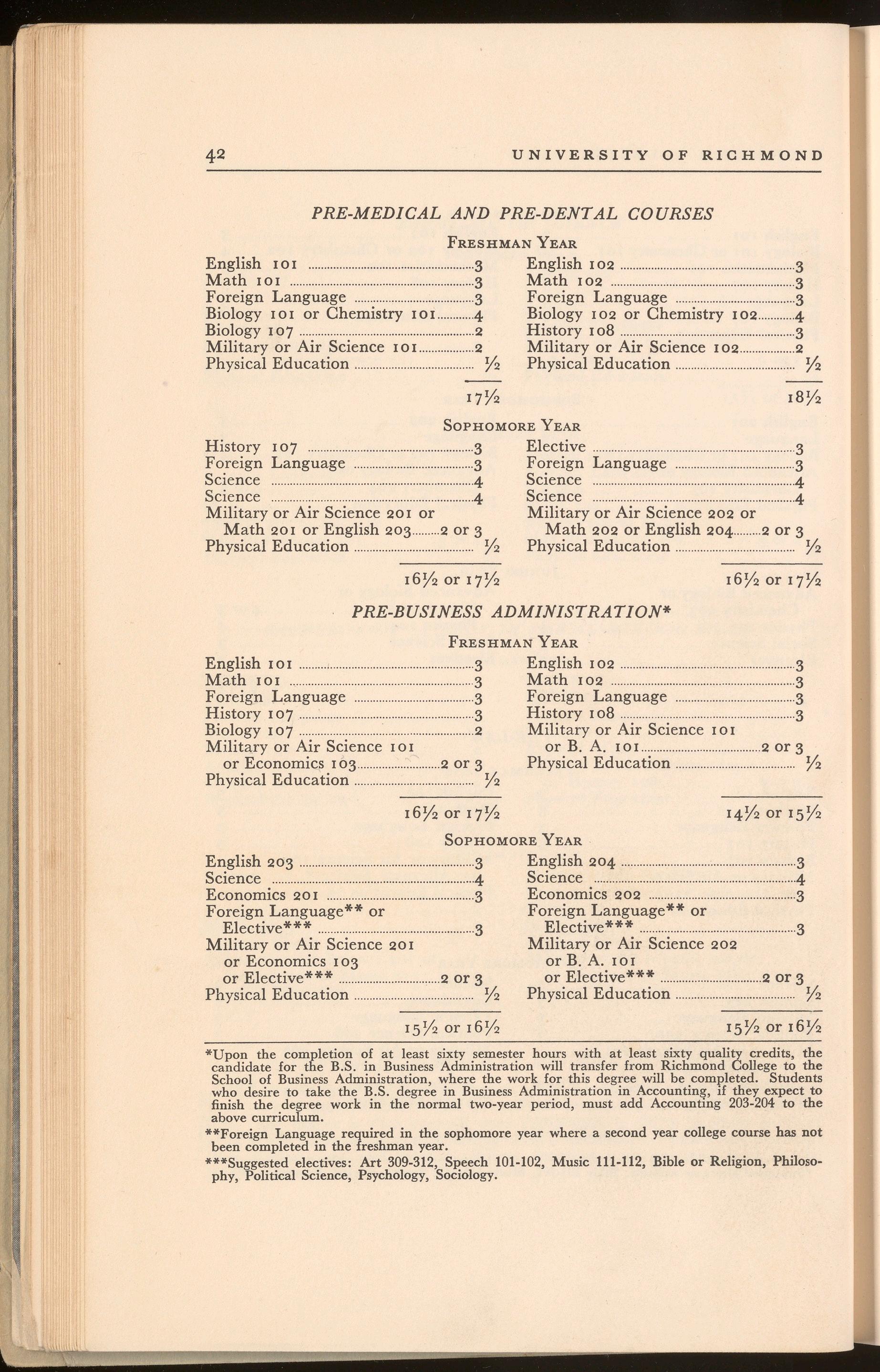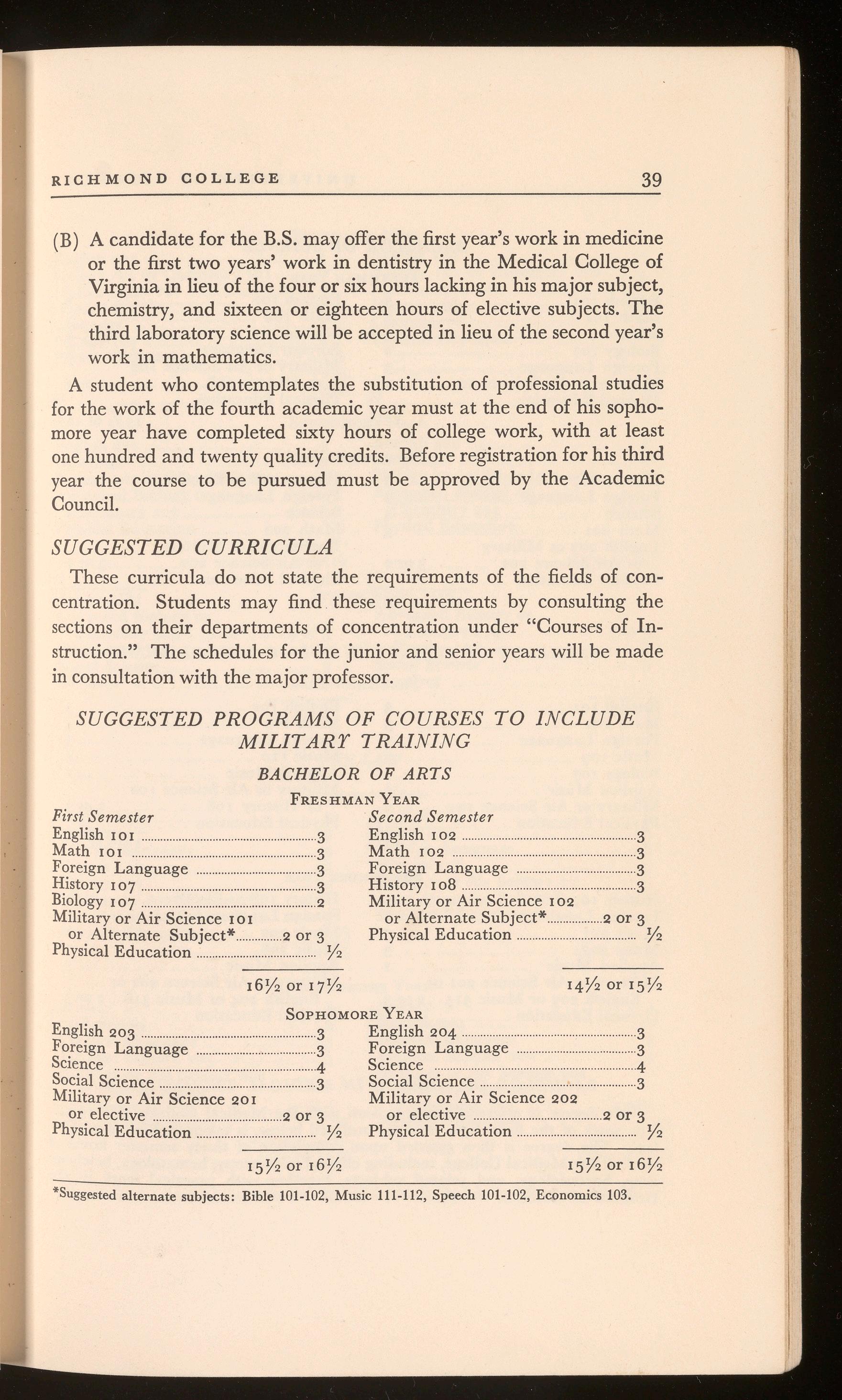 The School of Business Administration is designed to serve both full-time and part-time students. Full-time students who desire to work for the degree of Bachelor of Science in Business Administration are eligible to enter the Business School upon the completion of sixty hours of work (including six in principles of economics or its equivalent) with sixty quality credits. This preliminary work in liberal arts courses can be taken at Richmond College or any other accredited school.