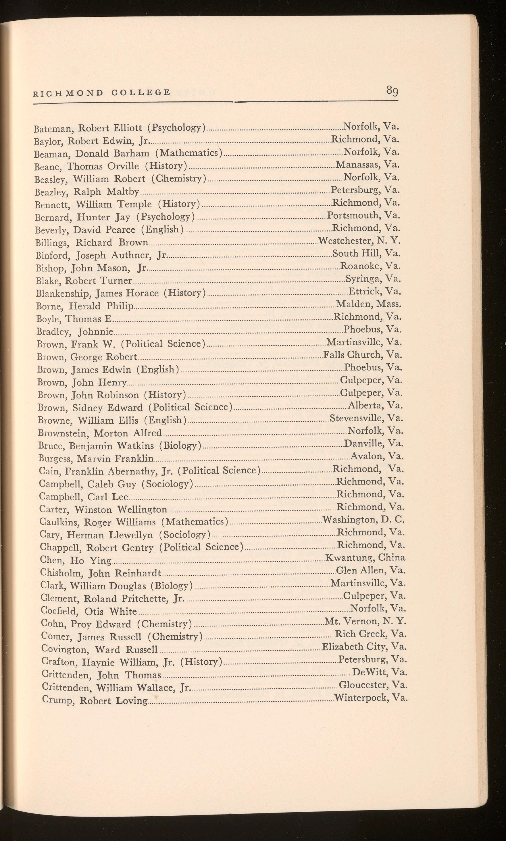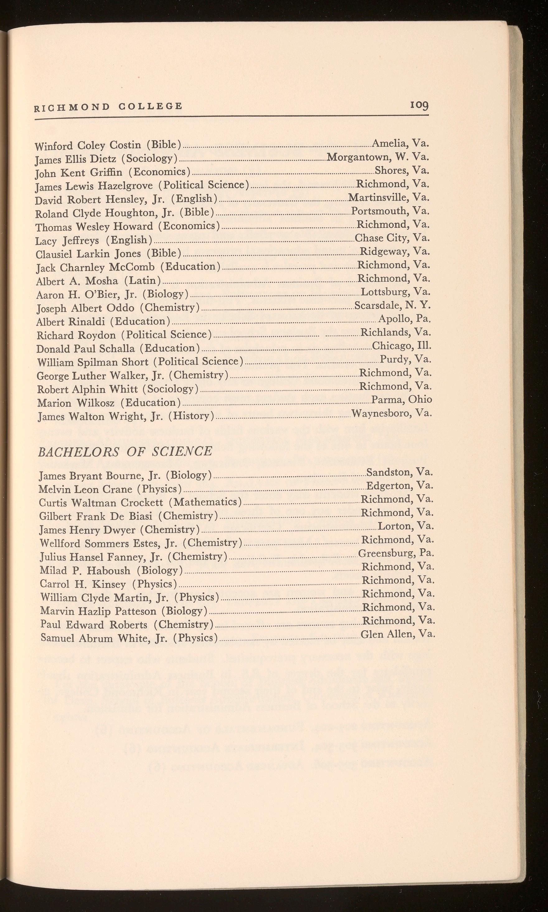 Robert Alphin Whitt (Socio logy ) ..................................Richmond, Va.