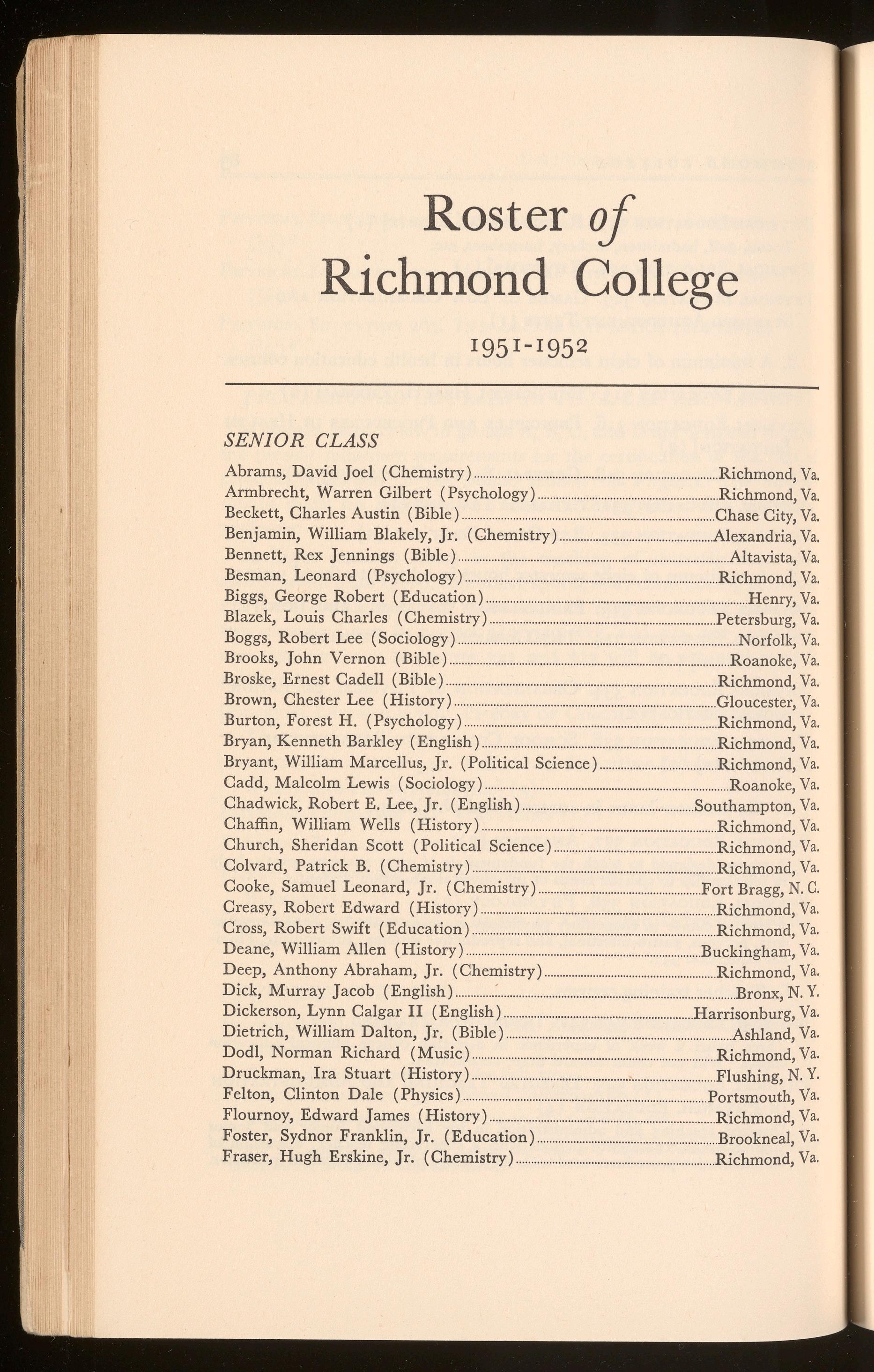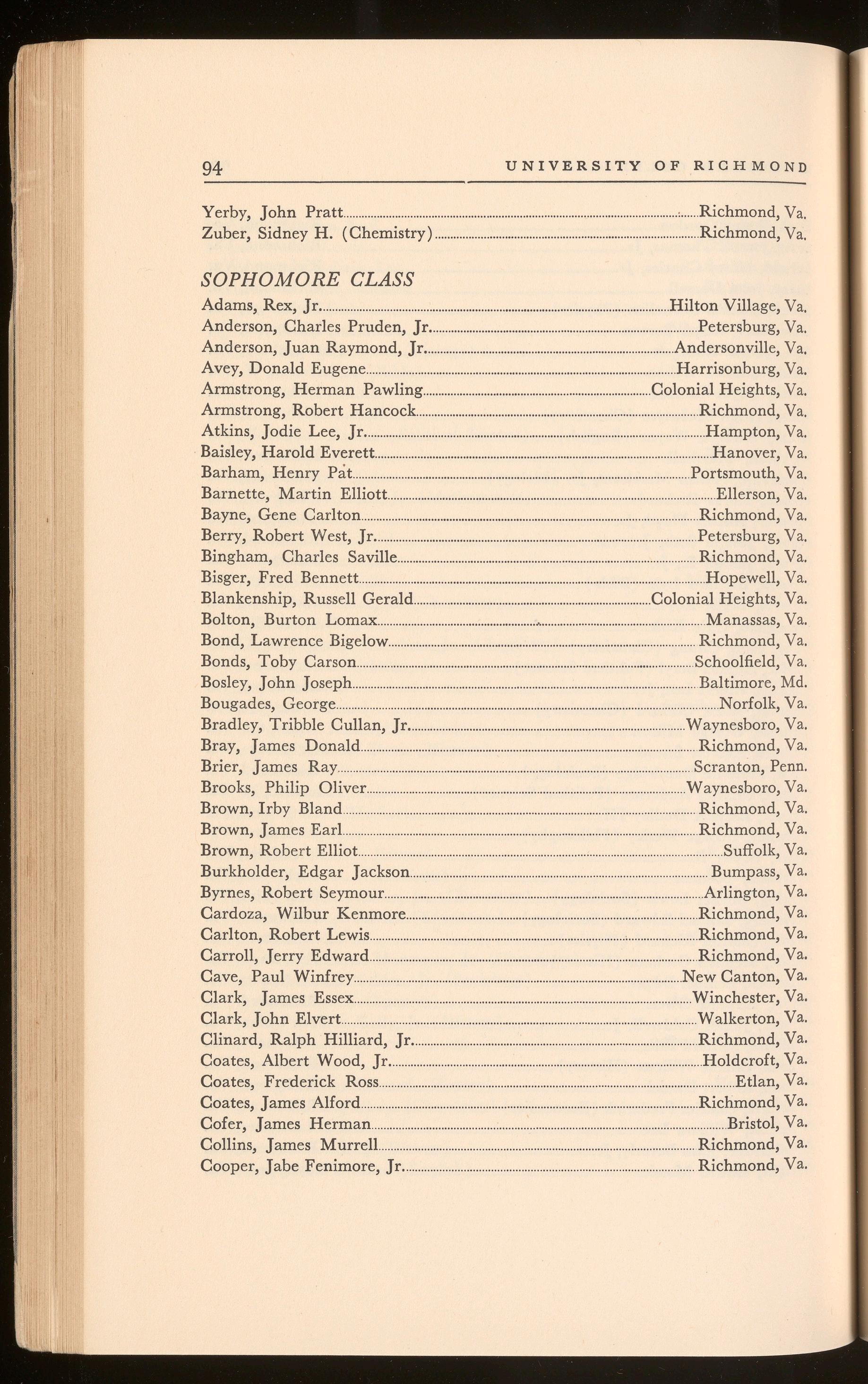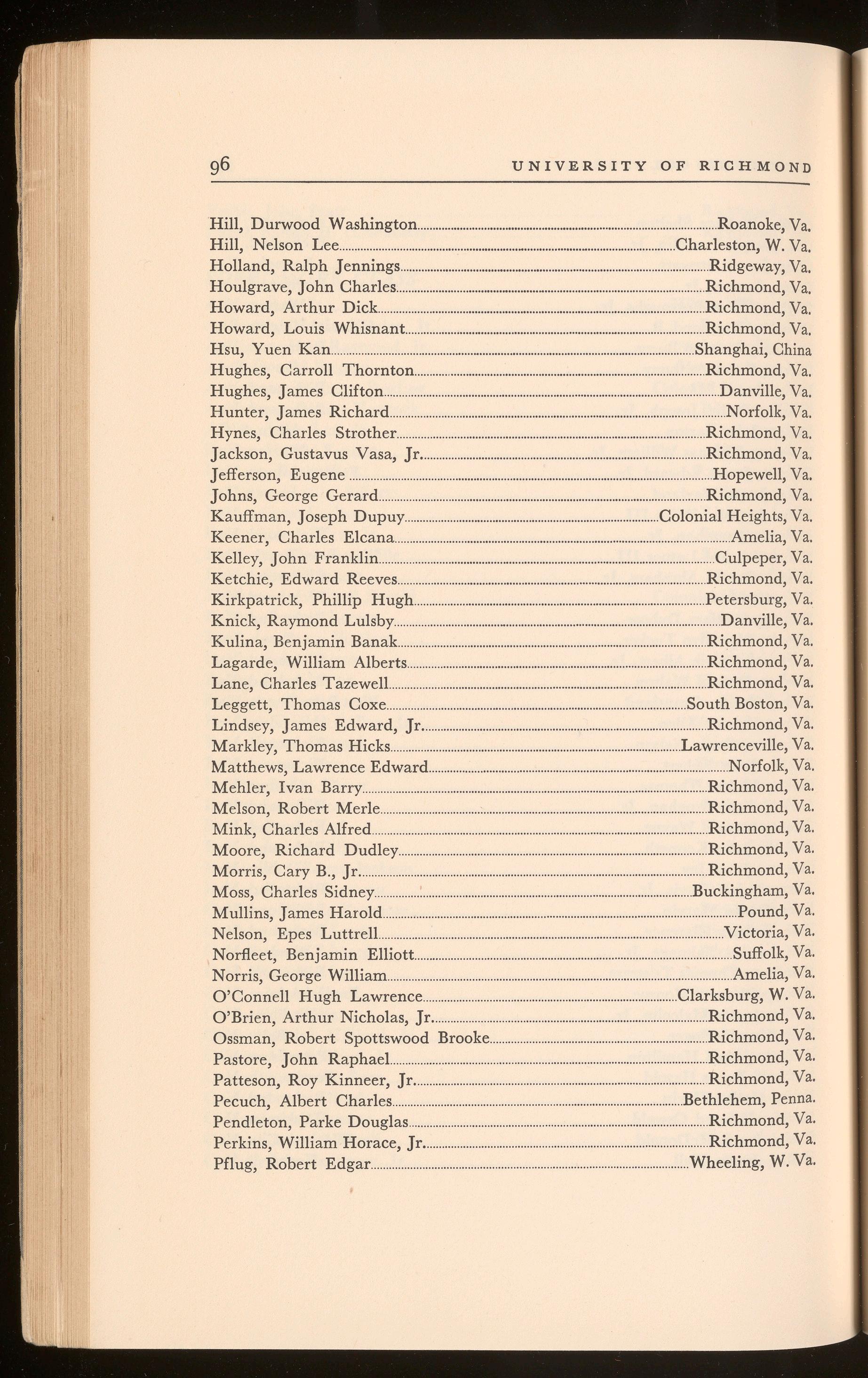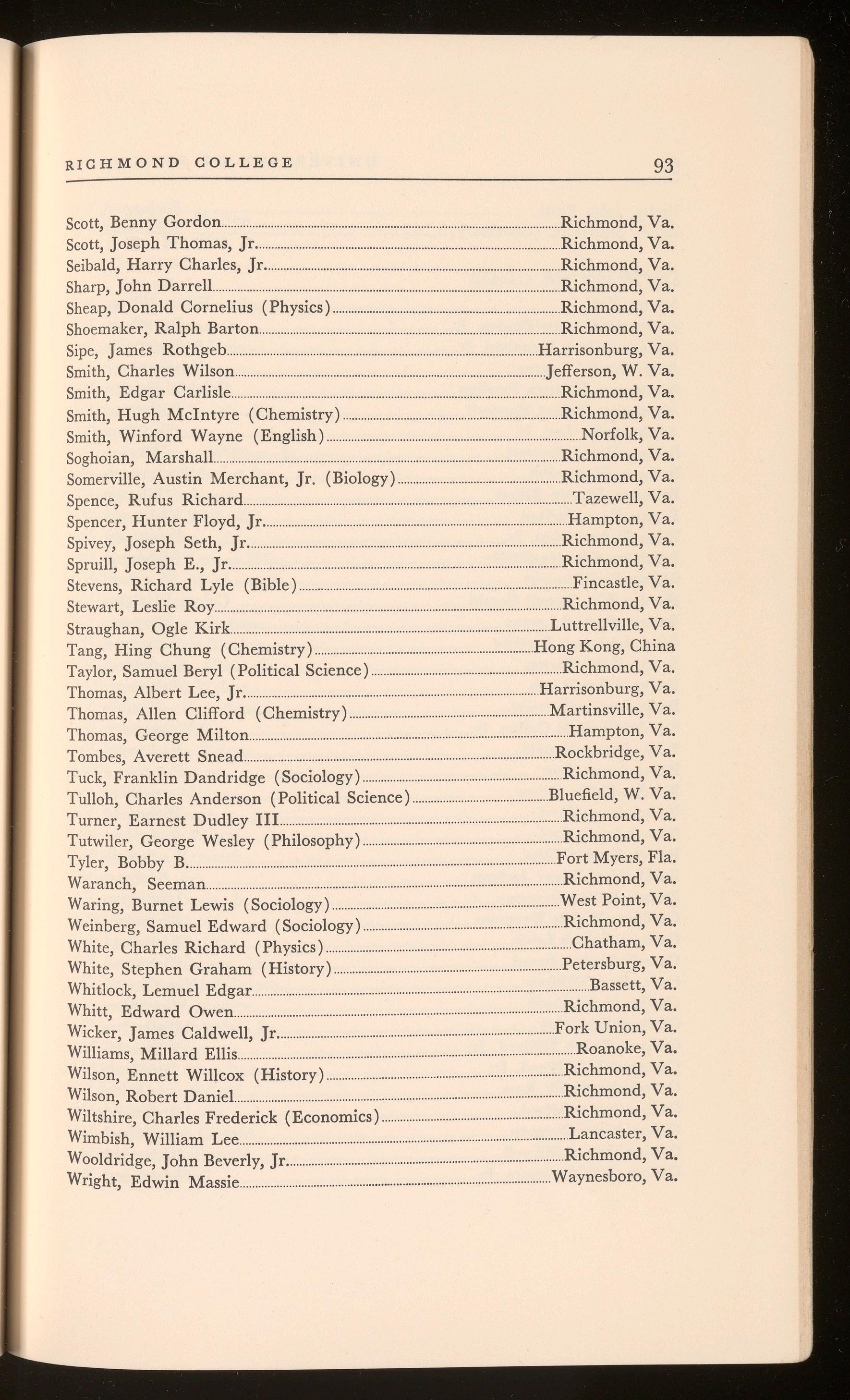 Samuel Abrum White, Jr (Physics) .............Sandston, Va. Edgerton, Va. Richmond, Va. Richmond, Va. ......Lorton, Va. ....Richmond, Va. .. Greensburg, Pa . ..............Richmond, Va . Richmond, Va. .....Richmond, Va ...........Richmond, Va. ......Richmond, Va. . .........Glen Allen, Va.