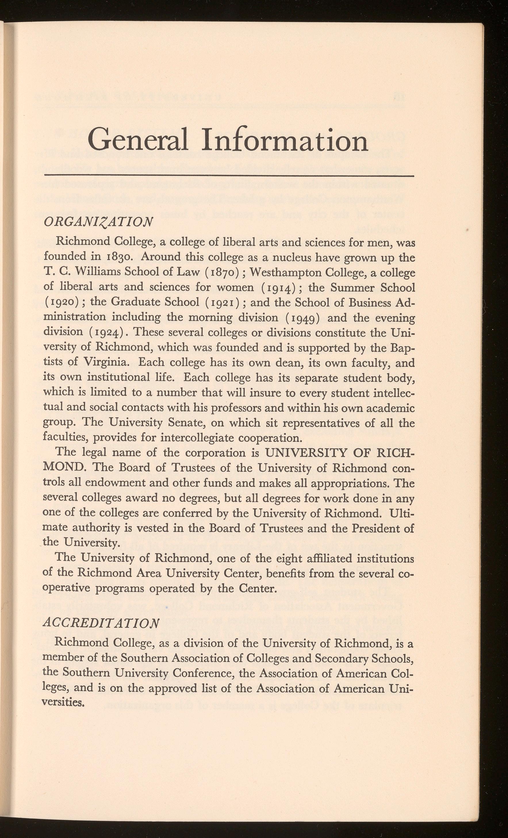 LOCATEDin Richmond, the largest business community between Baltimore and Atlanta, the University of Richmond is admirably situated to offer training in business administration. With over four thousand business firms available as clinics and many business leaders to serve as lecturers, a sound educational program based on the proper balance between theory and practice is available.