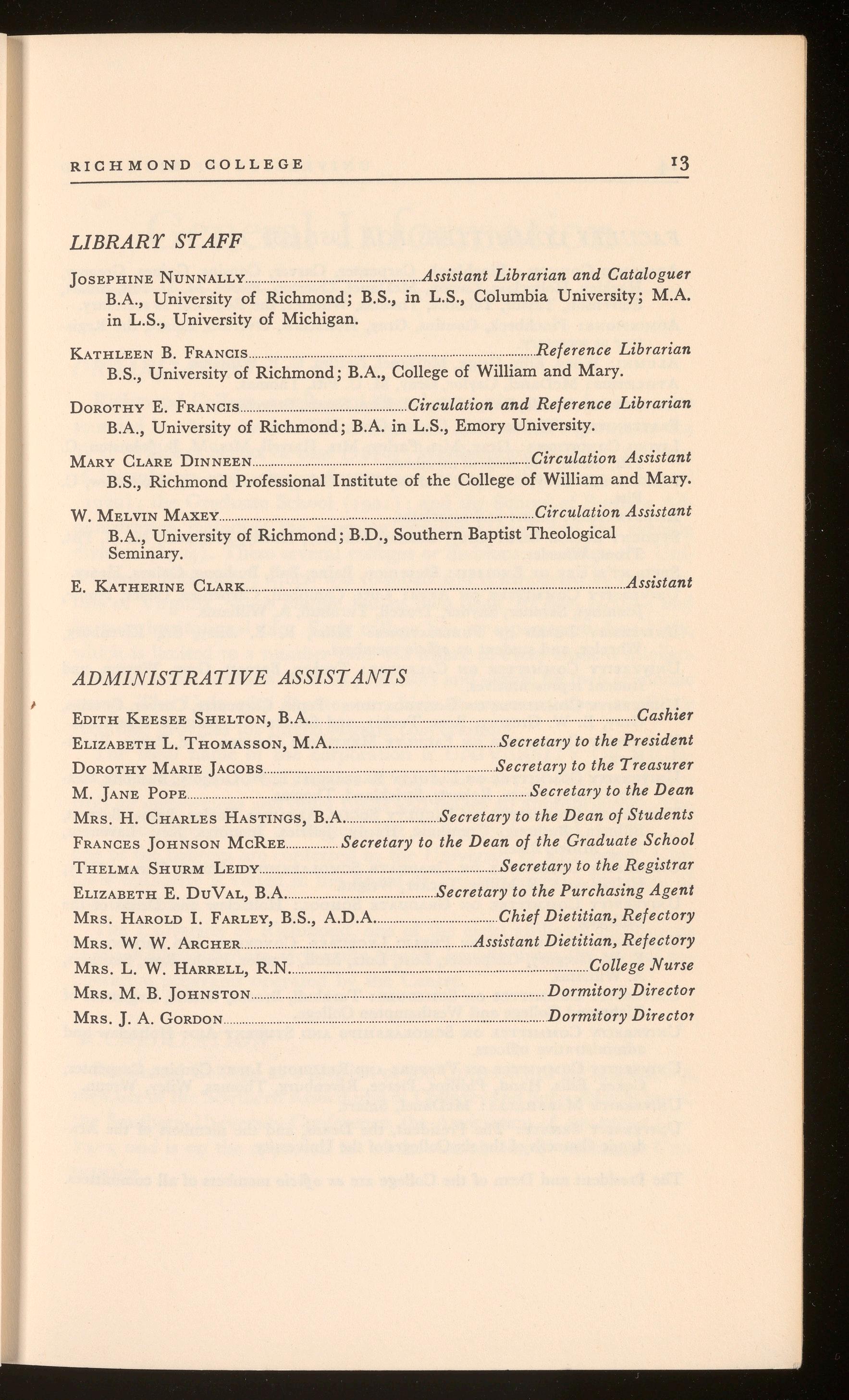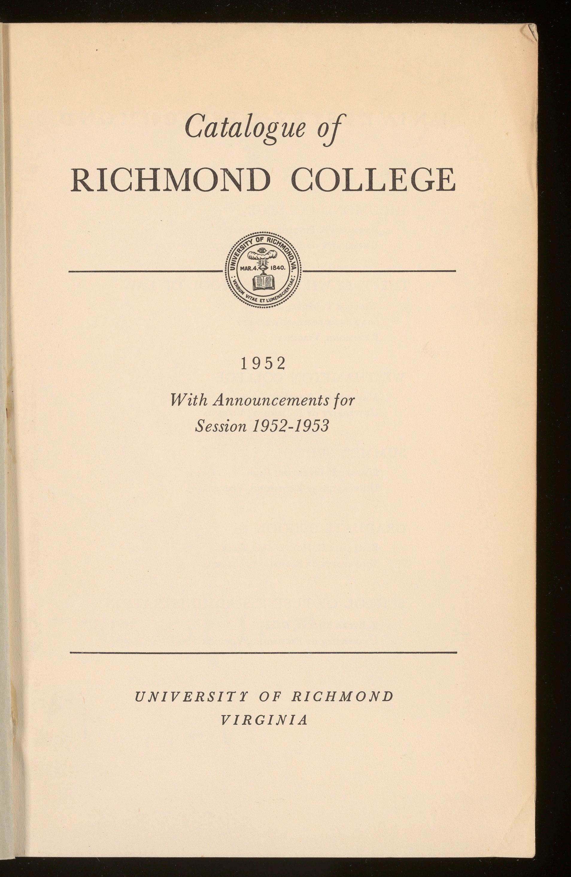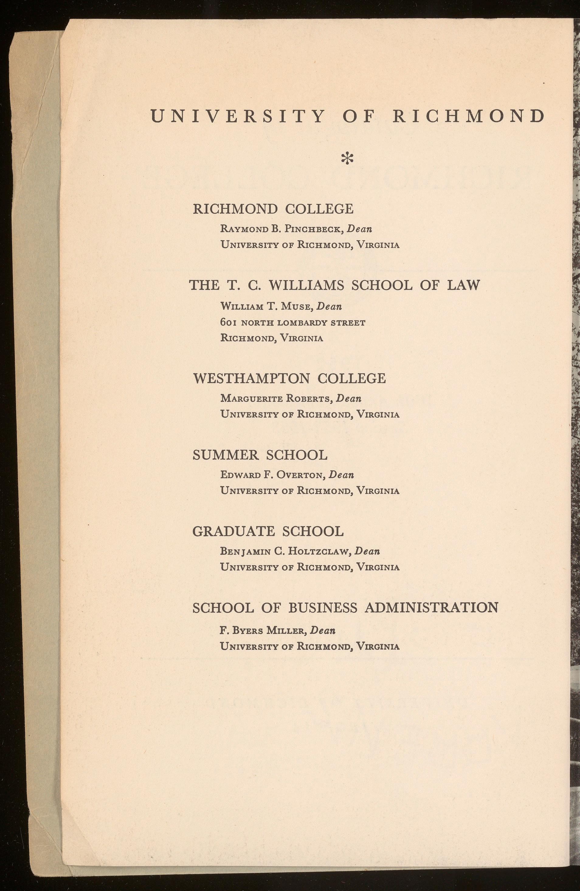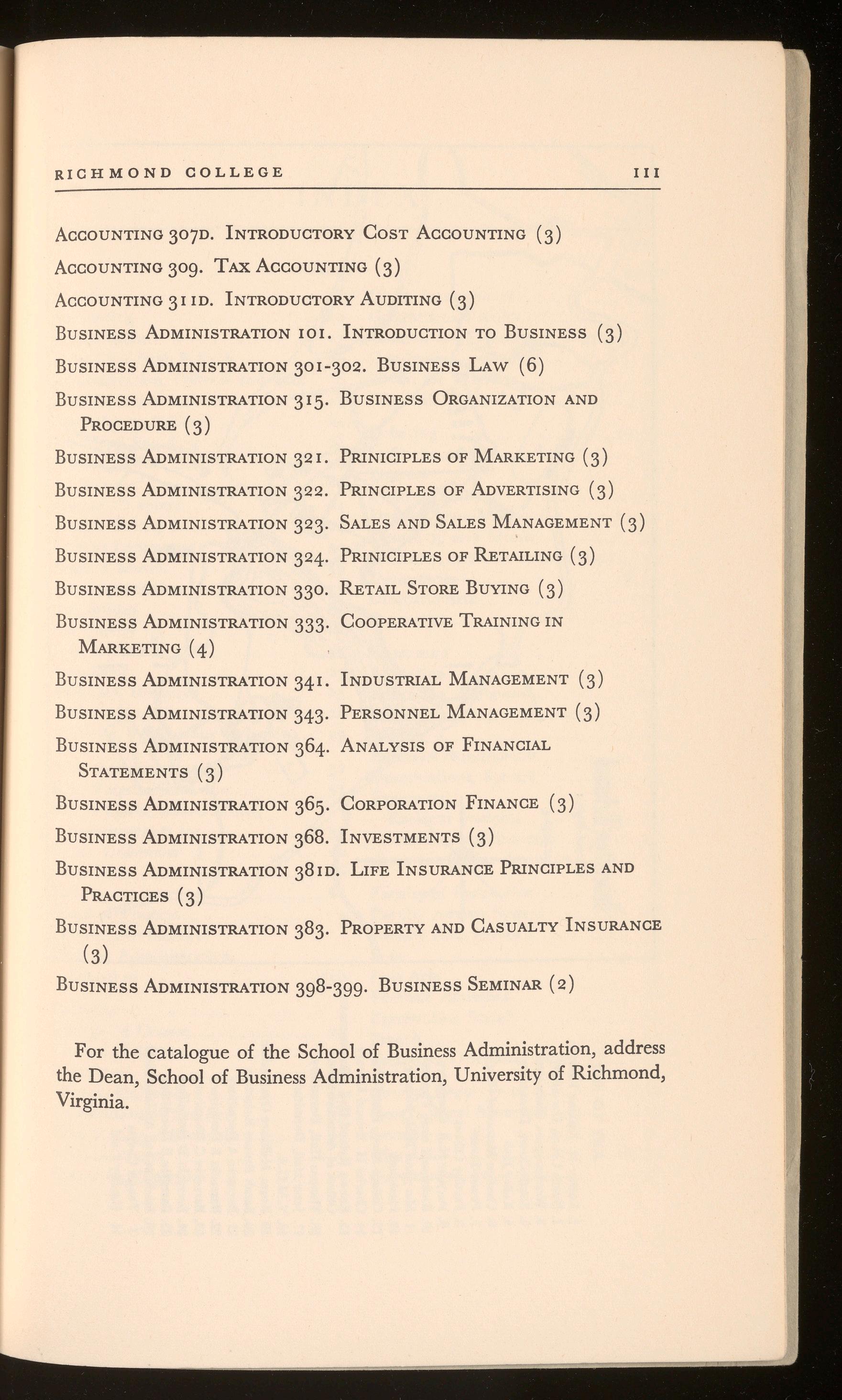 For the catalogue of the School of Business Administration, address the Dean, School of Business Administration, University of Richmond, Virginia.