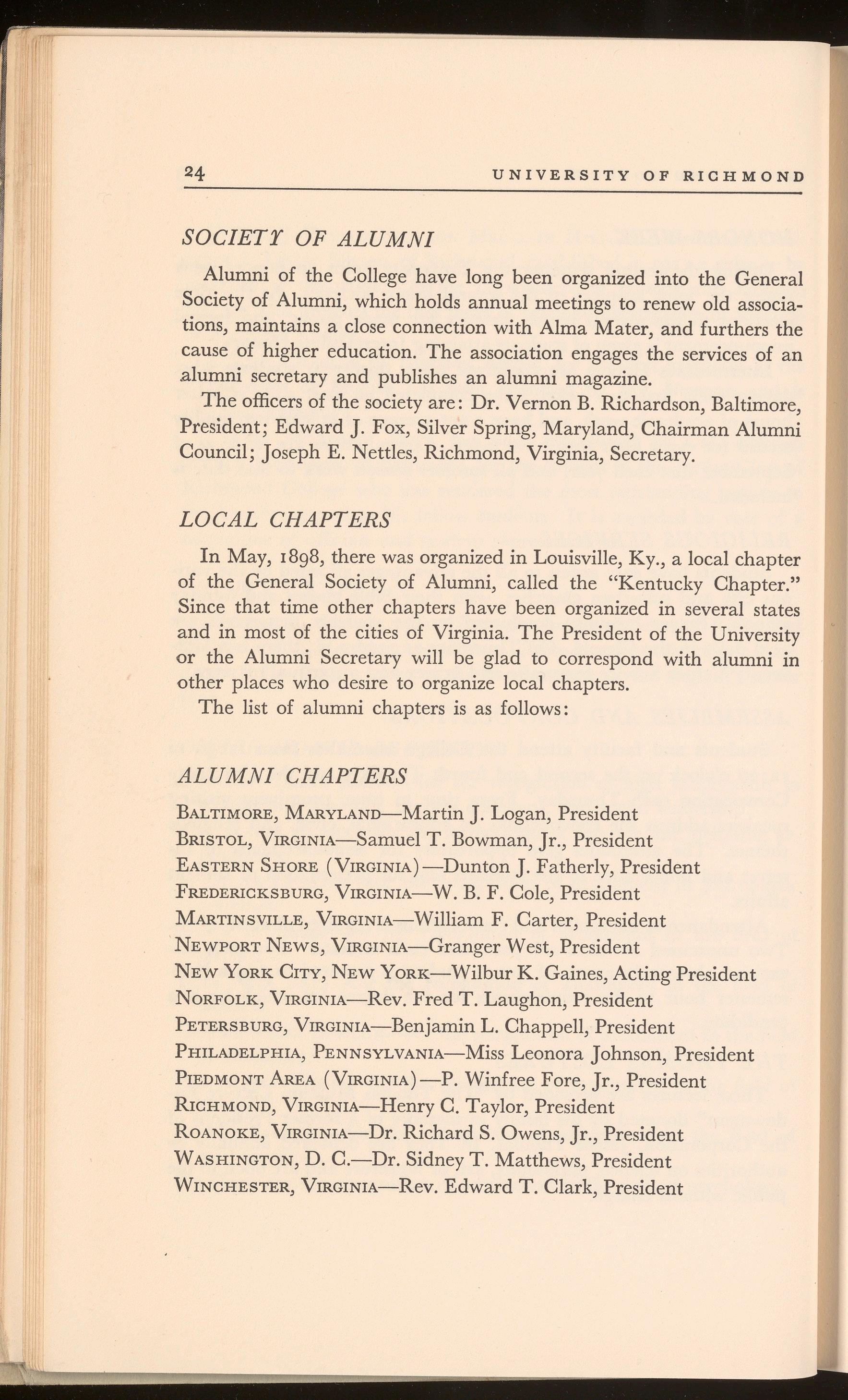 ,,..Sparks W. Melton, D.D .......................................................Norfolk H. Hiter Harris* .......................................................... . .......Richmond Robert F. Caverlee, D.D ..... .....Fredericksburg Garland Gray . ...................Waverly Mrs. E. B. Willingham ................................Washington, D. C . ,..John W. Edmon d s, Jr ...................................................Accomac Hu n ter Miller . .............................................Richmond rhlorris Sayre, D.Sc ..................... .......New York ...----Theodore F. Adams, D.D .......Richmo n d -Overton D. Dennis, D.Sc ........................................Richmond .--, J. Vaughan Gary . .....Richmond ,...Elizabeth N. Tompkins ...... Richmond