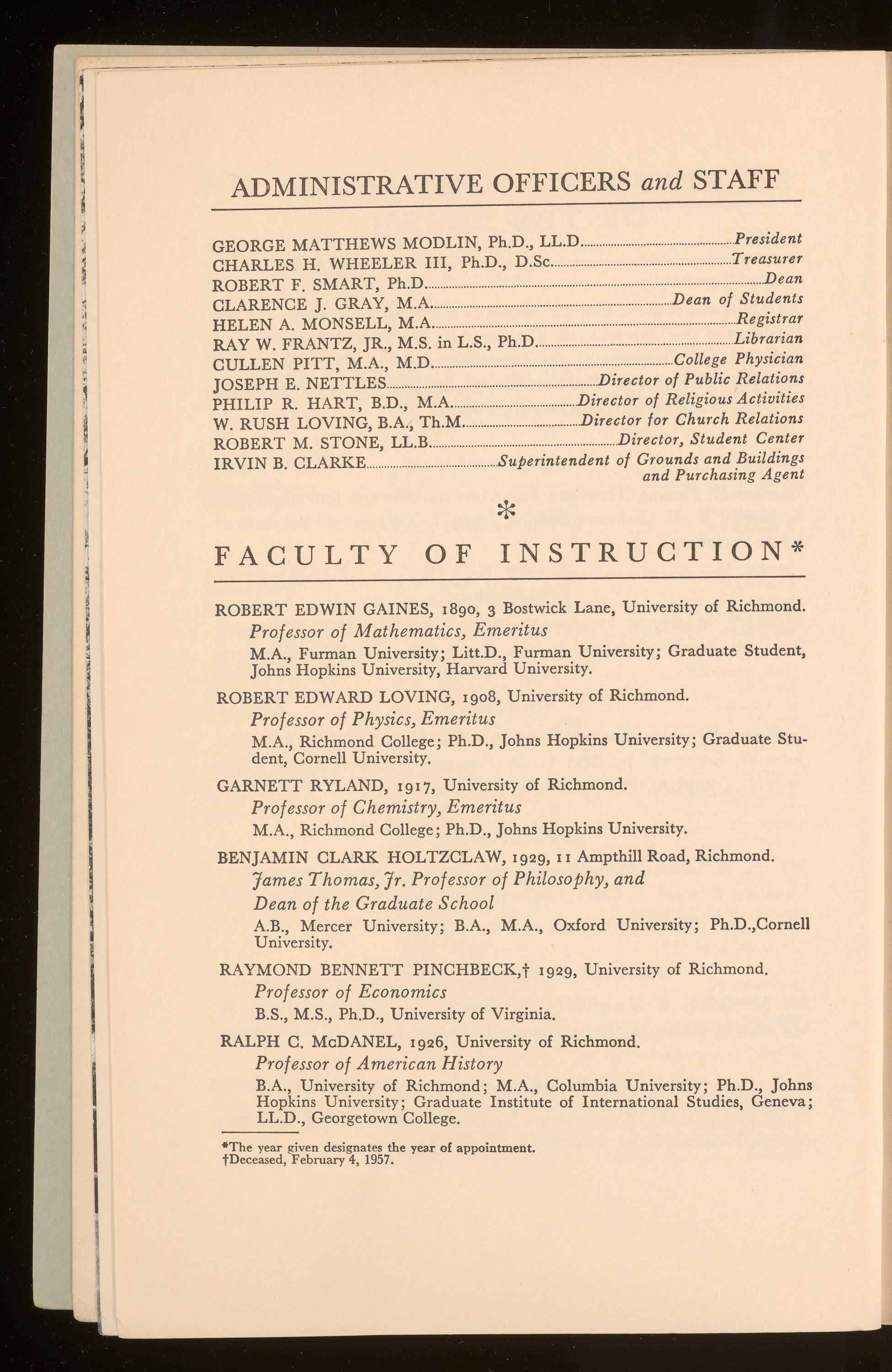 LOCATEDin Richmond, the largest business community between Baltimore and Atlanta, the University of Richmond is admirably situated to offer training in business administration. With over four thousand business firms available as clinics and many business leaders to serve as lecturers, a sound educational program based on the proper balance between theory and practice is available.
