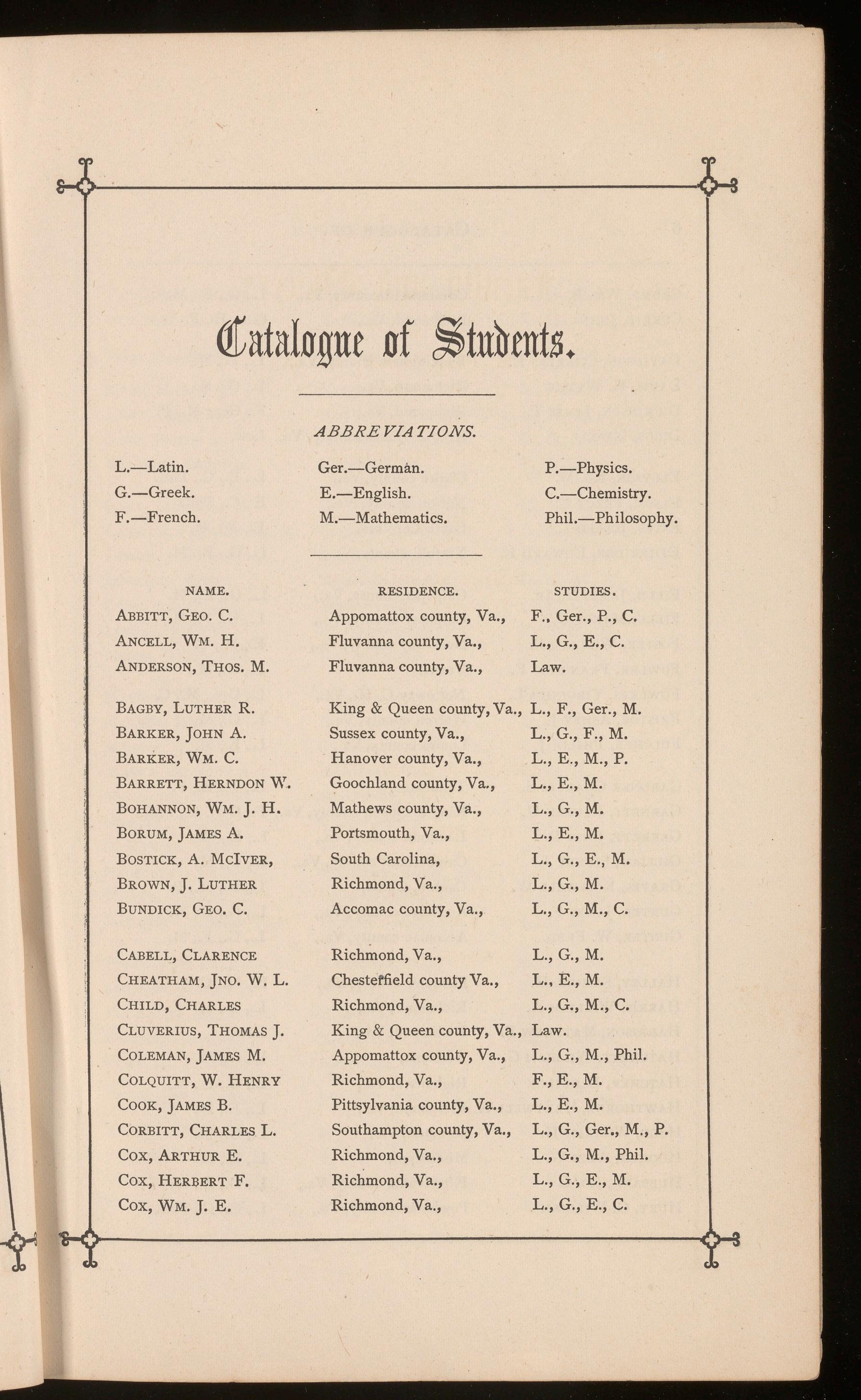 P.-Physics. C.-Chemistry. Phil.-Ph ilosophy.