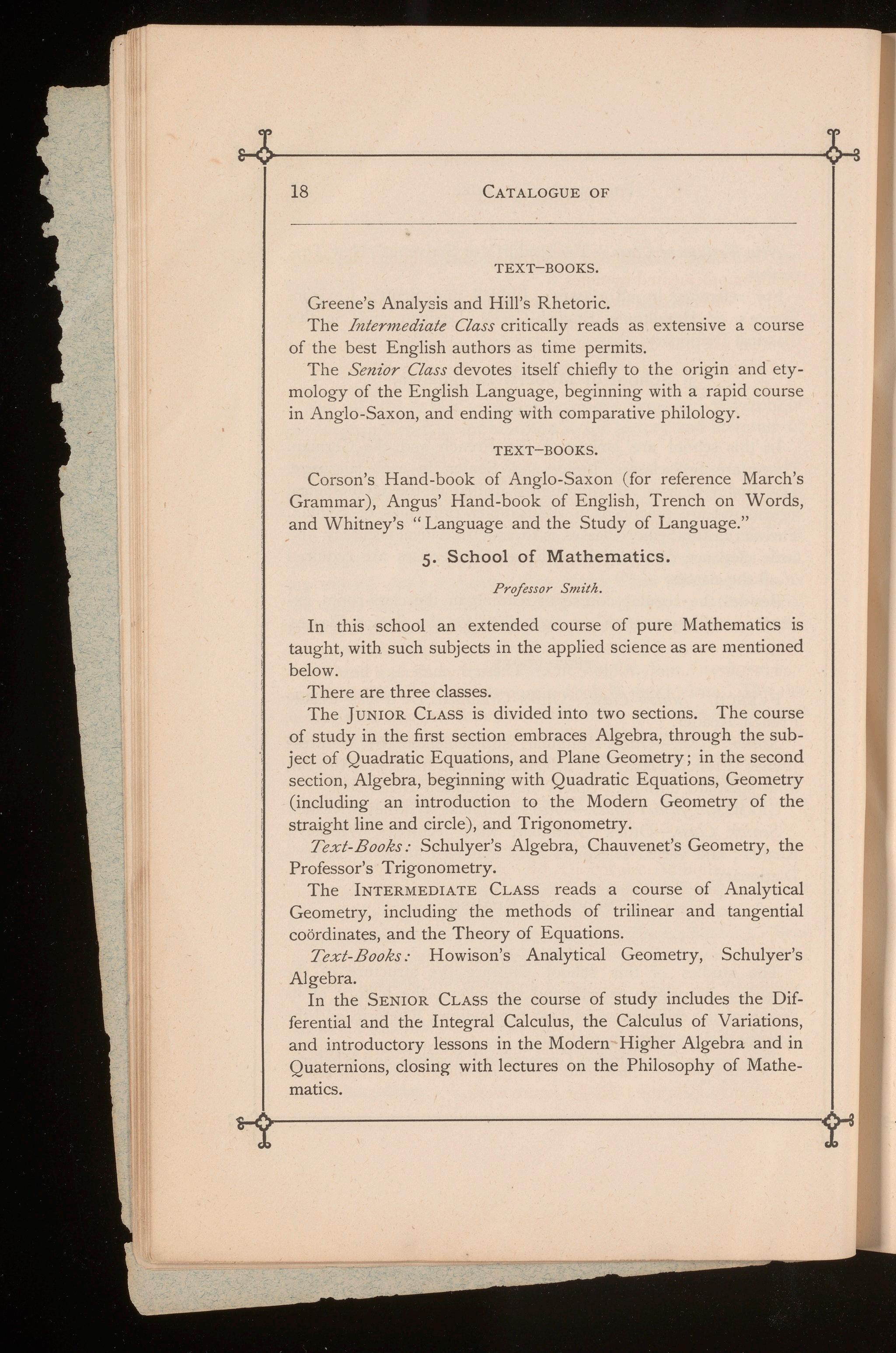 The endowment of the various Sclwols opens a yet wider range for liberality. By reference to the preceding pages of this Catalogue, it will be noticed that each "School," such as English, Greek, or Mathematics, is independent. Consequently, donations may be specifically applied to, the endowment of some favorite branch of learning.