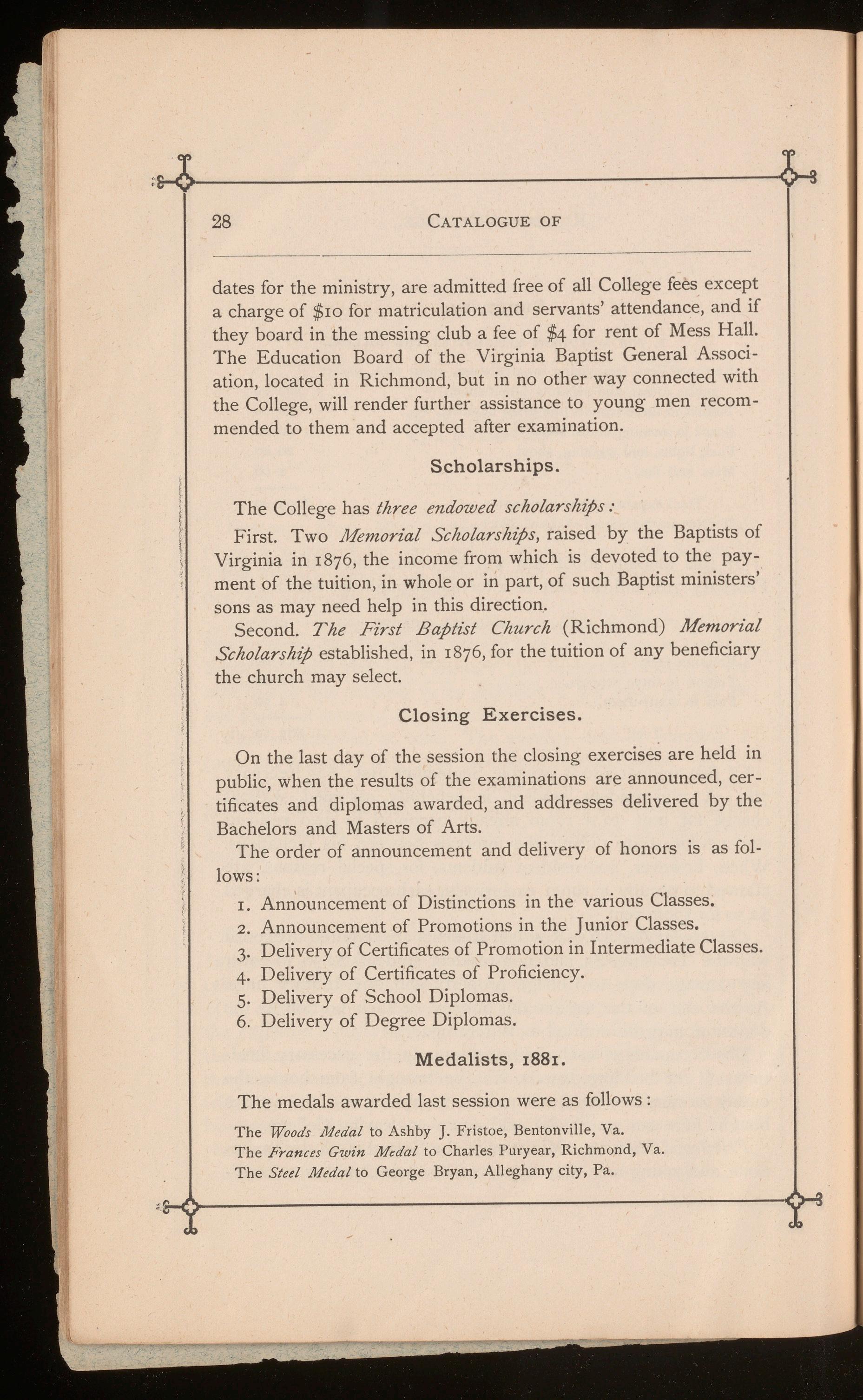 The Woods Medal to Ashby J. Fristoe, Bentonville, Va.
