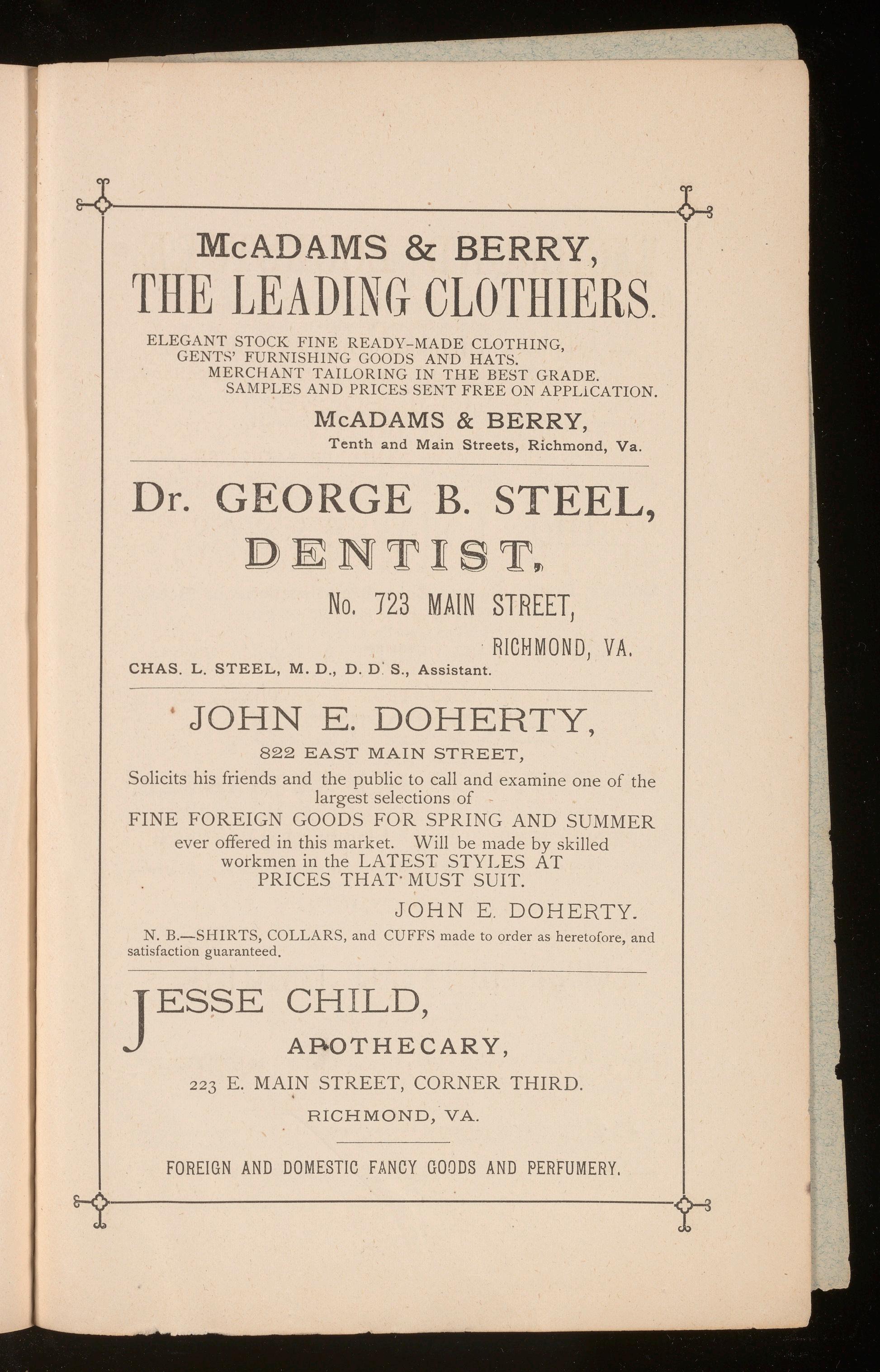 ~icADAMS & BERRY, Tenth and Main Streets, Richmond, Va.