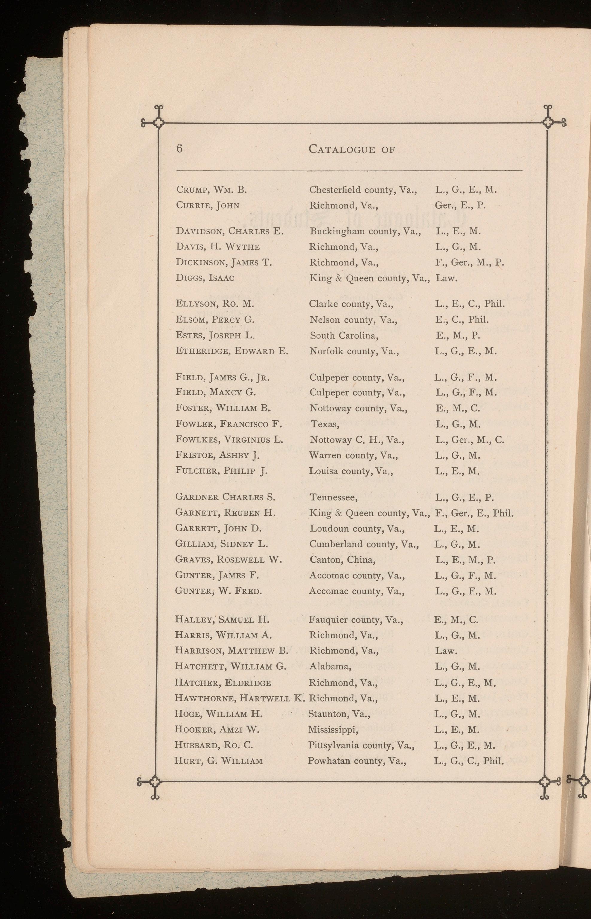 L., G., M., Phil. F.,E., M. L.,E.,M. L., G., Ger,, M., P. L., G., M., Phil. L.,G.,E.,M. L.,G.,E.,C.