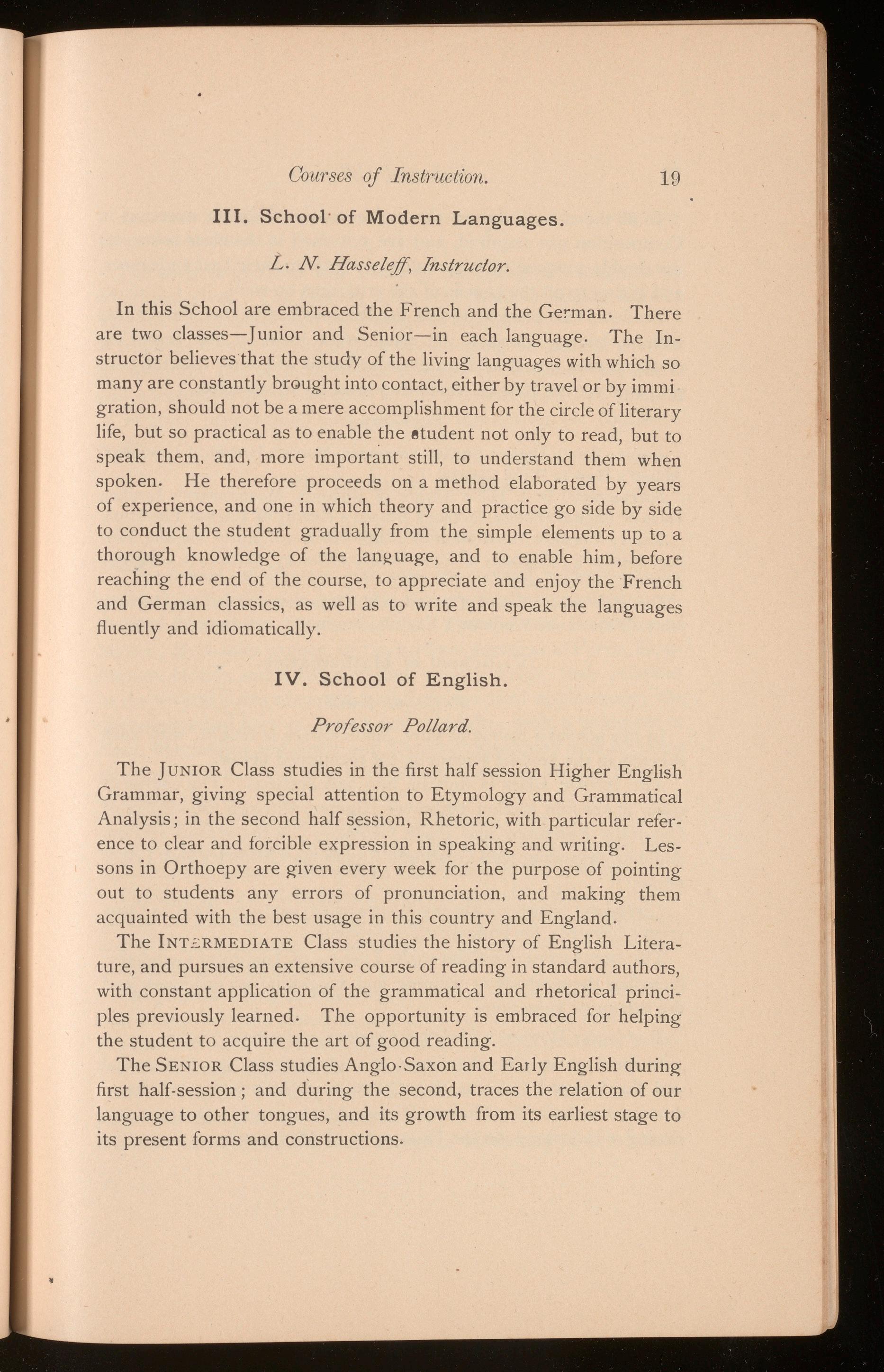 L . N. HASSELEFF , (Gra duat e Unive r s ity of St. Pe t ersburg.) I ns tr uctor in Modern Languages.