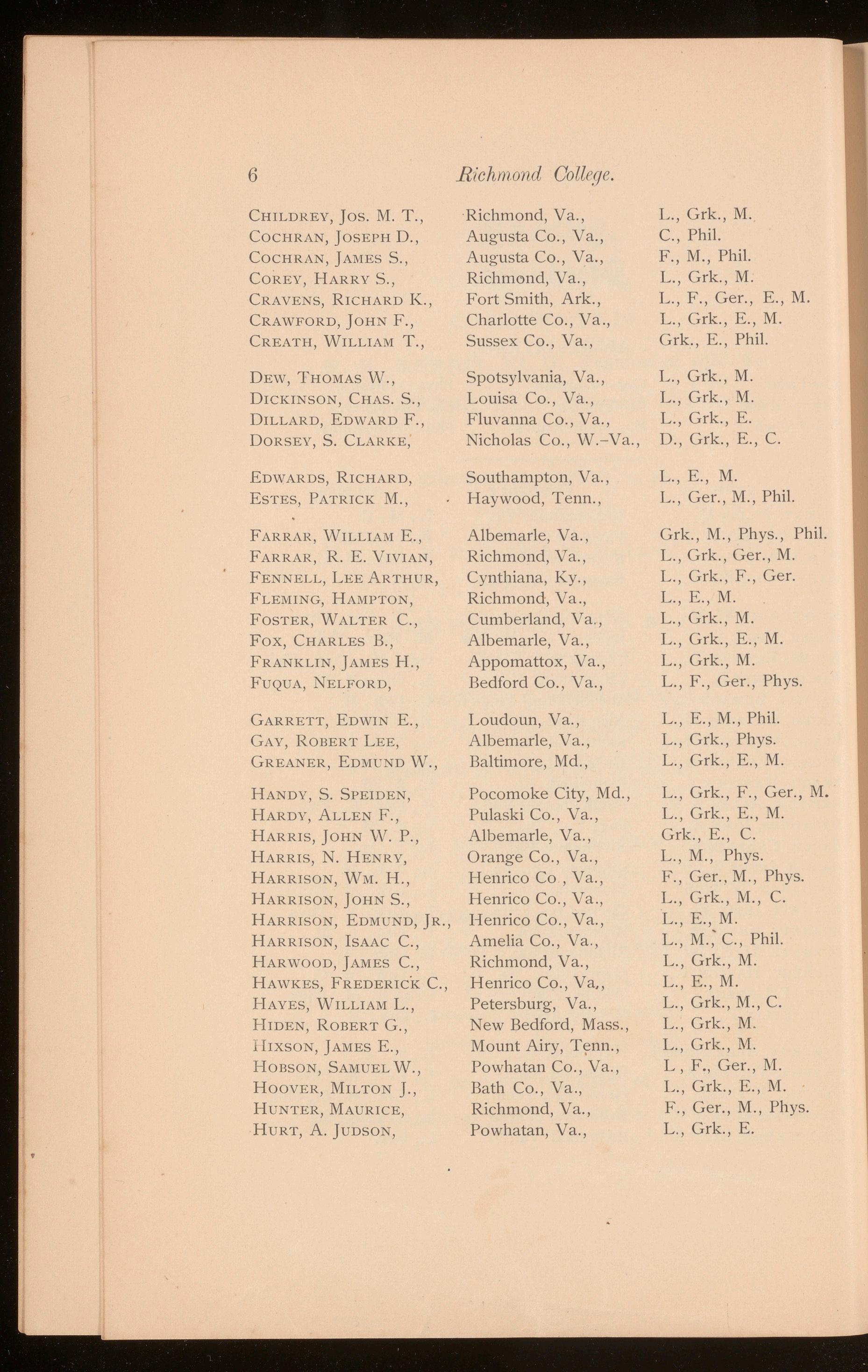 Richmond, Va., Augusta Co., Va ., Augusta Co., Va., Richmond, Va., Fort Smith, Ark., Charlotte Co., Va., Sussex Co., Va.,