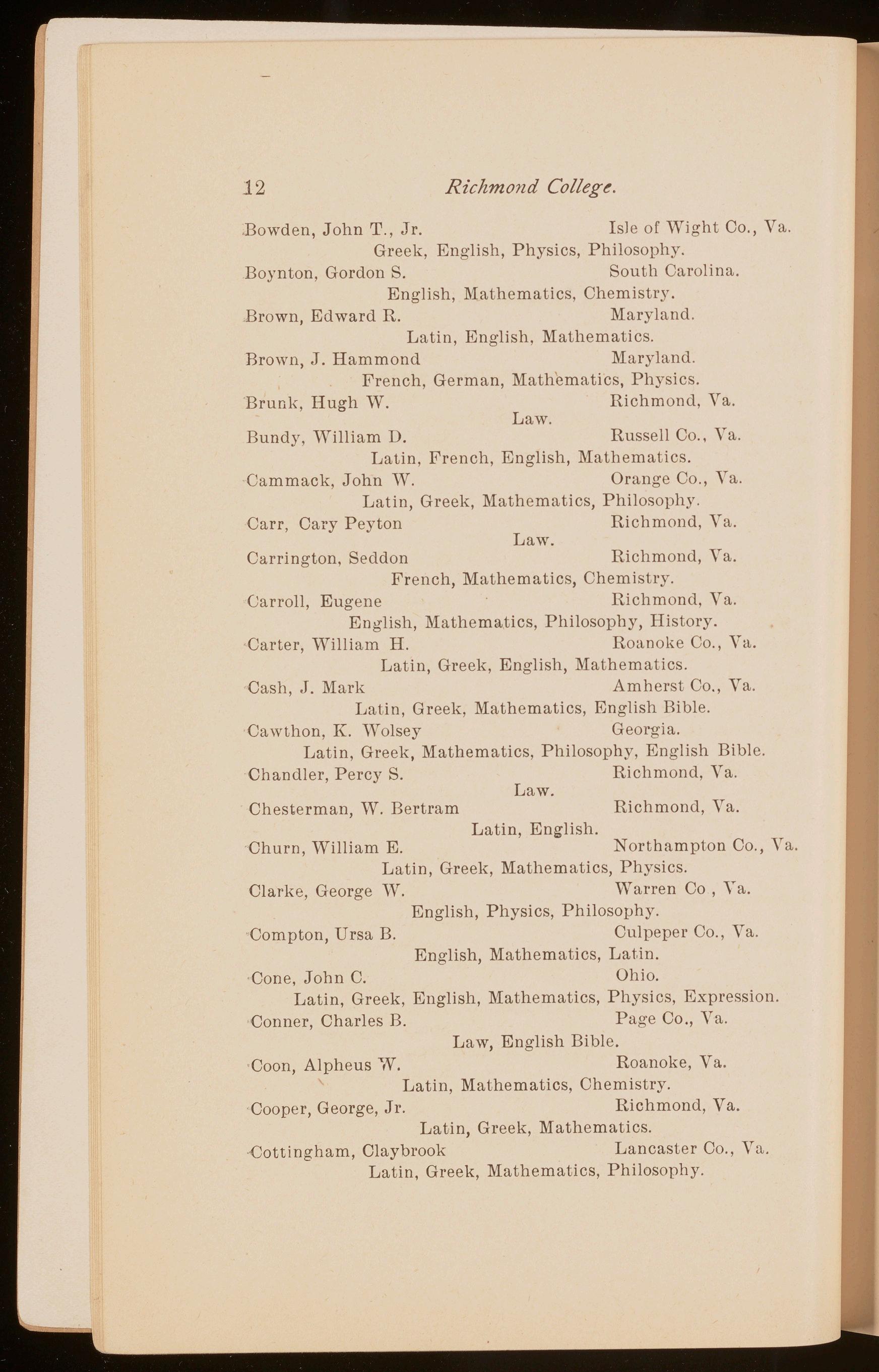 lNSTRUCTION.-J. L. M. Curry, J R. Garlick, J. Ryland, W.R. L. Smith, J. T. Ellyson.