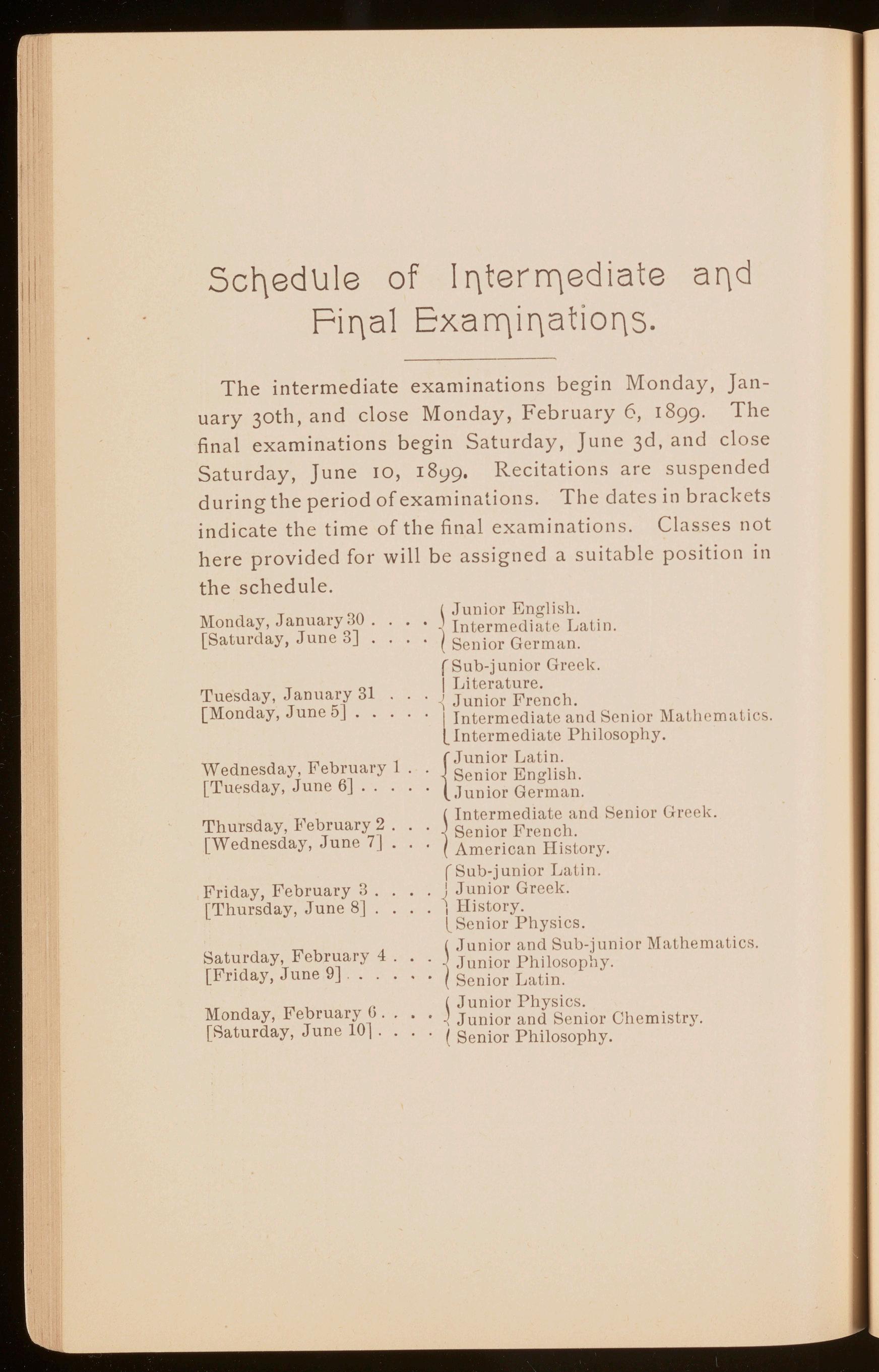 Schedule of Recitations .. Schedule of ExaminaLlons. Scholarships ..... Selection of Studies .. Session ......••
