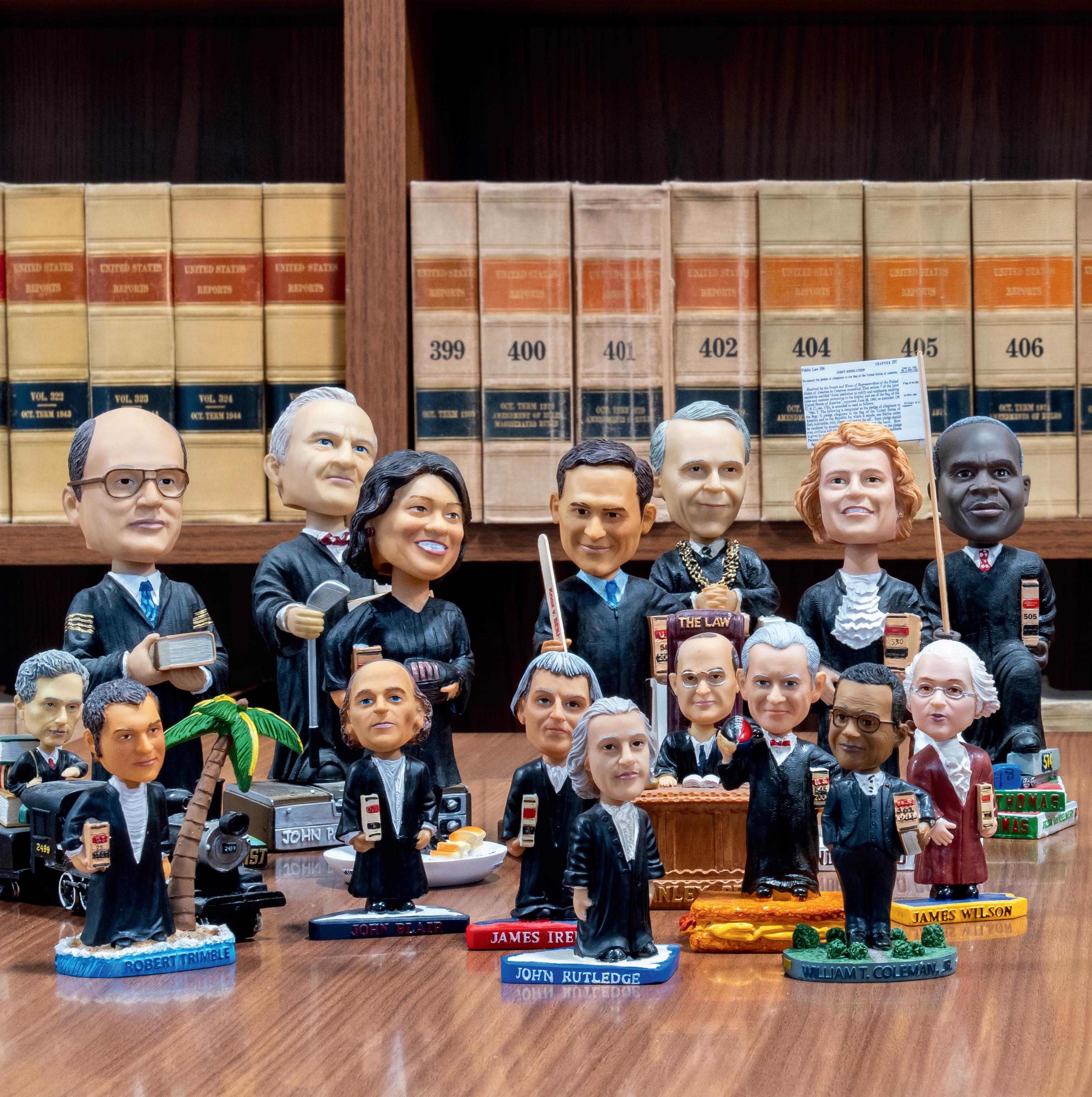 SUPREME NOD OF APPROVAL In Roger Skalbeck’s office, the justices of the Supreme Court always affirm. He began amassing this SCOTUS bobblehead collection when he was in law school. “Every bobblehead incorporates features that reflect cases each judge wrote,” Skalbeck says. “[These] visual clues [help explain] complex concepts.”