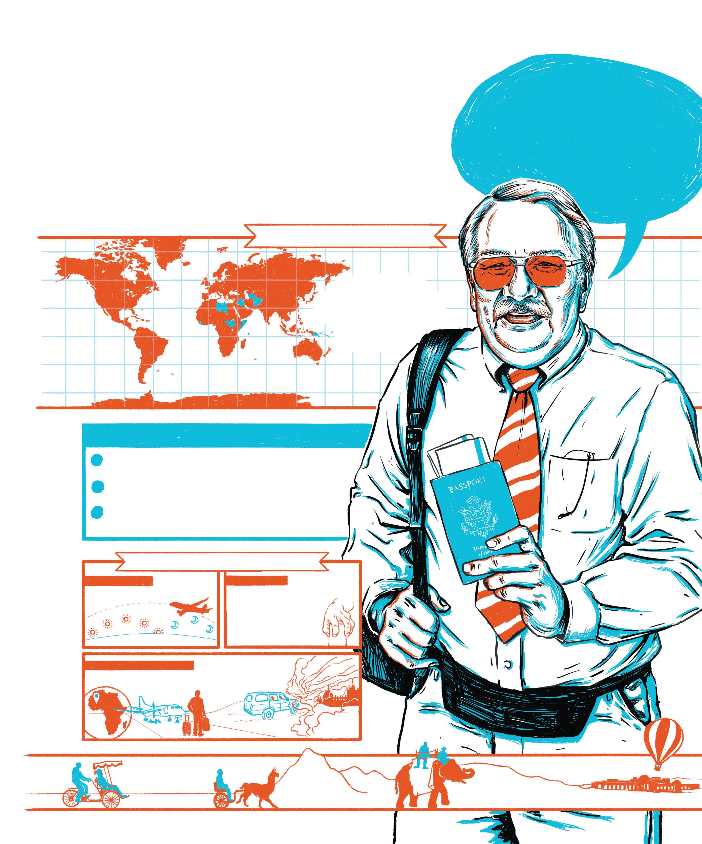 Watson Mills, R’61, has traveled to 174 of the 193 UN member countries, including every country in Europe and the Americas. His most surprising stat might be another number: 30. That was his age when he made his first international trip. The pace of his travels ramped up significantly about 20 years ago, after he retired from his career as a religious studies professor. Here’s a look at his travels, plus some of his advice.