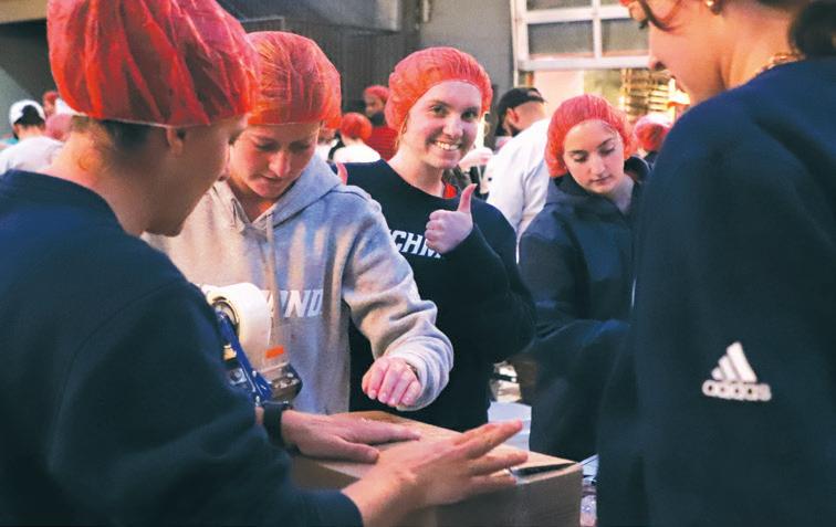 Spider field hockey packed meals — contributing to more than 40,000 packed that day for families and communities around the world — for Rise Against Hunger during a day of service on Martin Luther King Jr. Day in January.