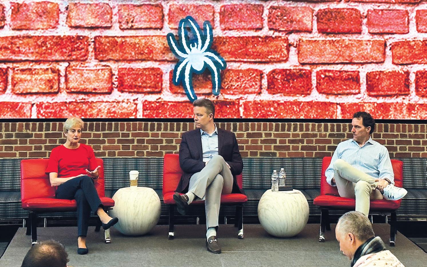 We were in the EY iLab, “i” as in “innovation.” It’s a funky, flexible space with movable furniture and floor-to-ceiling glass boards with dry erase markers handy. The boards were saturated with ideas this morning. Multicolored flowcharts spilled into one another to illustrate entrepreneurial ecosystems. My notes later read “flow of people > flow of funds > flow of data > flow of goods,” but those scribbles don’t begin to capture either the complexity of the ideas or the ease of their depiction. Framing the graphics at the borders were taped-on printouts covering topics such as “Top-10 Global Risks by Severity” and “Six Strategies for Supply Chain Resilience.” The entire display was created by students as prep for an upcoming discussion about improving the regional support system for entrepreneurs.