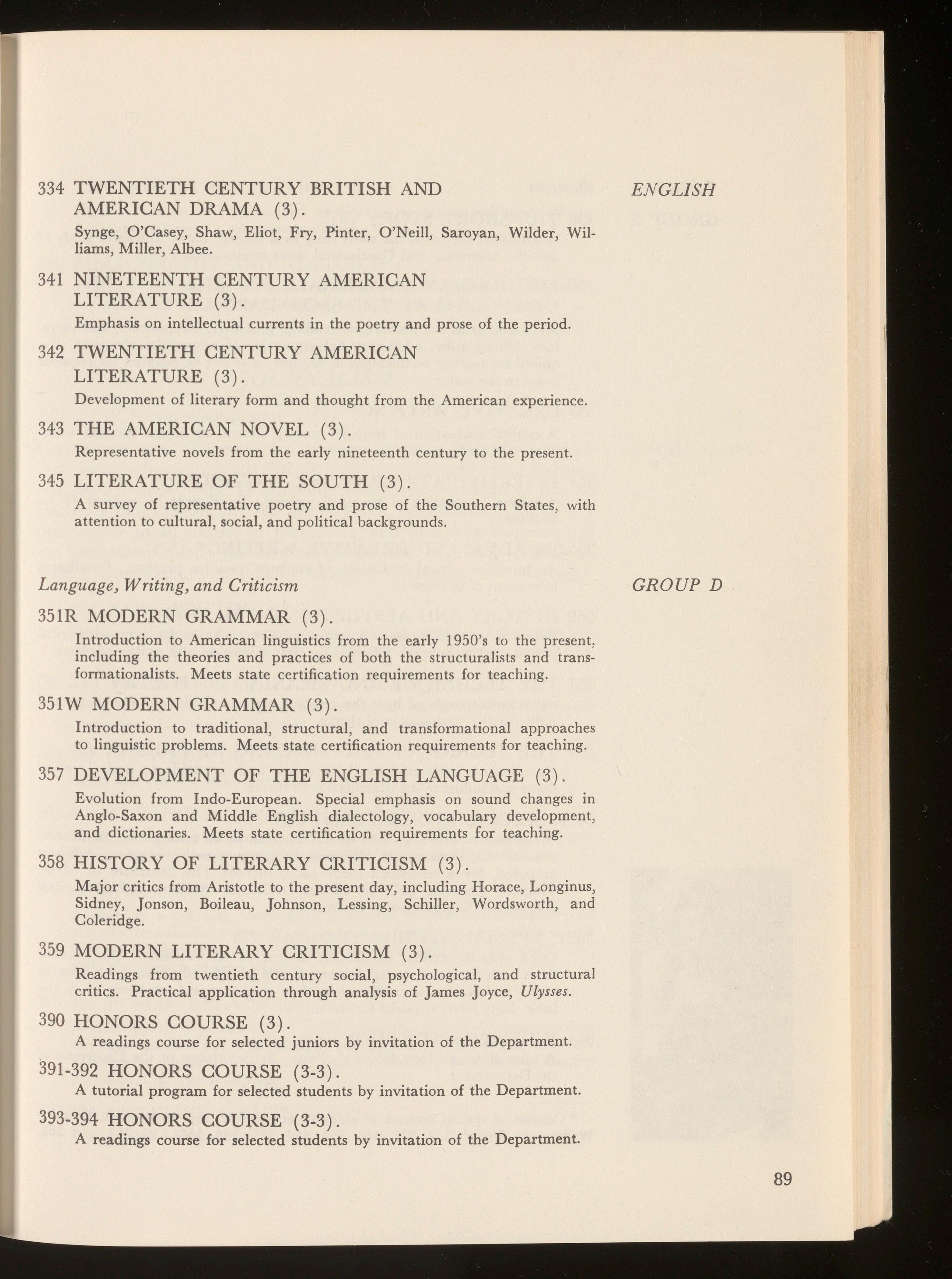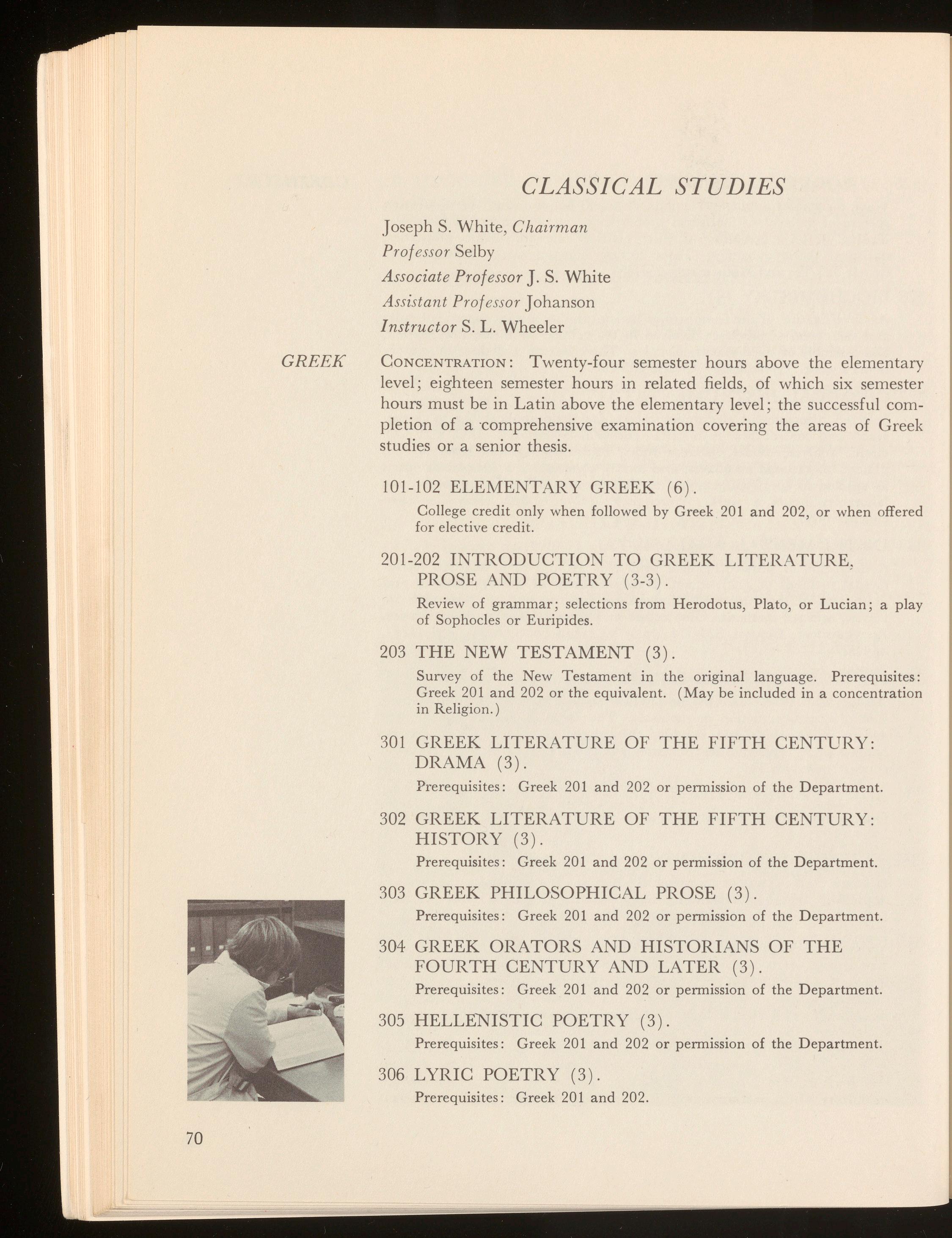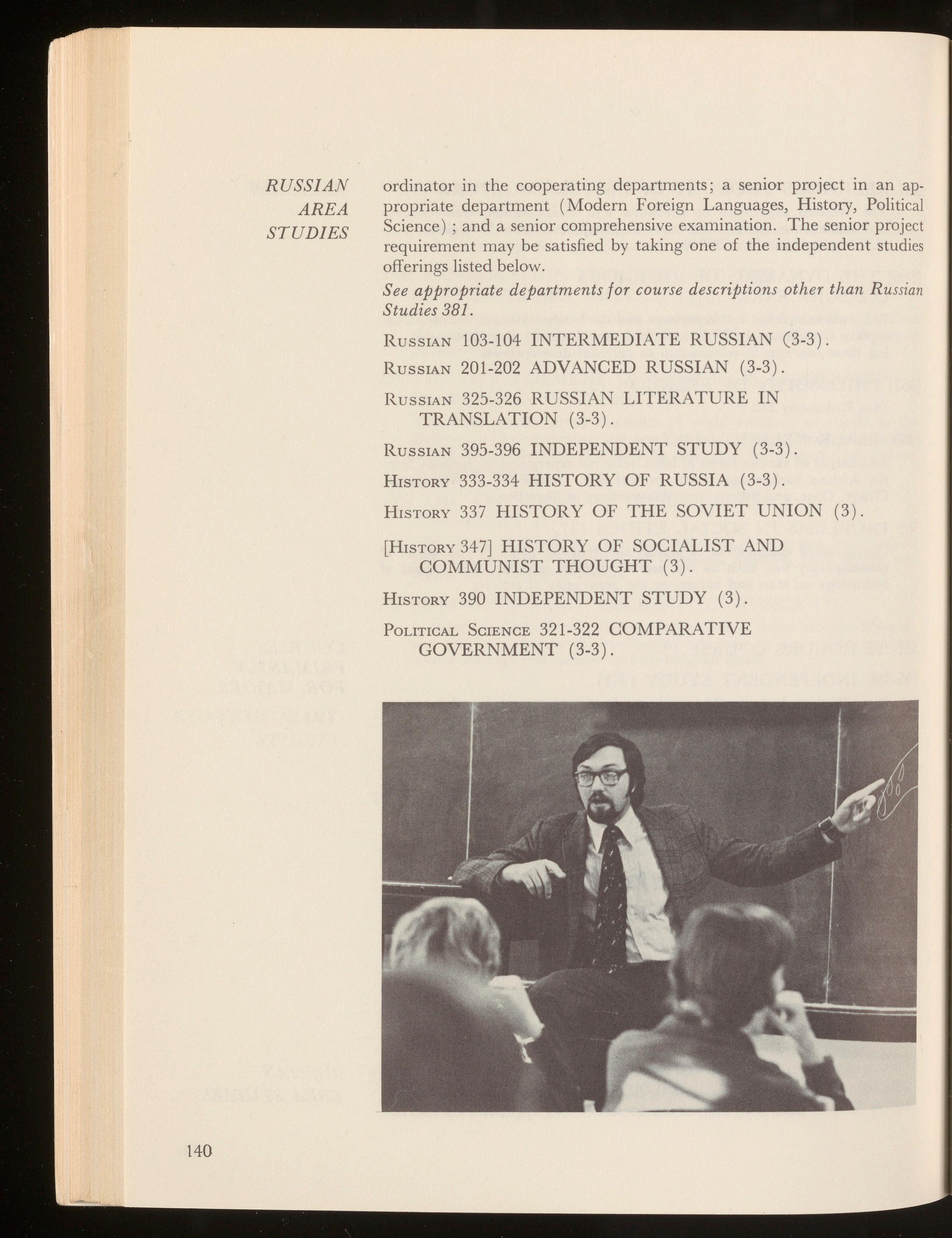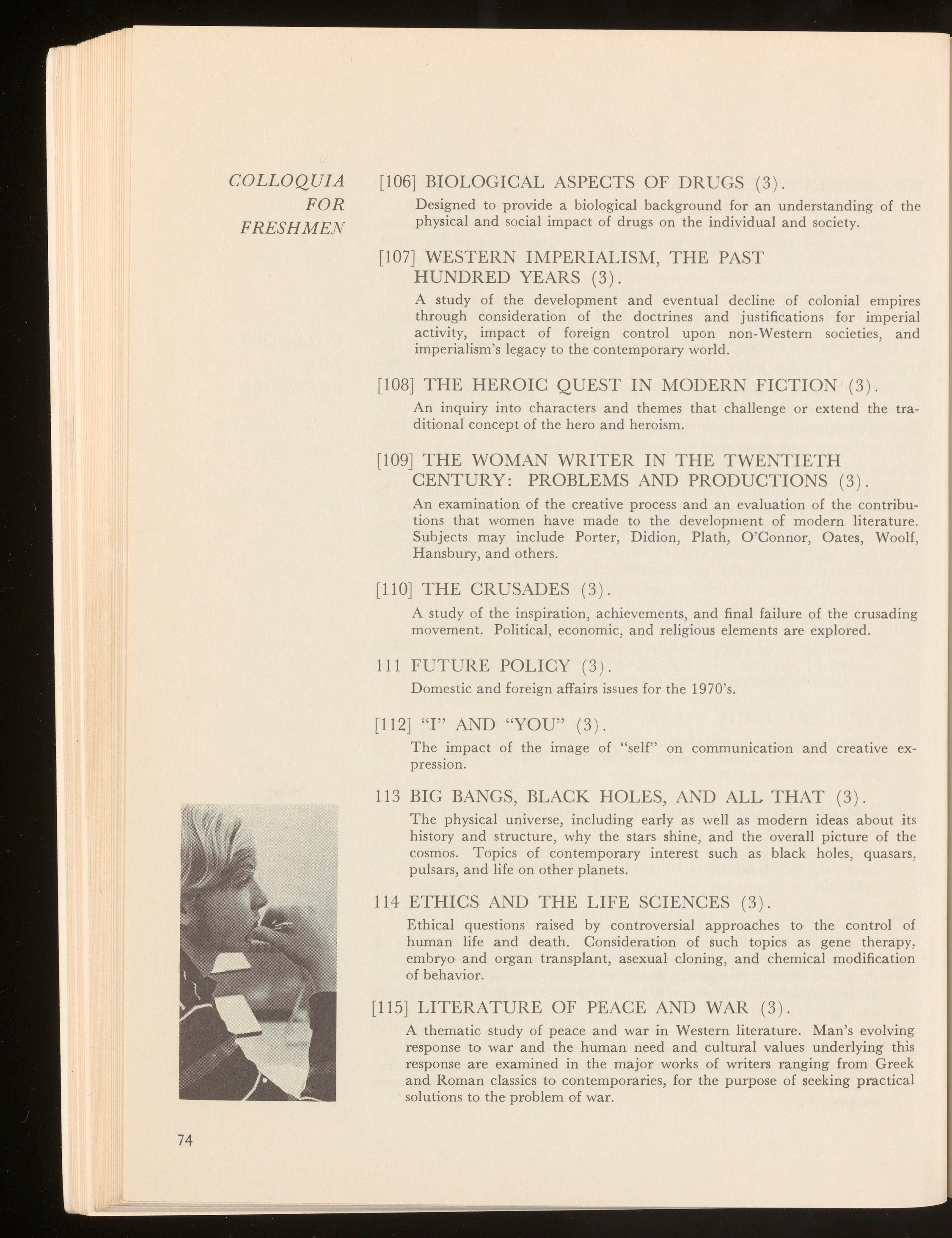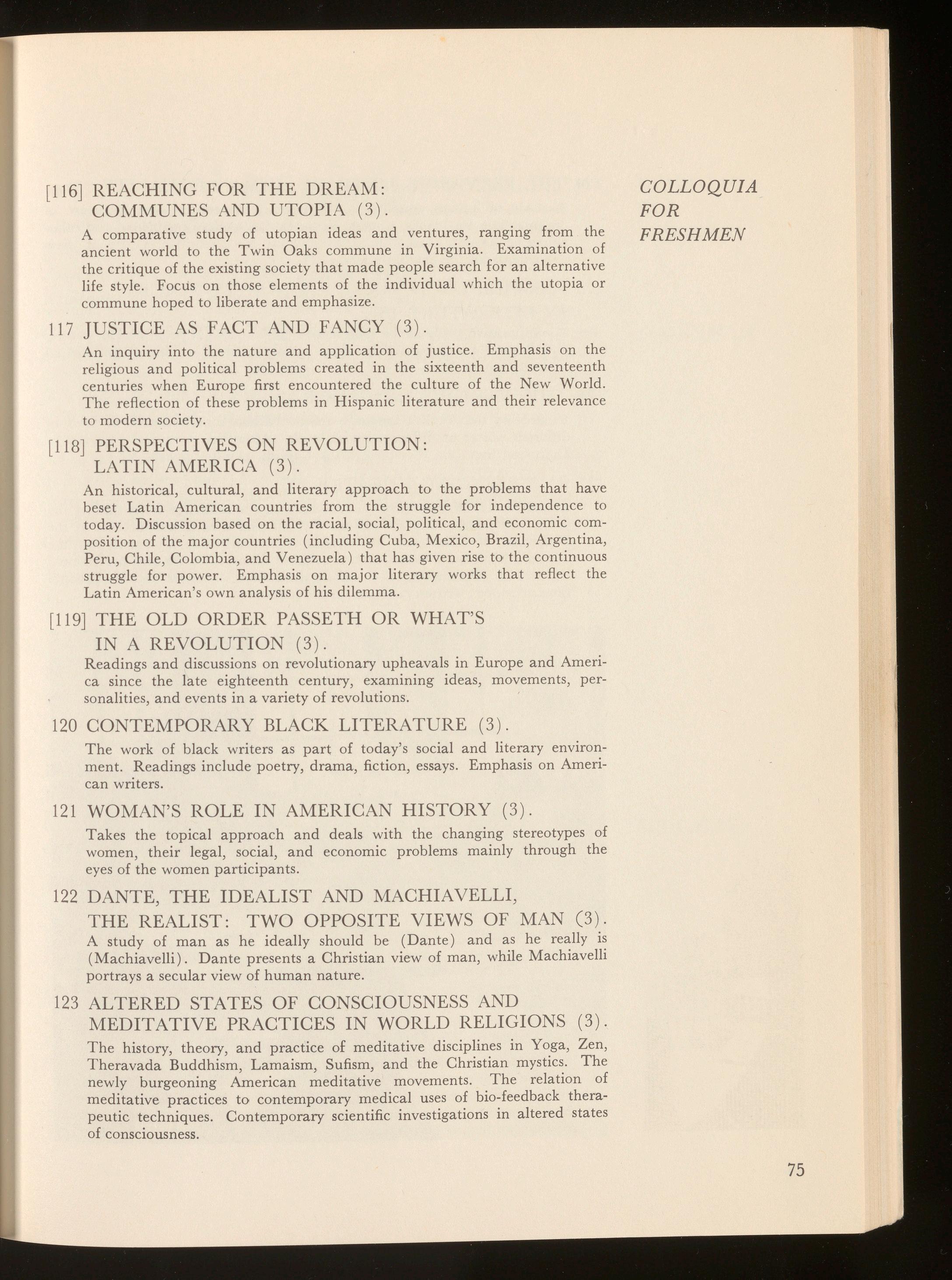 Distinctive programs include interdisciplinary studies, the Honors Program, and Colloquia for Freshmen. A new area curriculum enables the student to select courses from a wide variety of offerings.