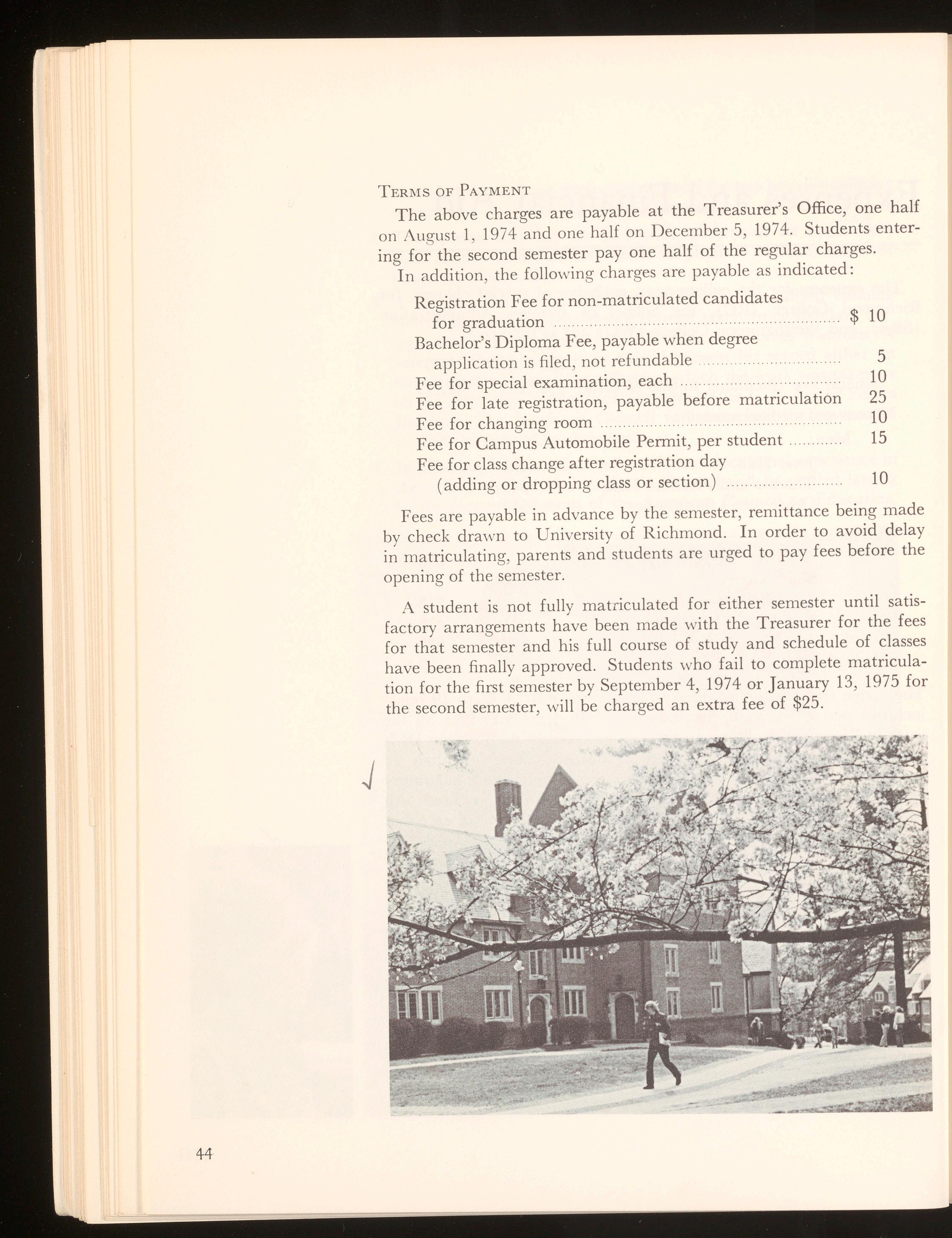 The University of Richmond is appreciated in all of its divisions because we demand and expect a great deal of those who choose to study here. We know that these college years will be of utmost importance in determining your style of life. Thus our approach embodies those aspects of living which are natural and desirable for the good life.
