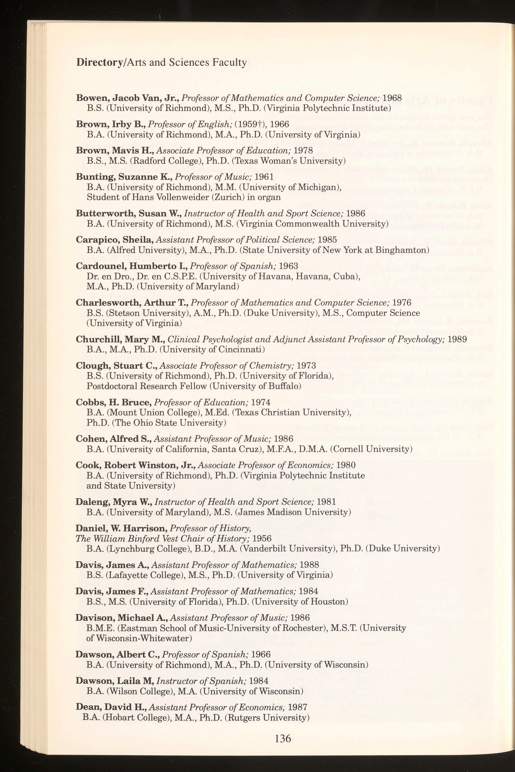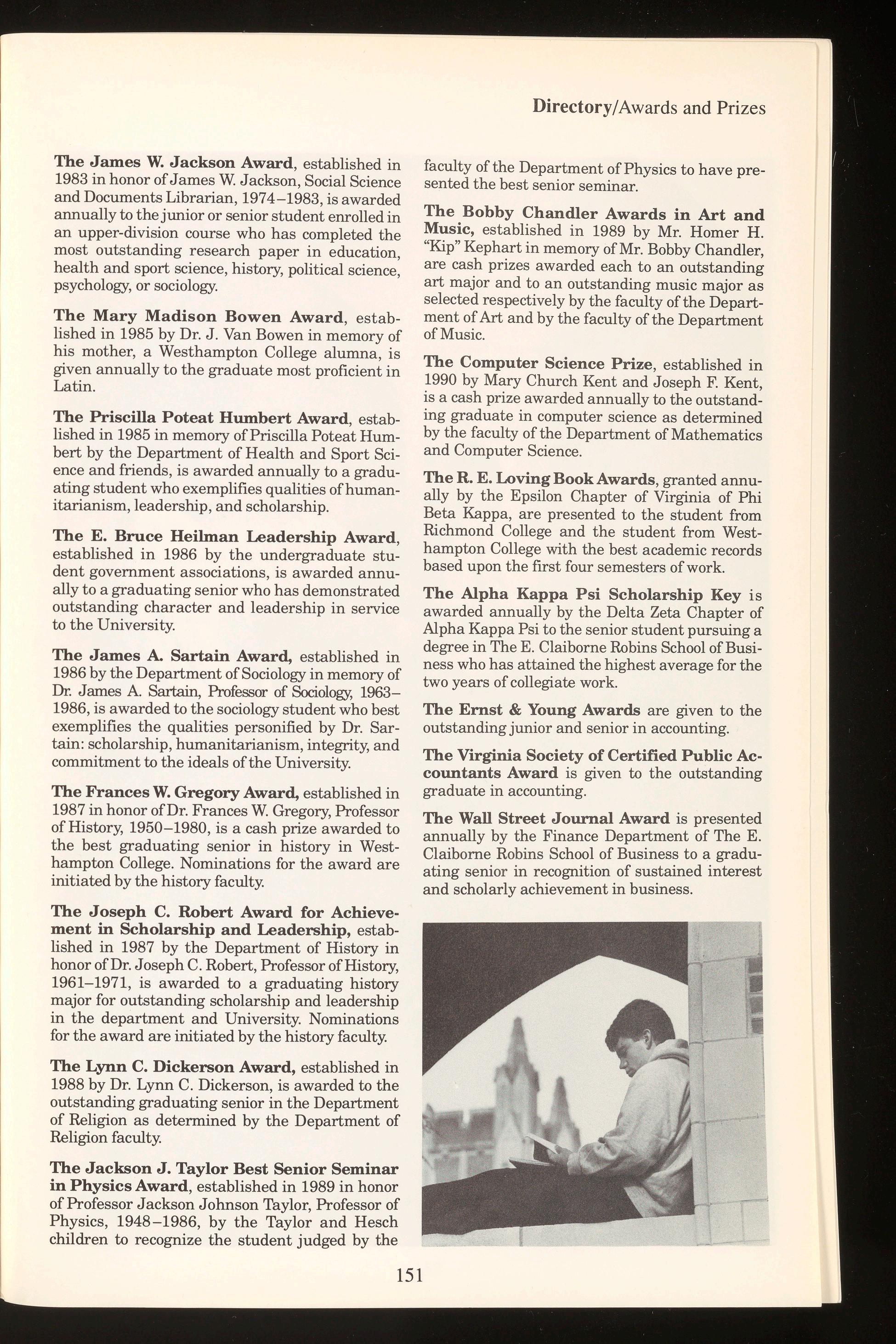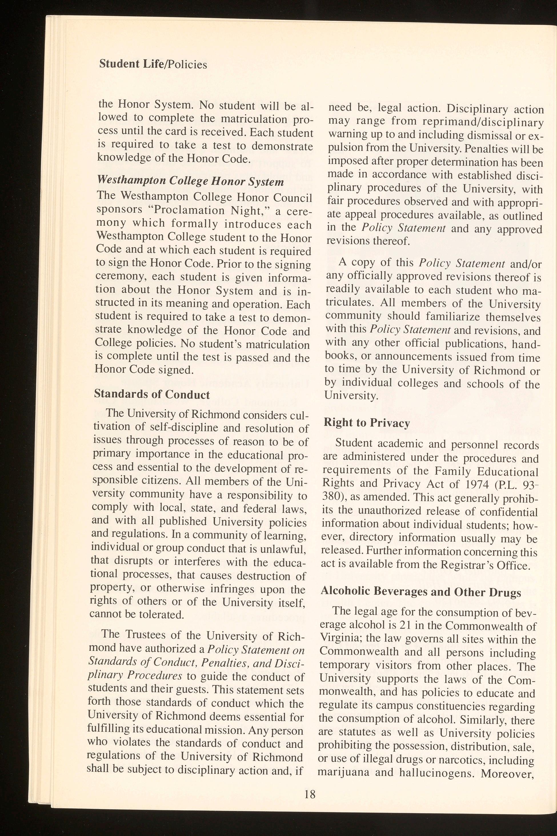 The University of Richmond does not discriminate on the basis of sex, religion, age, handicap, race, color or national origin. Any inquiries regarding the University's policies in these areas should be directed to the Office of the Vice President for Student Affairs, University of Richmond, Virginia 23173. Telephone: (804) 289-8032.