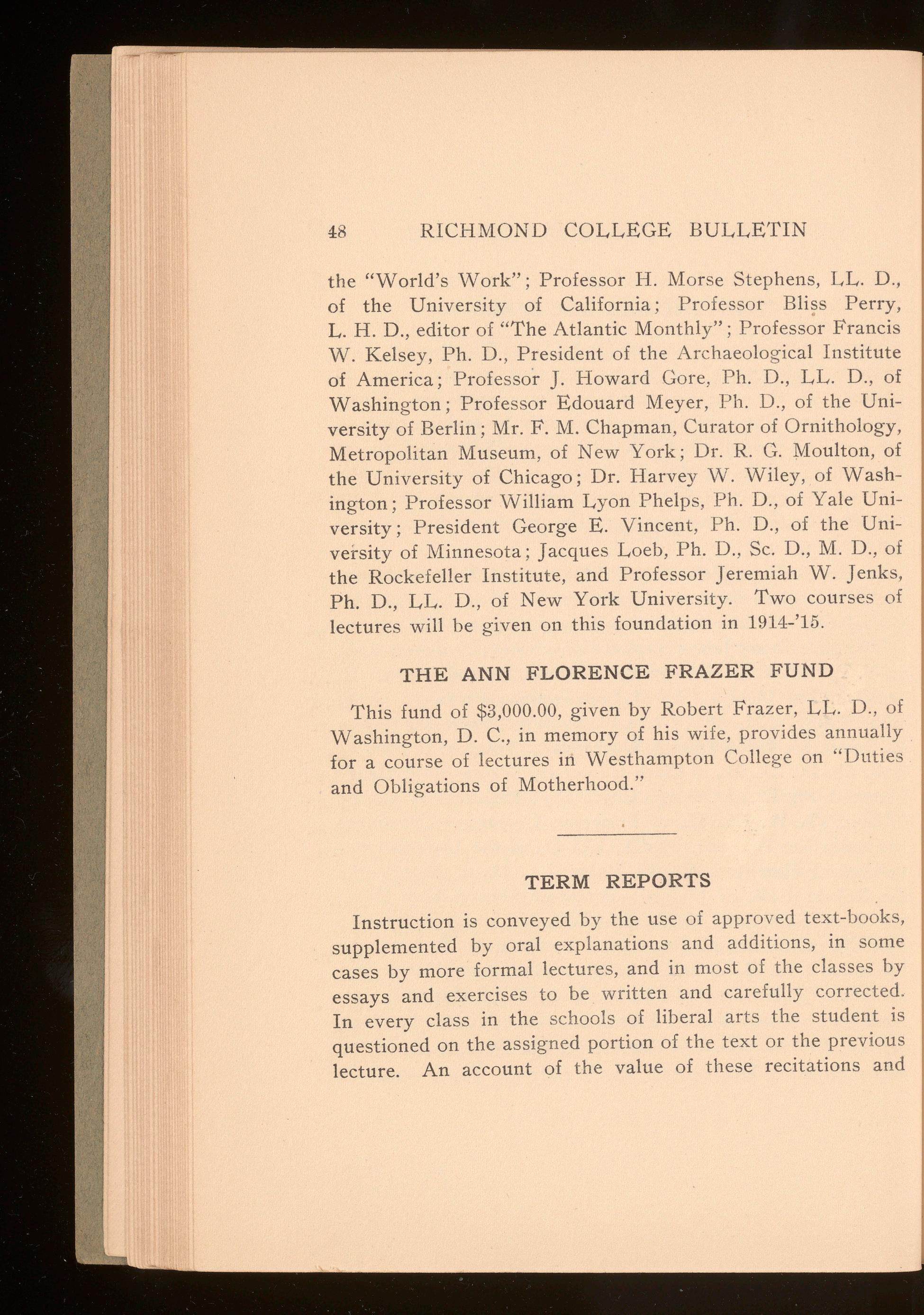 Scholarships established in Richmond College during the campaign for the Woman's College and Endownment Fund shall be used under the following regulations: