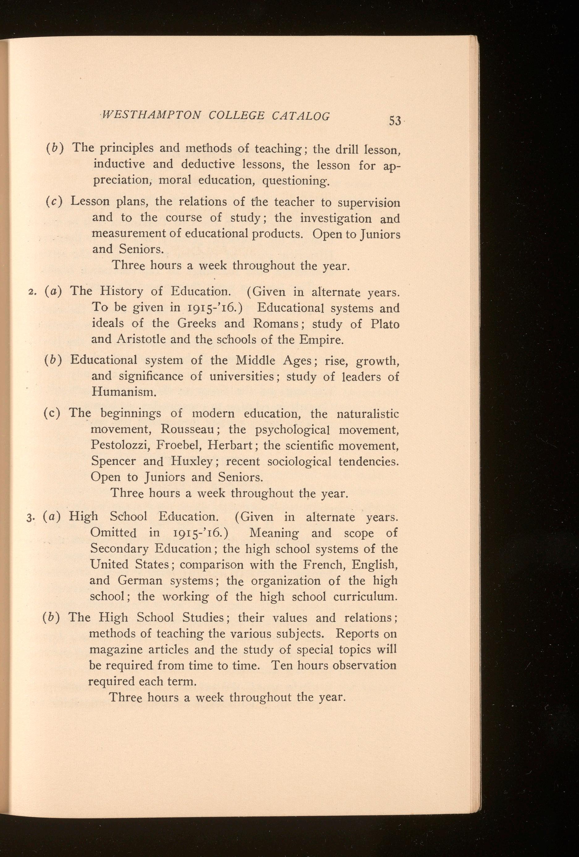 WESTHAMPTON COLLEGE, whose first session began September 17, 1914, had its origin in the desire of Virginia Baptists to provide for their daughters educational advantages of the best modern type and standard. Richmond College, founded as t'he Virginia Baptist Seminary in 1832, had already in 1898 admitted women to its advanced classes and to degree privileges. When in 19()6 plans were forming for the proposed college for women, it was agreed between Richmond College and the Virginia Baptist Education Commission that Richmond College should establish and maintain a new college for women of equal grade with the college for men. In order to carry these plans into effect, a campaign for $500,000 was inaugurated and after several years of united effort the full sum was collected. In the meantime the Richmond College corporation had decided not only to build a new college for women, but also to rebuild the old college for men at a new site.