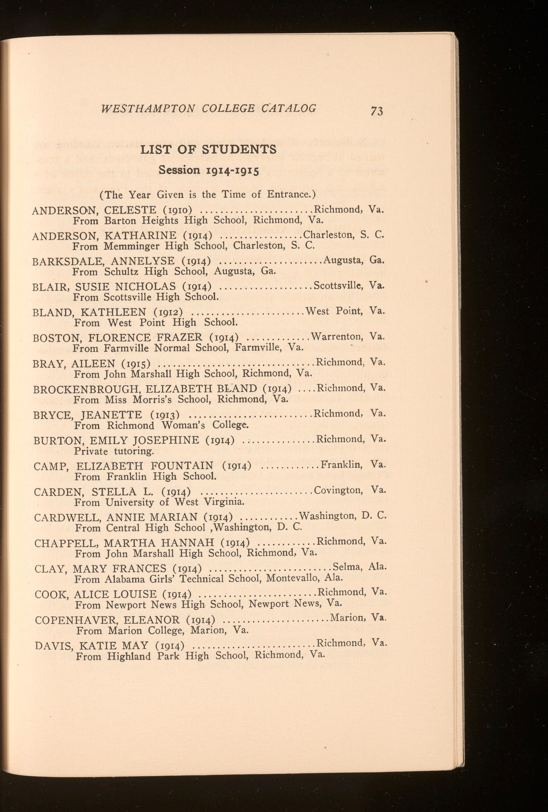 GAINES, ELIZABETH (1915) .................. Richmond College, Va. From Richmond Woman's Coilege, Richmond, Va.