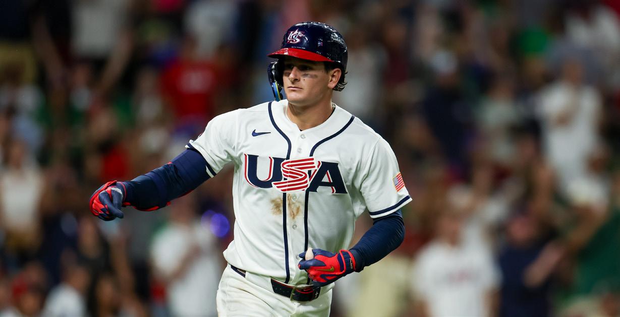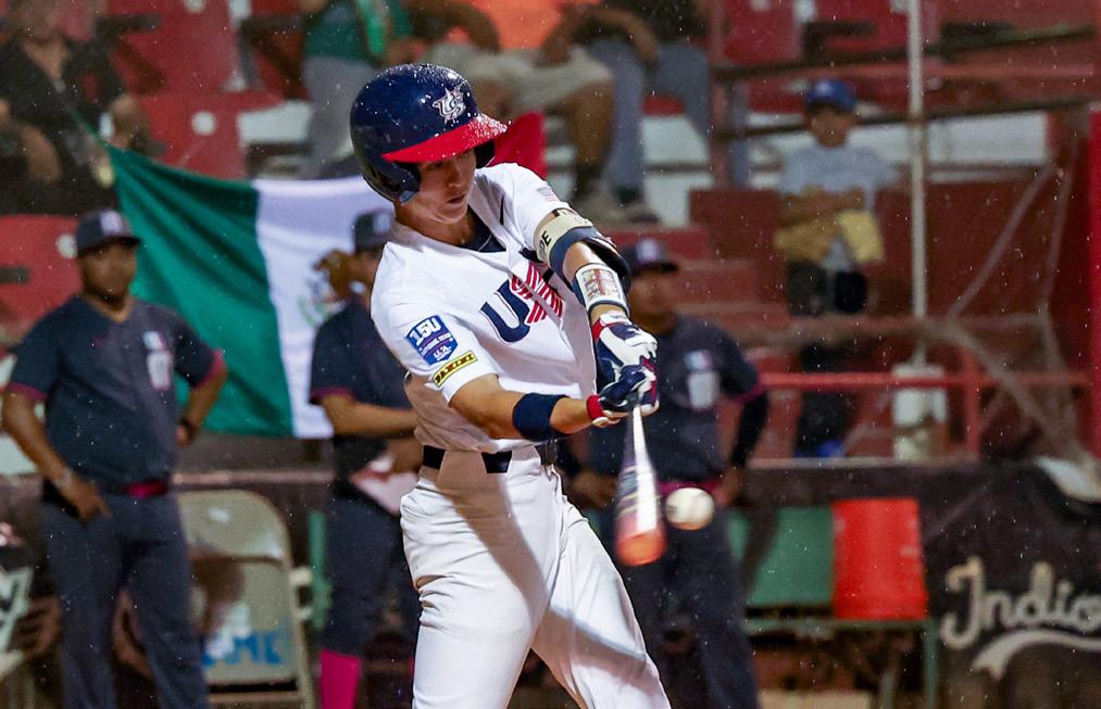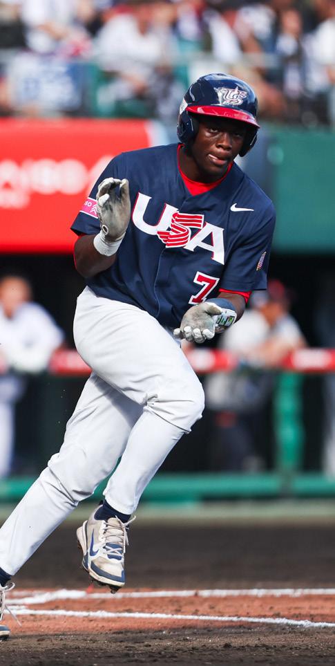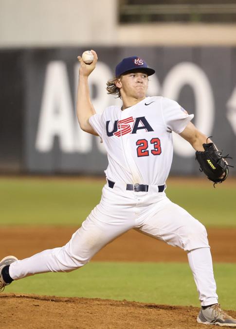 Kurz played in all five games for Team USA during its fivegame International Friendly Series against Australia. He batted .286 in seven at-bats, as the stars and stripes outscored the Australians 62-0 in the five-game sweep. Kurz started one game at shortstop and showed off his speed with a stolen base. He’ll be making his NHSI debut with Orange Lutheran this year and is currently committed to play for the South Carolina Gamecocks in two years.