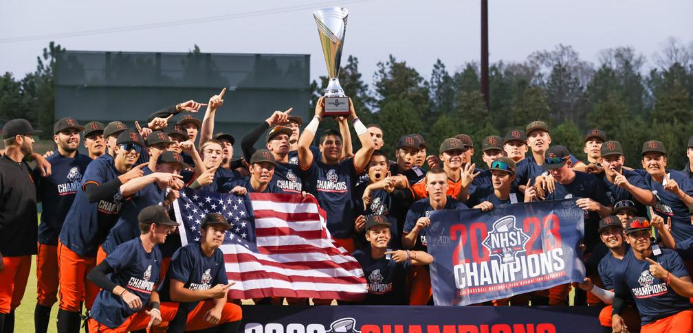 The Falcons again bring a roster filled with talented arms and athletic defenders. Three seniors are committed to play at the collegiate level: right-handers Chris Alzaga and Hayden Vanderhoof (Long Beach State) and infielders Jacob Bitonti (Grand Canyon), Johnny Tena (UC San Diego). Additionally, junior infielder Damien Cordero will take his talents to California Baptist in a couple years. With this mix of experienced seniors and emerging younger talent, Aquinas will have the pitching depth and bats to make another deep run in Cary. After proving two years ago that they can compete with the nation’s best, the Falcons arrive looking to finish the job this time around. Making its first appearance at the NHSI is Baylor School, a perennial contender in Tennessee that produced reigning AL Rookie of the Year Nick Kurtz. Located in Chattanooga, the Red Raiders have captured three state championships in the past eight seasons and entered the season ranked No. 25 by MaxPreps. Baylor’s roster features six Division I commits and a balanced attack of pitching and offense. “The teams we had in 2020 and 2021 [with future firstround picks Kurtz and Cooper Kinney] were both super talented teams," says Head Coach Greg Elie. "But I really like this club. They're very explosive and athletic.”