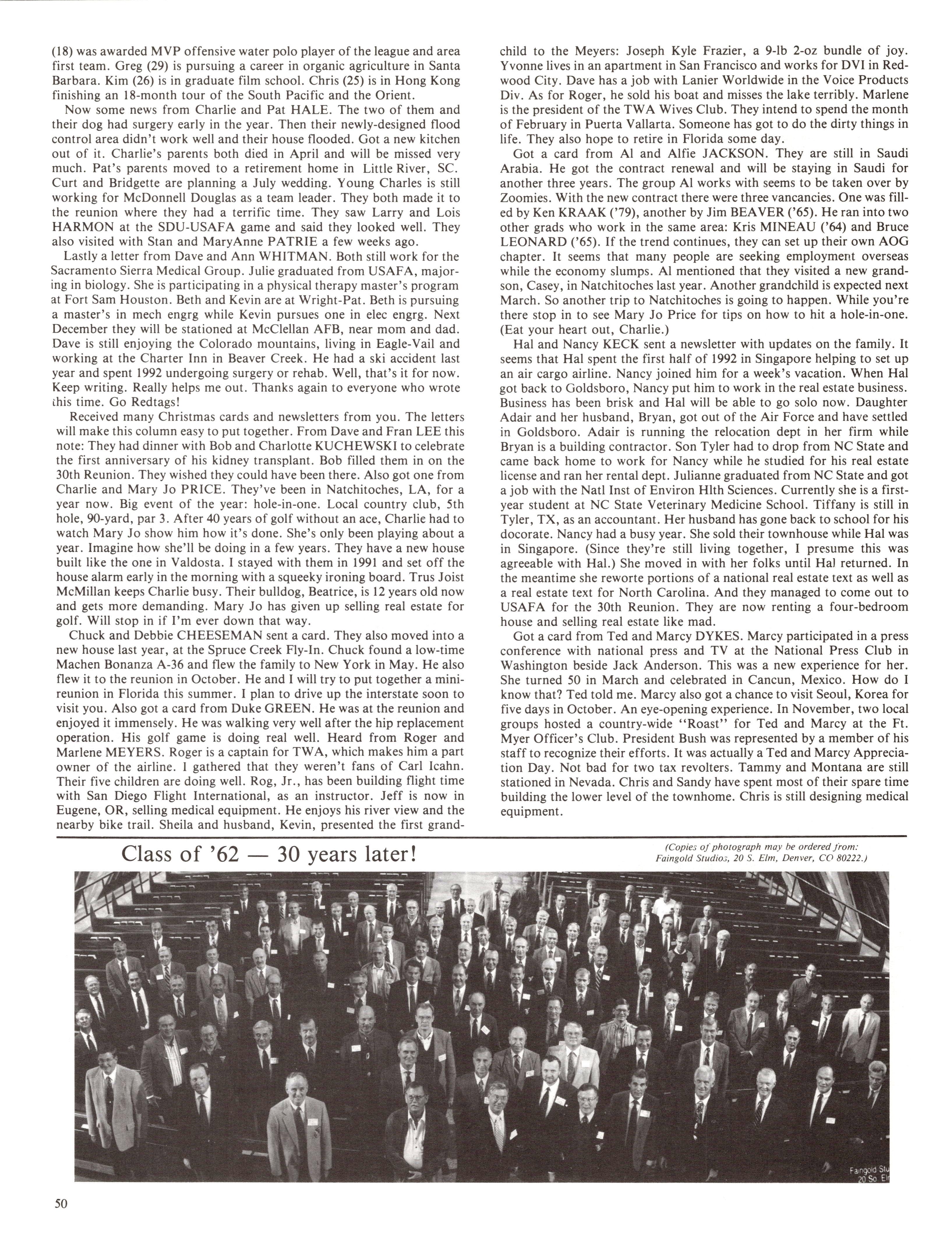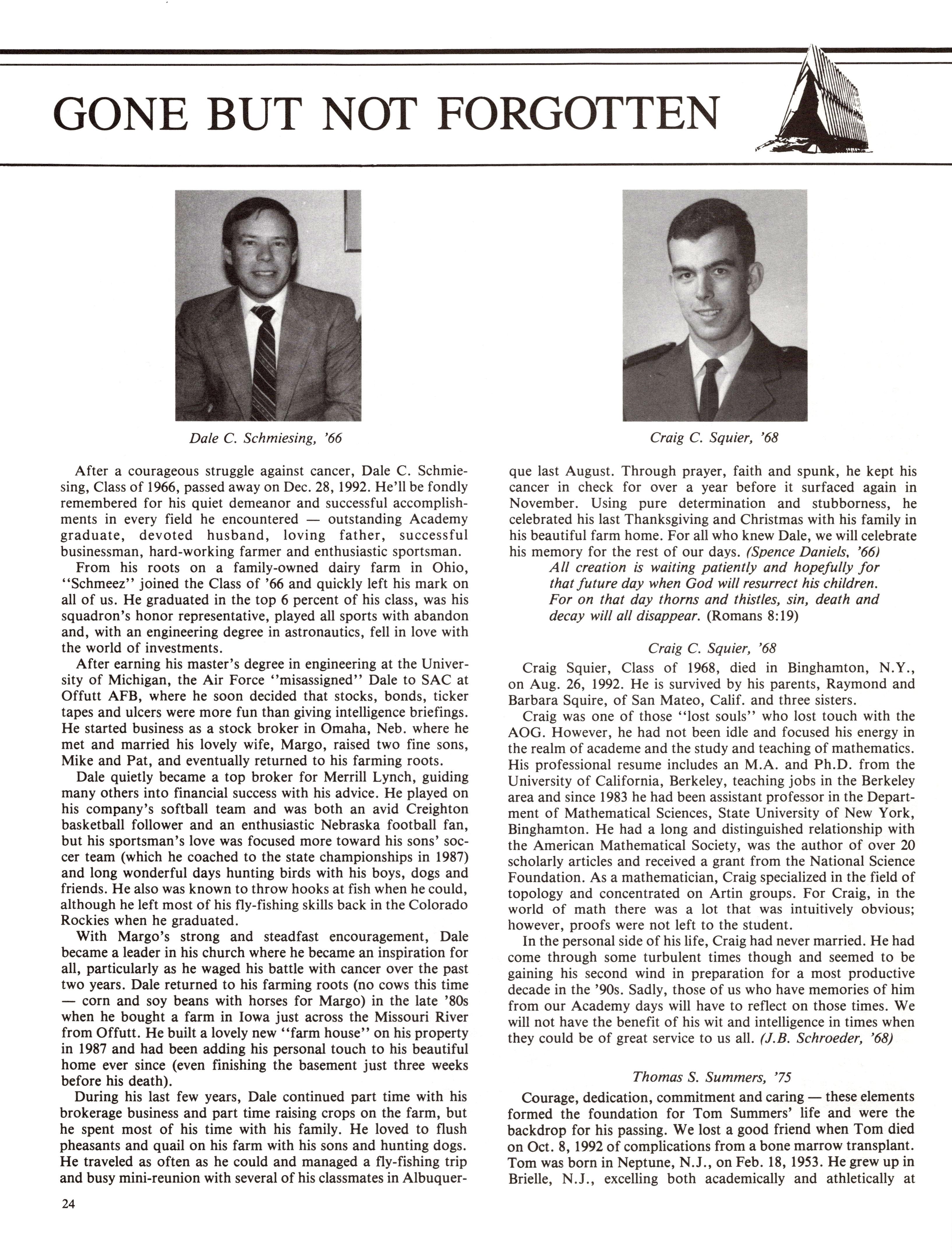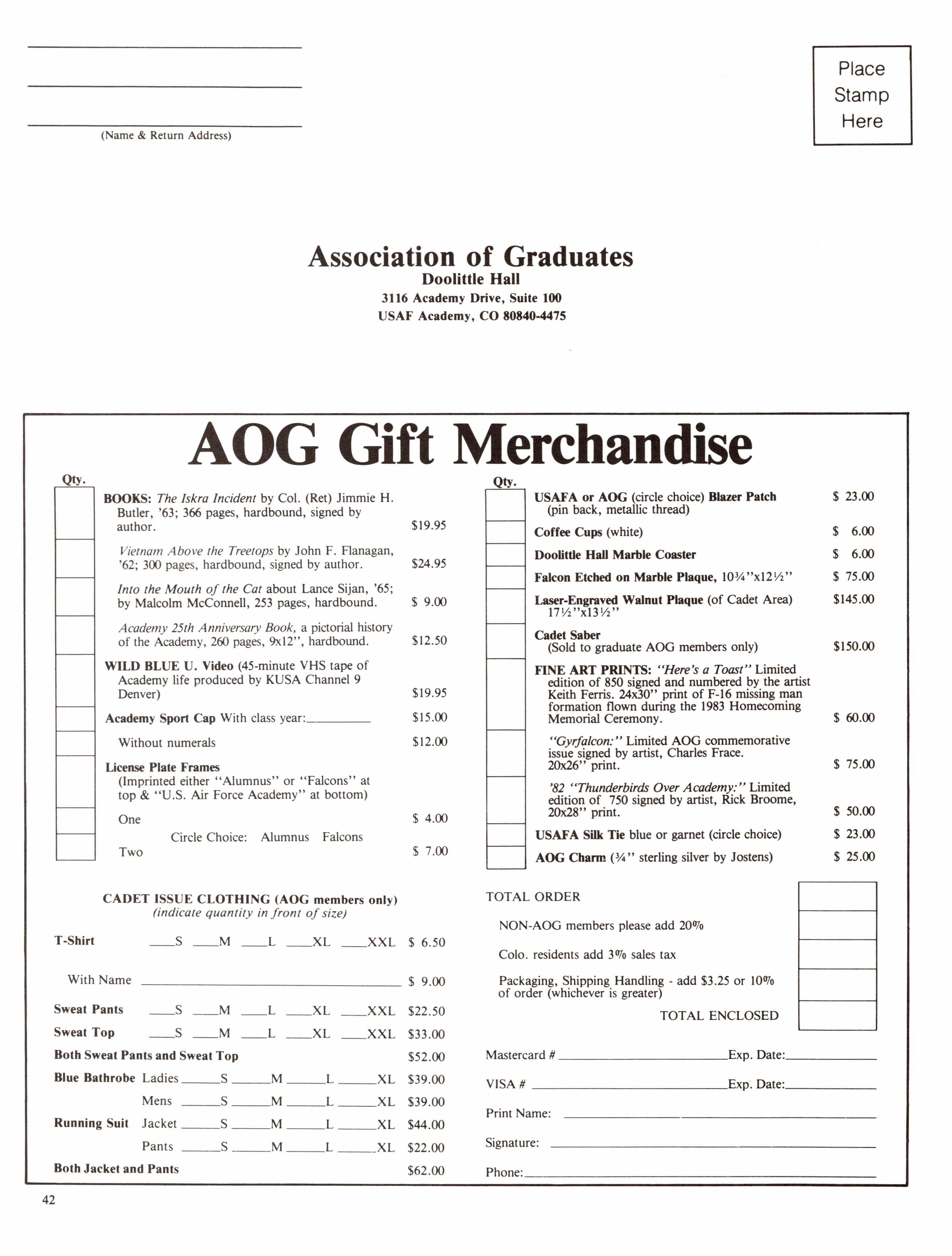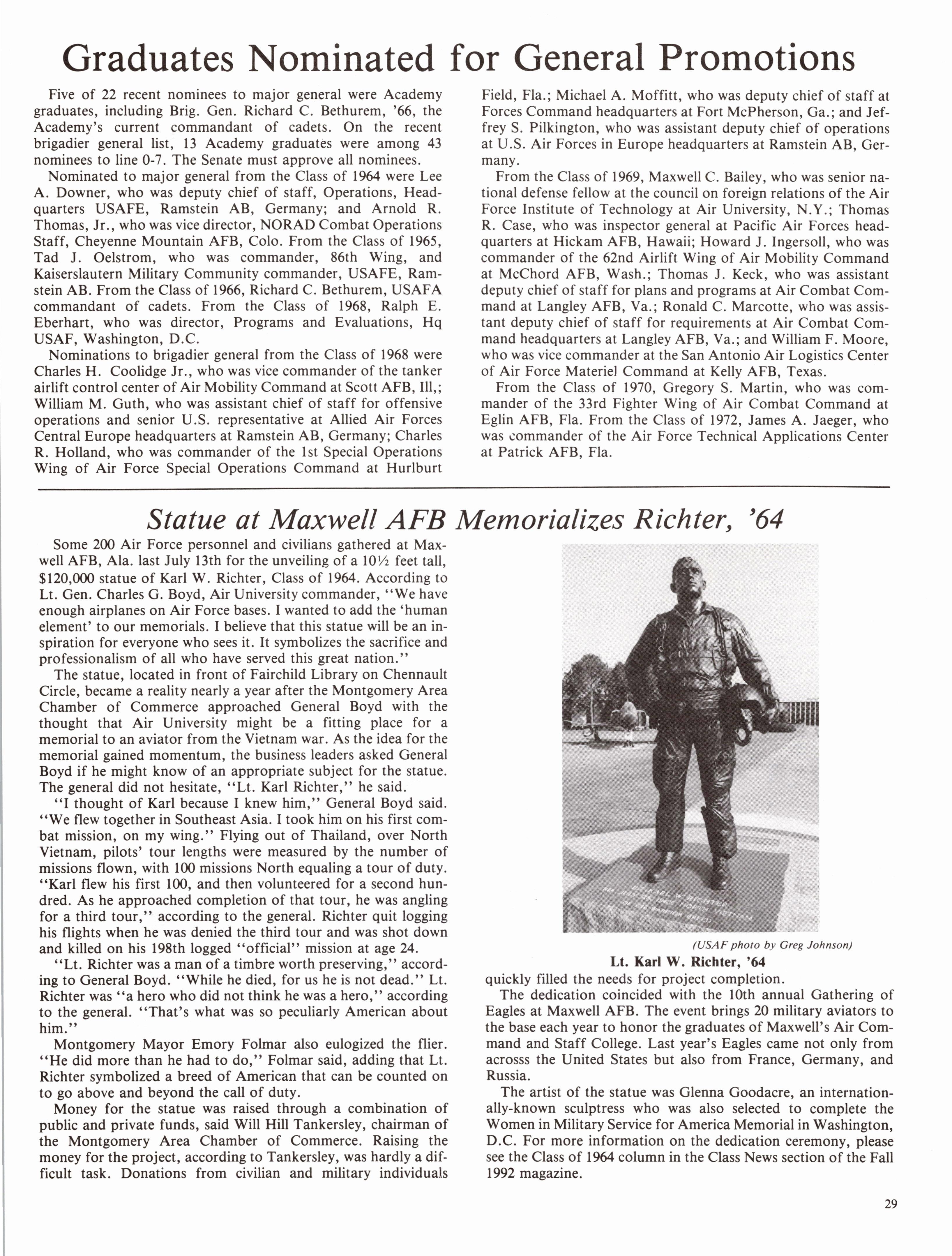 Opinions expressed in this magazine are those of the authors. They do not necessarily reflect the opinions, policy or attitude of the Association of Graduates, its officers or the editorial staff. The appearance of advertisements in this publication does not constitute an endorsement by the Association of Graduates of the products or services advertised. Copyright, Association of Graduates of the U.S. Air Force Academy, Winter 1992-93.