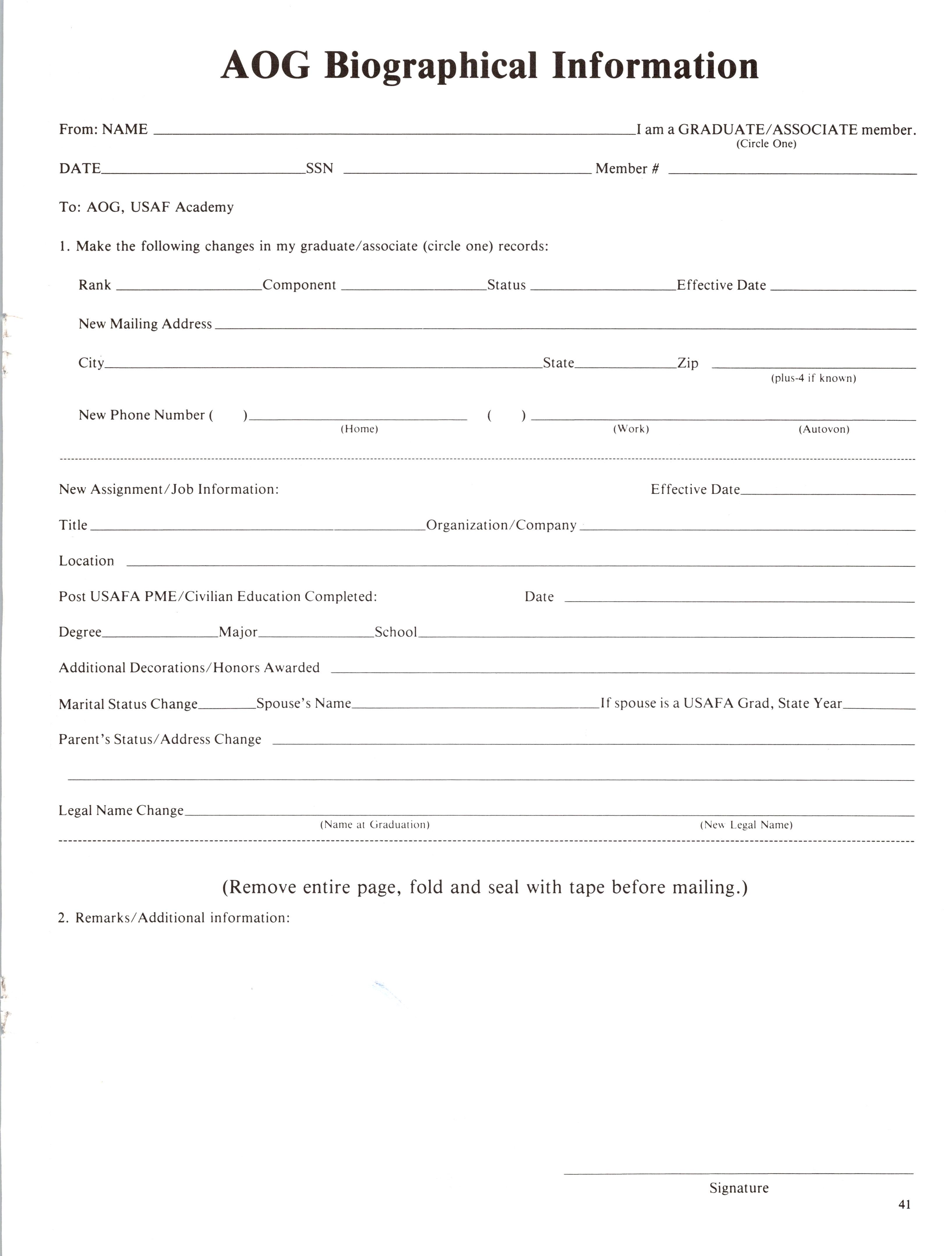 Send Form 3579 to CHECKPOINTS, Association of Graduates, Doolittle Hall, 3116 Academy Drive, Suite 100, USAF Academy, Colo. 80840-4475.