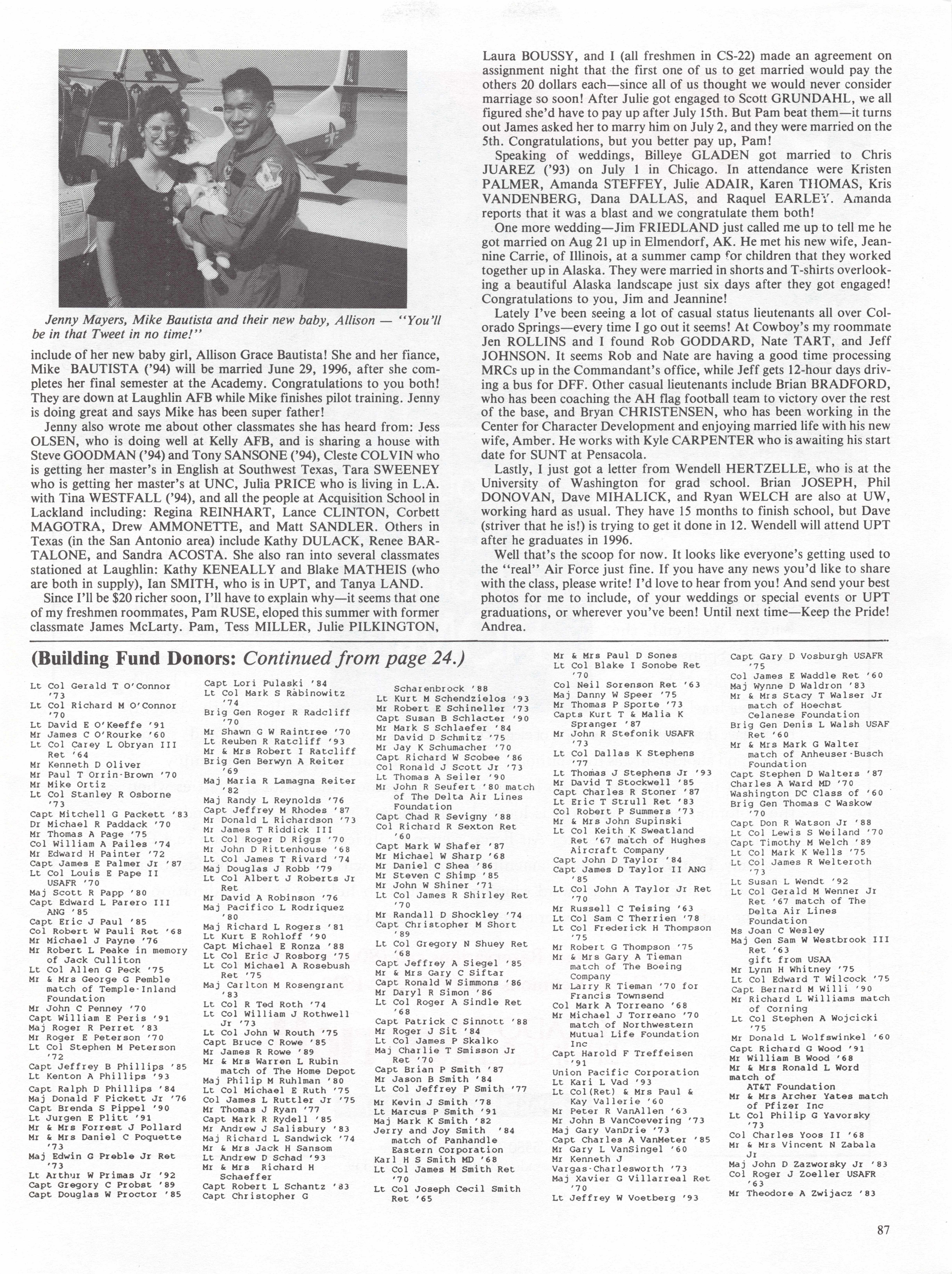 &Mrs Stacy TWalser Jr match of Hoechst Ce1anese Founda tion Brig Gen Denis LWalsh USAF Ret '60 Mr &Mrs Mark GWalter match of Anheuser-Busch Foundation