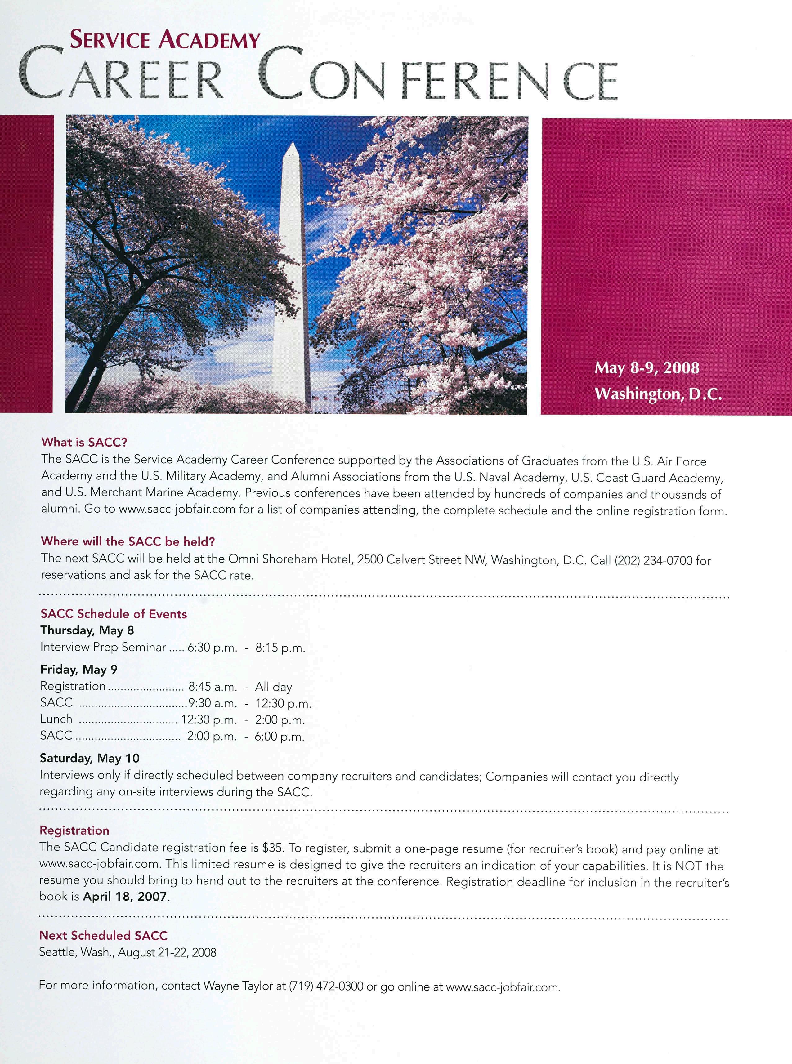 A detailed job description can be found at usafa.org by searching under “Employment.” Salary is $150,000, depending on experience; relocation expenses and performance-based bonuses apply. With the selection goal ofJuly 2008, candidates should submit a cover letter and resume to The Association ofGraduates, 3116 Academy Drive, USAFA, CO 80840-4475 no later than March 31. Ifthe envelope does not indicate it an application for the CEO position, customer service will open it.