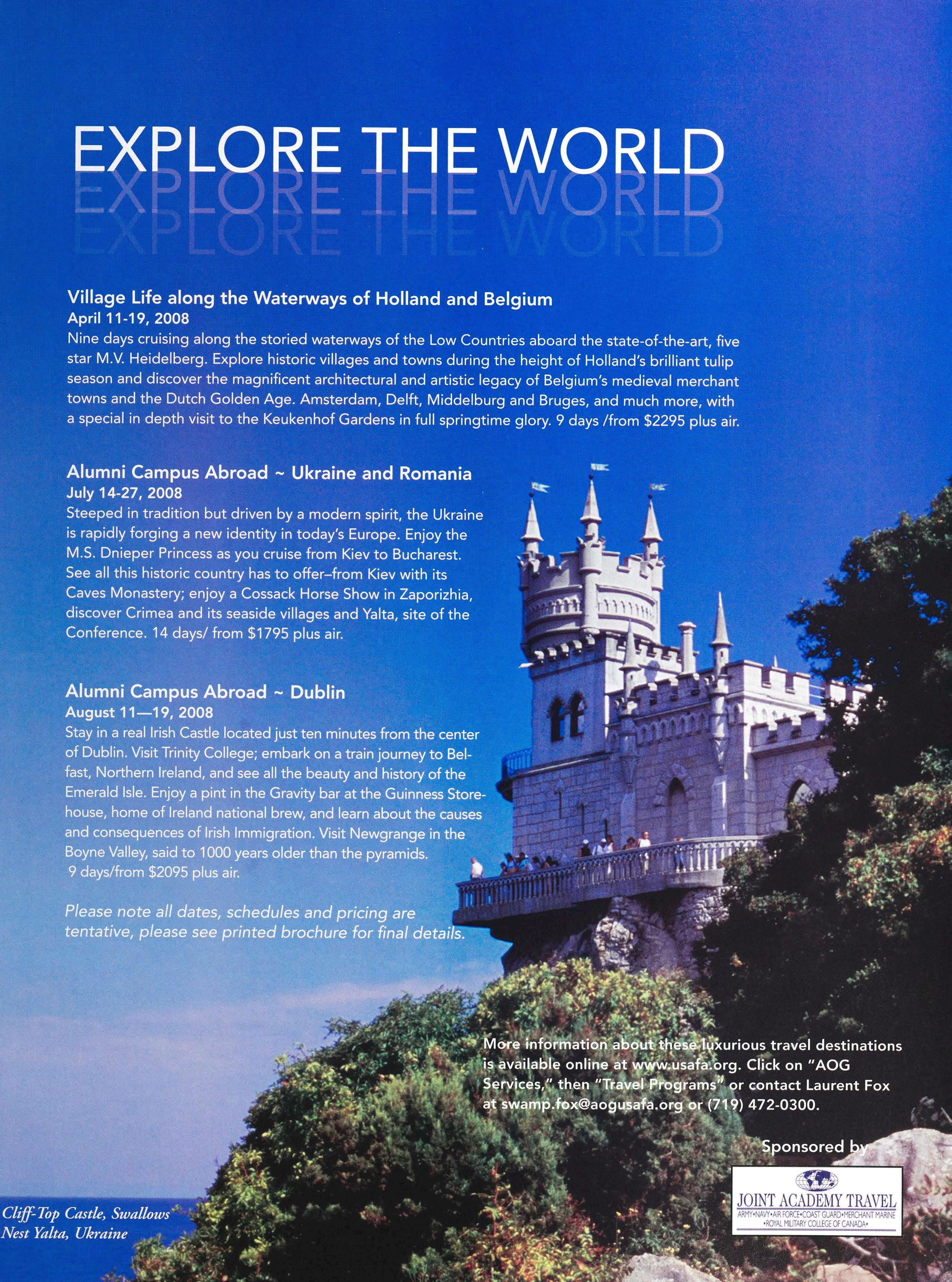Opinionsexpressed in this magazine are those ofthe authors. They do not necessarily reflect the opinions, policy or attitude of the Association of Graduates, its officers or the editorial staff. The appearance of advertisements in this publication does not constitute an endorsement by the Association ofGraduates of the products or services advertised. Copyright, Association ofGraduates ofthe U.S. Air Force Academy, March 2008. m