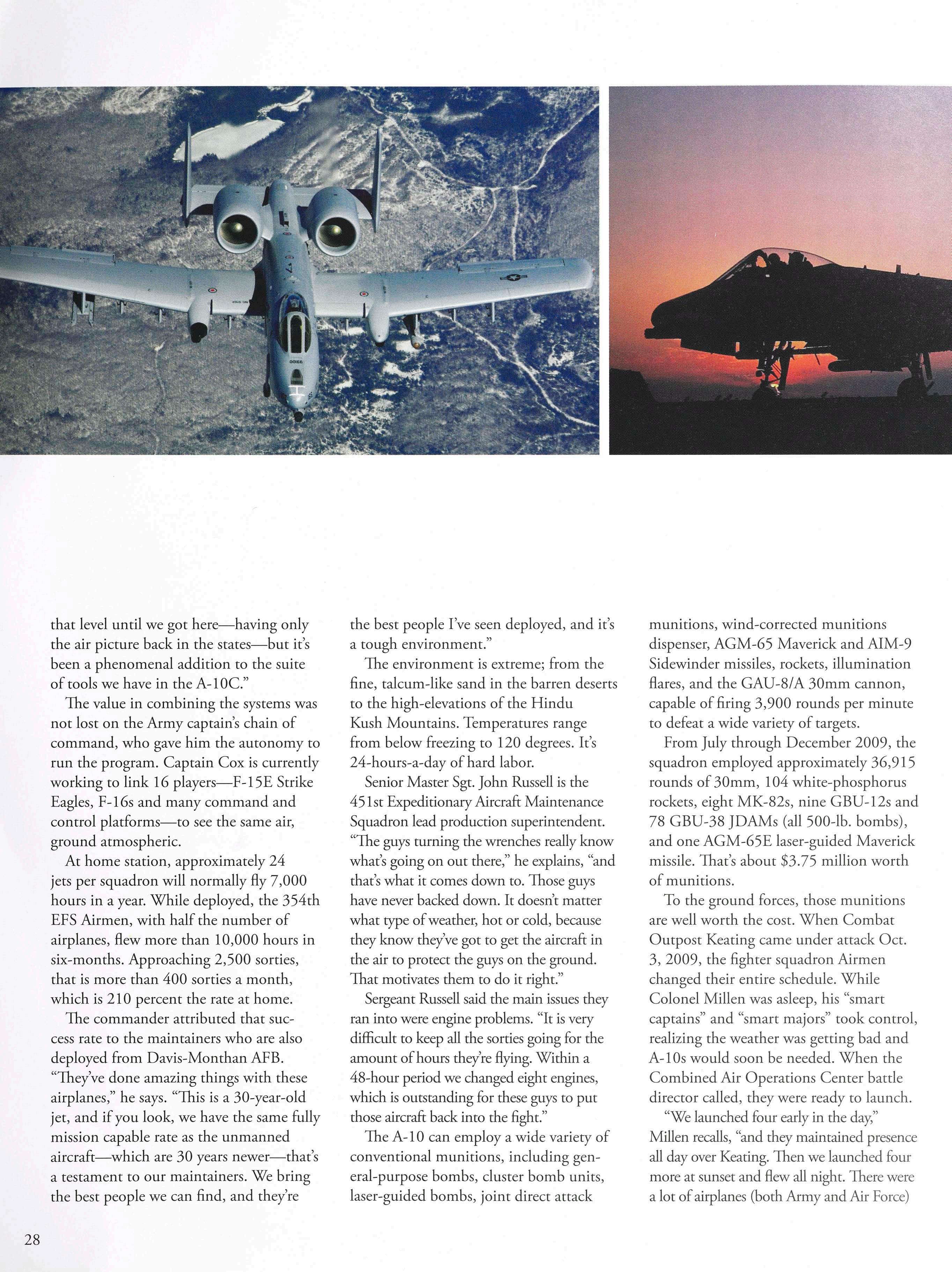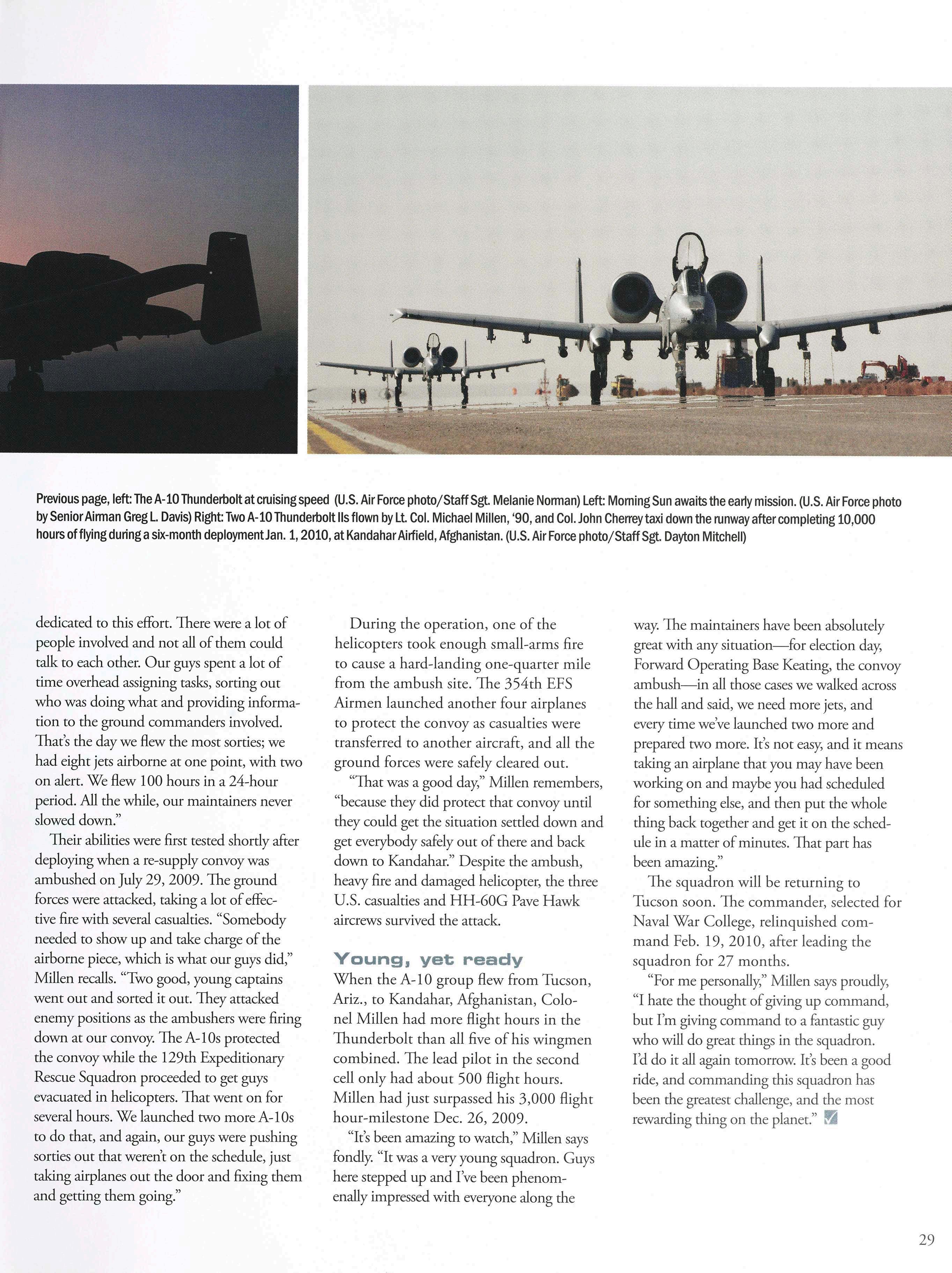 After six months in Afghanistan, Lt. Col. Michael Millen's, '90, A-10 close air support squadron past 10,000 flight hours. Photo by U.S. Air Force photo/ Tech. Sgt. Parker Gyokeres