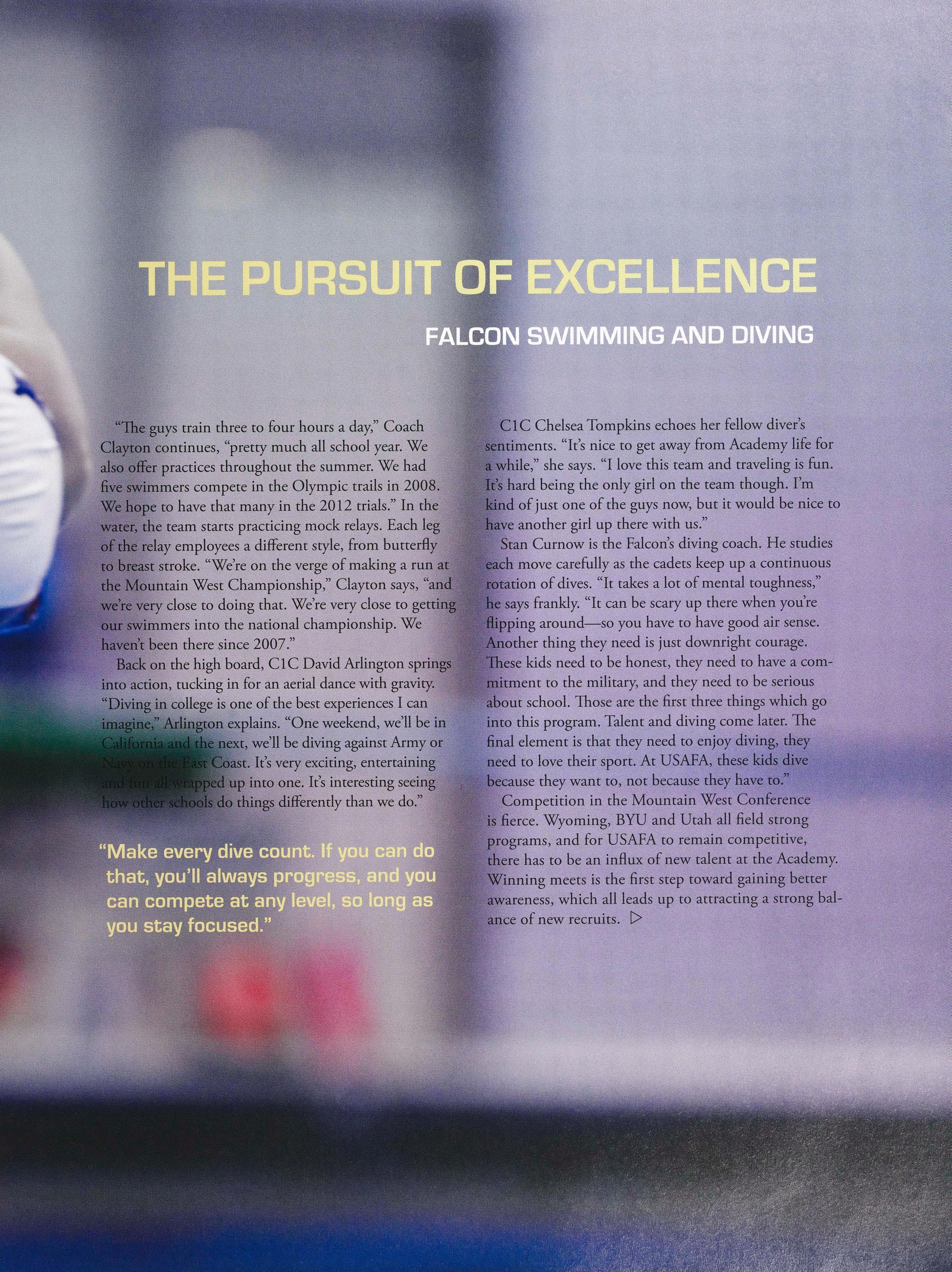 I could go on with legions of examples ofhow our culture differs from our two older siblings. I could also offer examples that I have personally observed on how the U.S. Army andthe U.S. Navy support their academies and alumni associations in a far greater and more aggressive way than our Air Force does. Are West Point cadets and graduates or Annapolis midshipman and graduates inherently better than we are? Obviously not. We all come from the same pool ofoutstanding applicants. What is it then about their attitudes and processes that produce superior levels of cohesiveness and loyalty in their grads? The fundamental question becomes, “What does the Air Force, the Academy and the AOG need to do to play in the same game?”