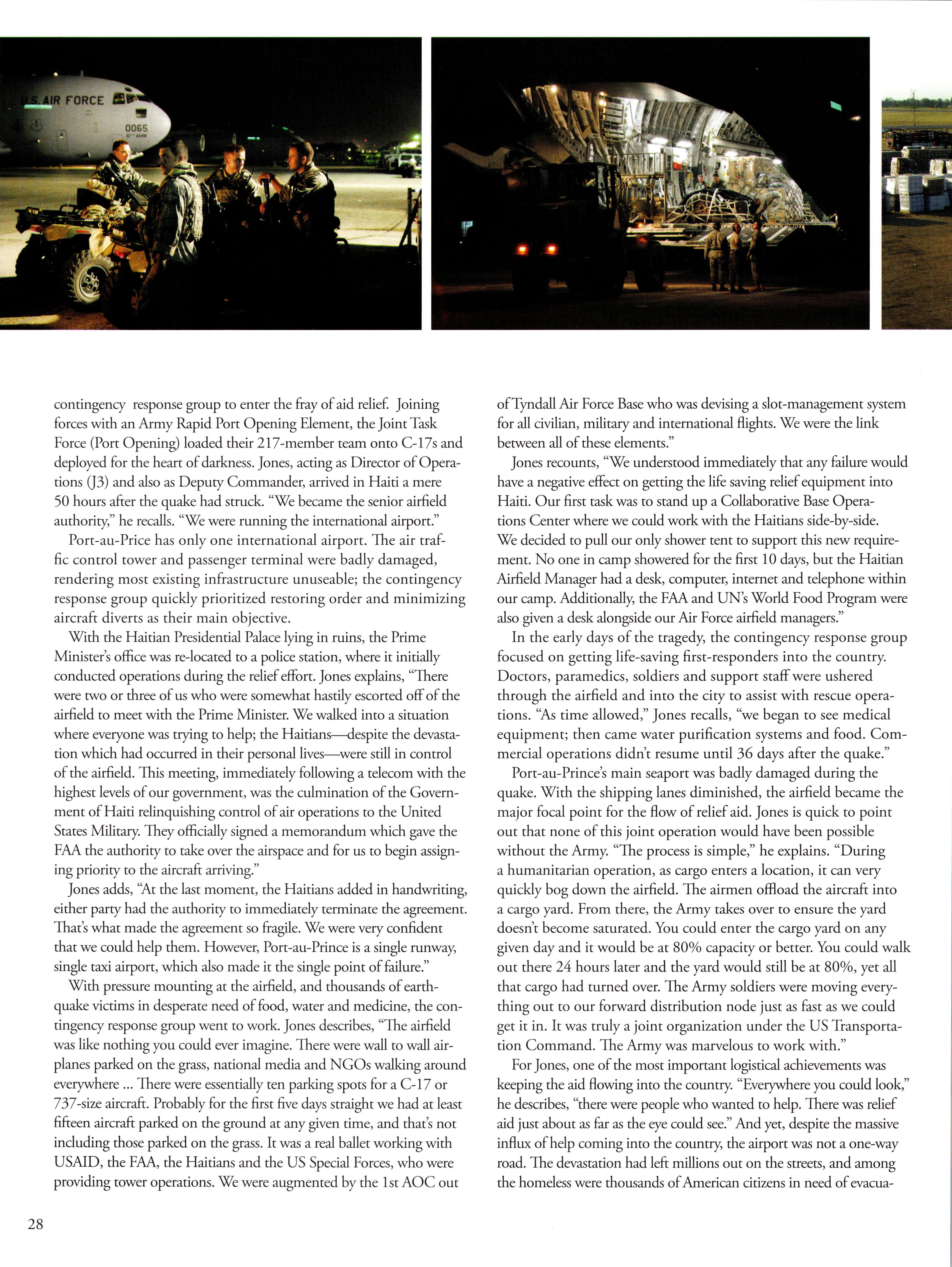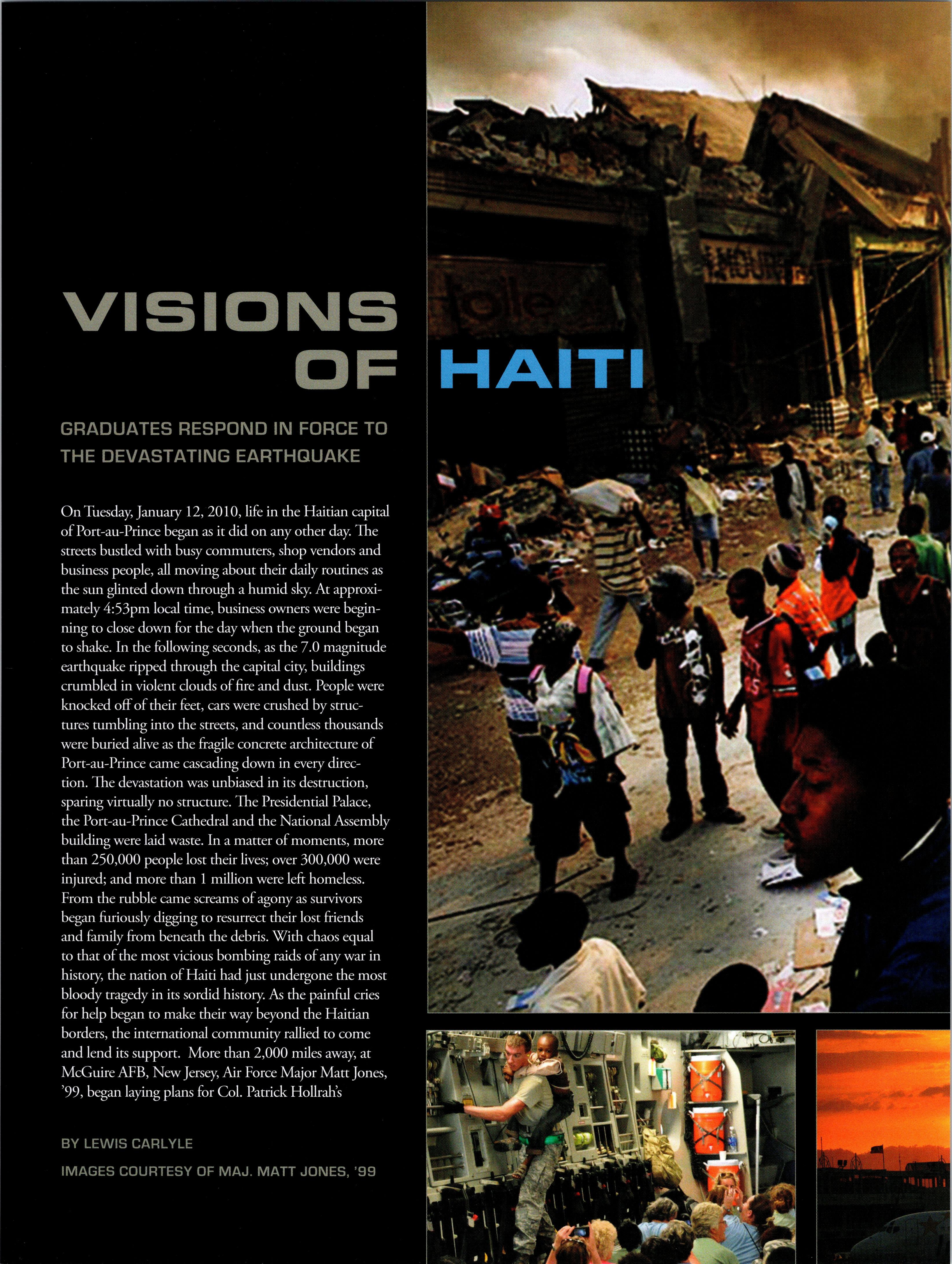 Maj. Matt Jones, '99, leads a contingency support group to help victims of the Caribbean's worst earthquake disaster in history.