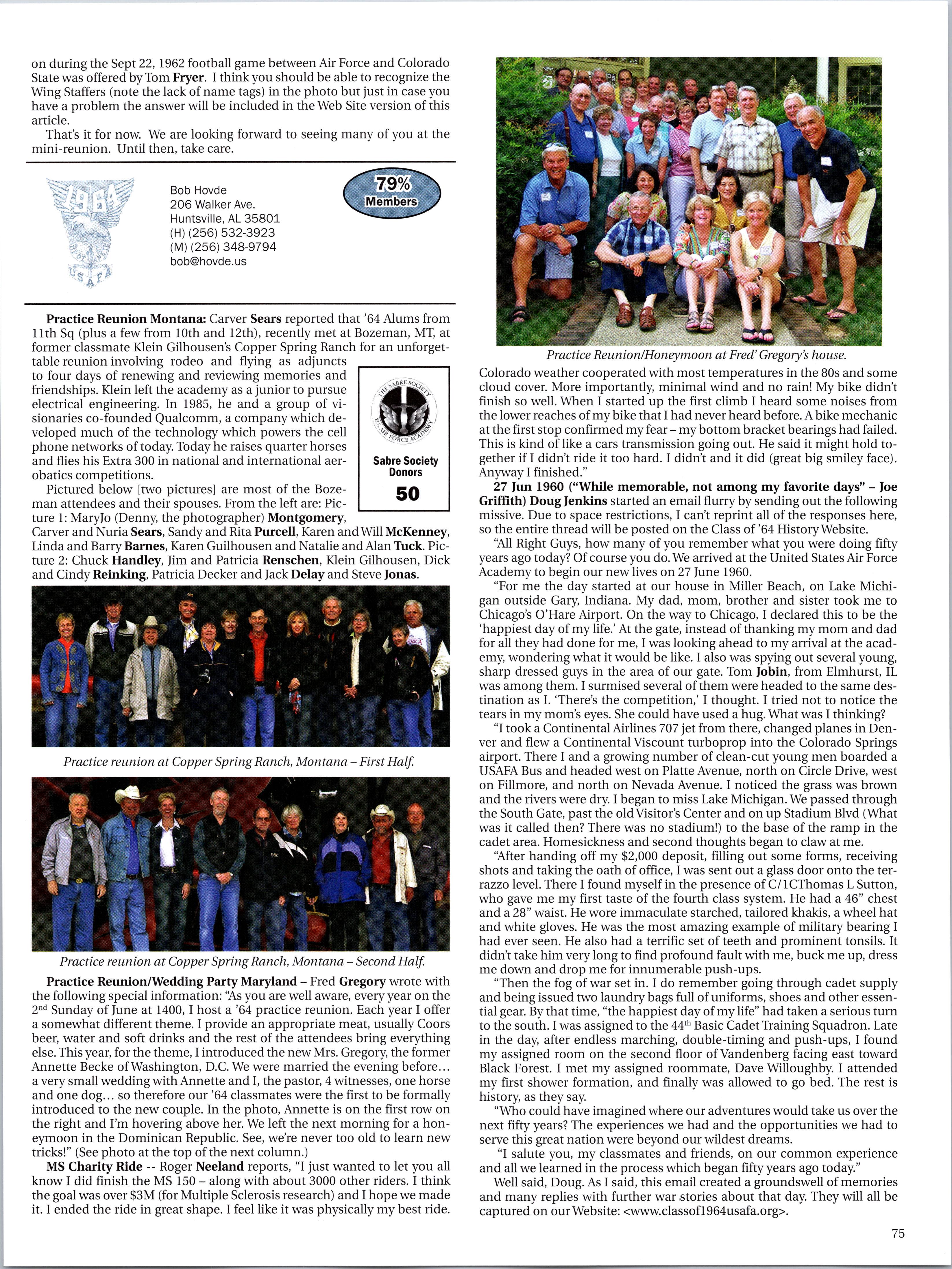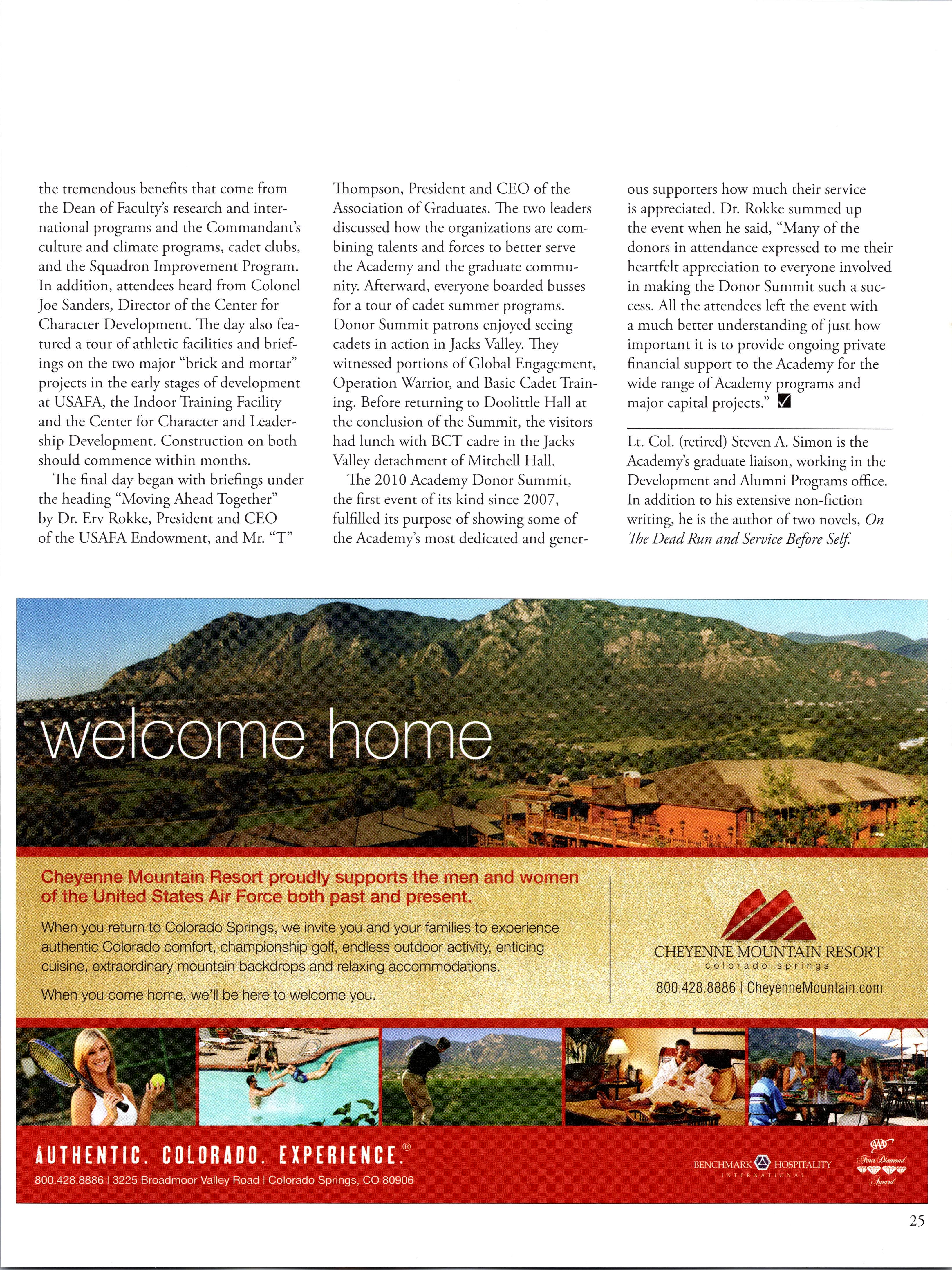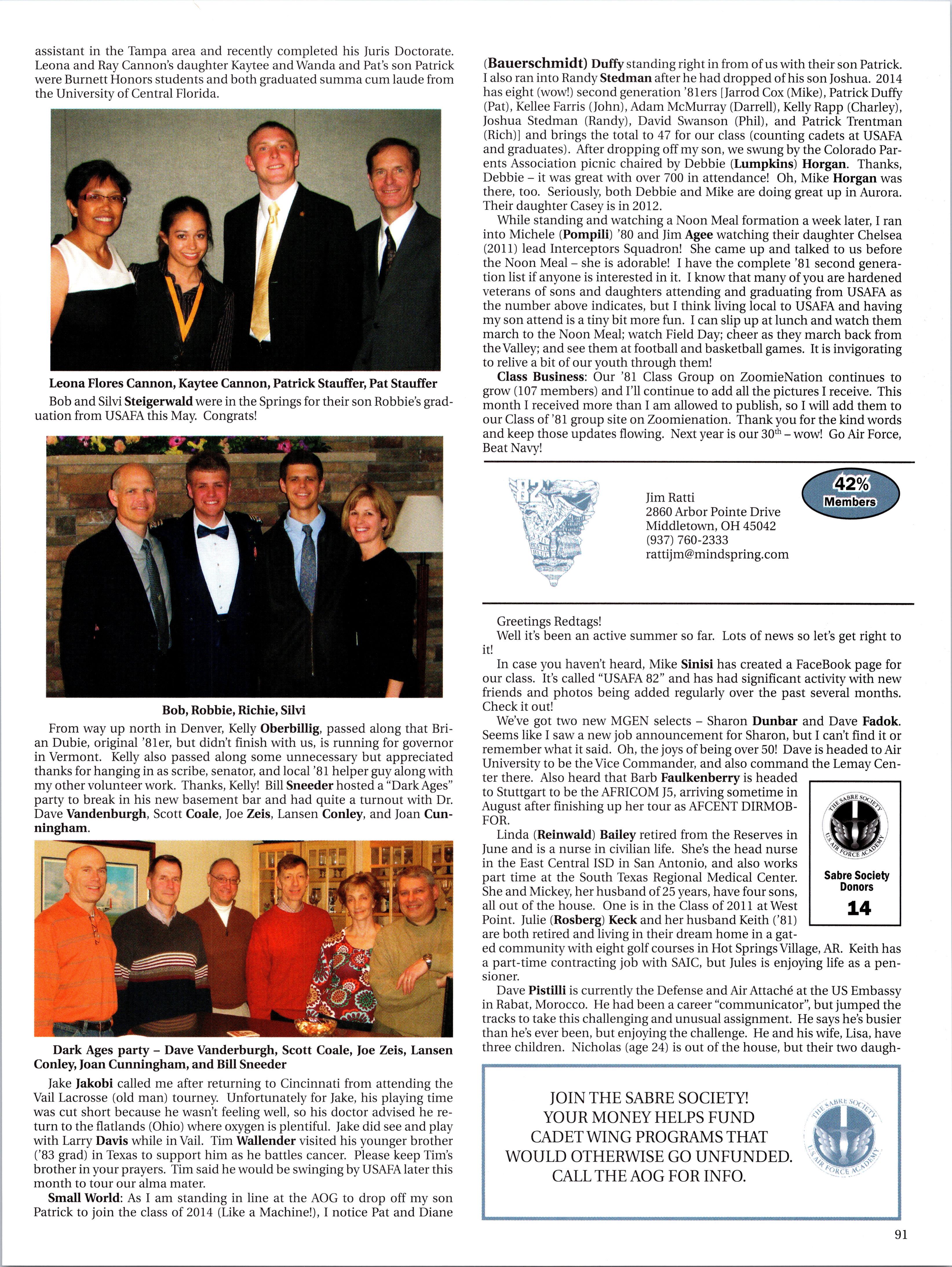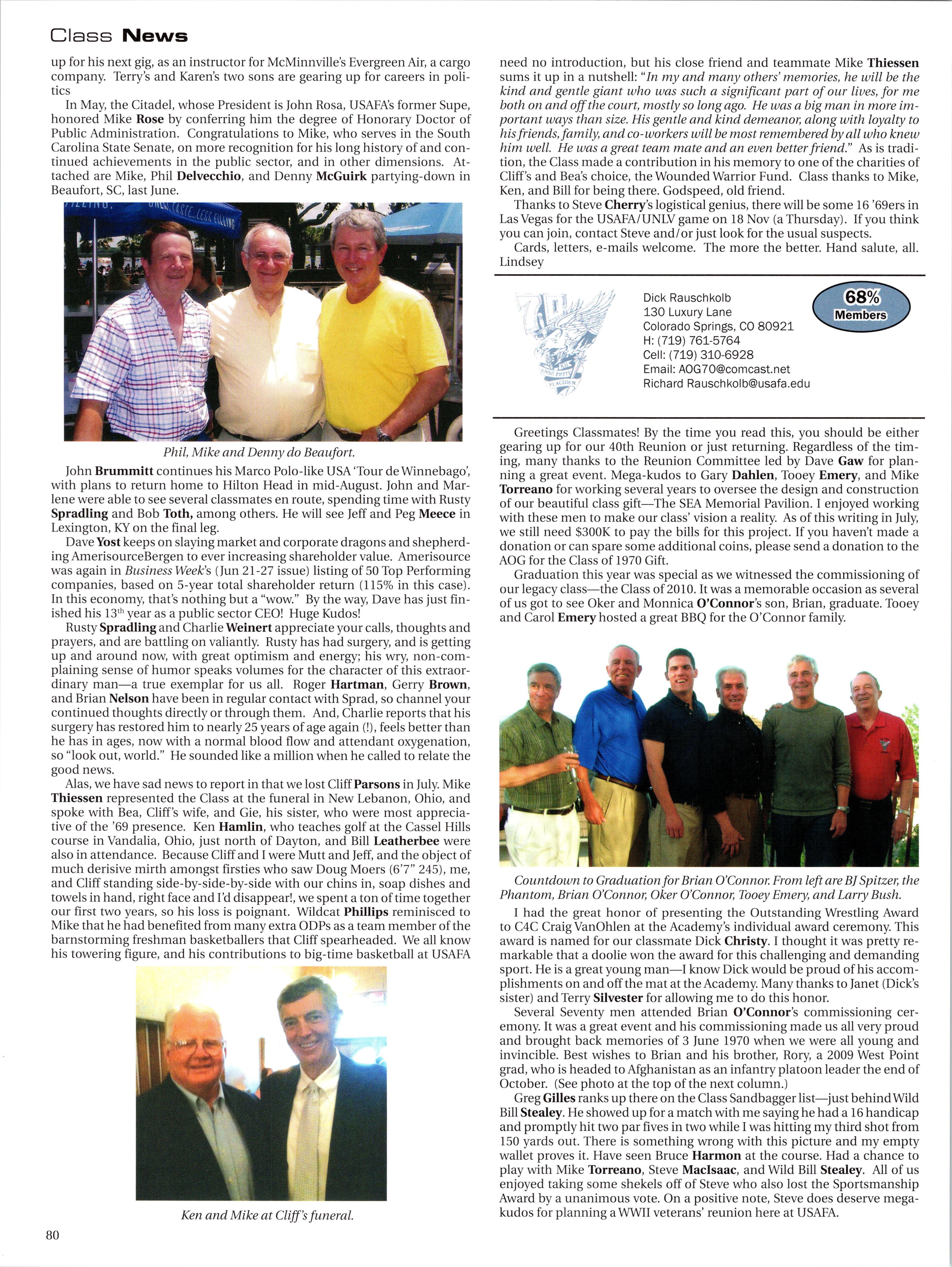 40 year graduate class several options to spend time with the “mentors” cadet class over their four year experience. While many grads take advantage ofthese opportunities to interact with cadets, the reality is there are more occasions for contact than there are graduate volunteers. With well over 3000 graduates now living in the Front Range area, we should be ‘over subscribed’ for these opportunities but the opposite is often true. It’s our duty to step up on this issue and we should simply do our duty.