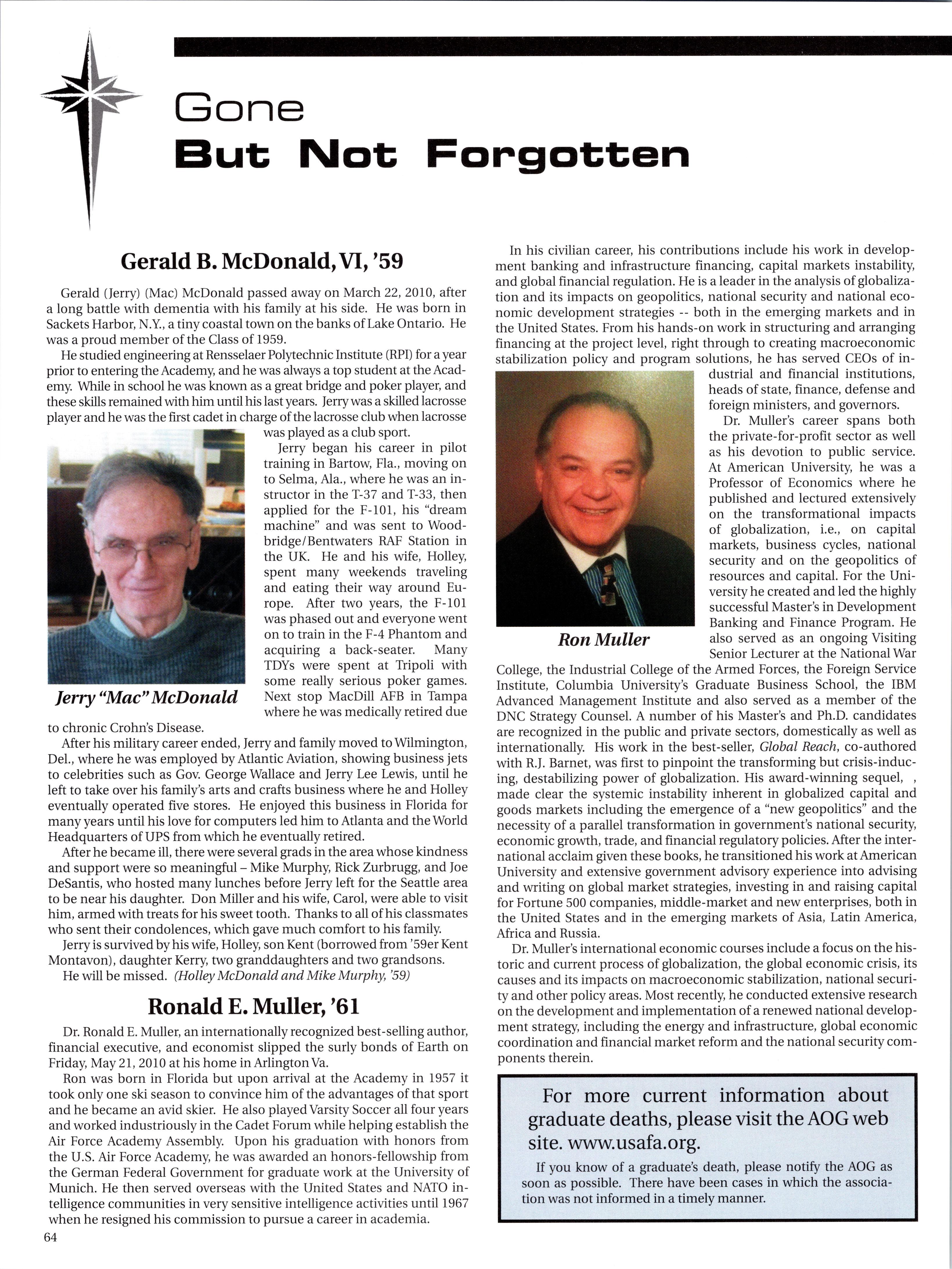 Mr. Daniel J. McDonald, Jr., Class of 1963, who died on July 8,2010 in Raleigh, N.C.