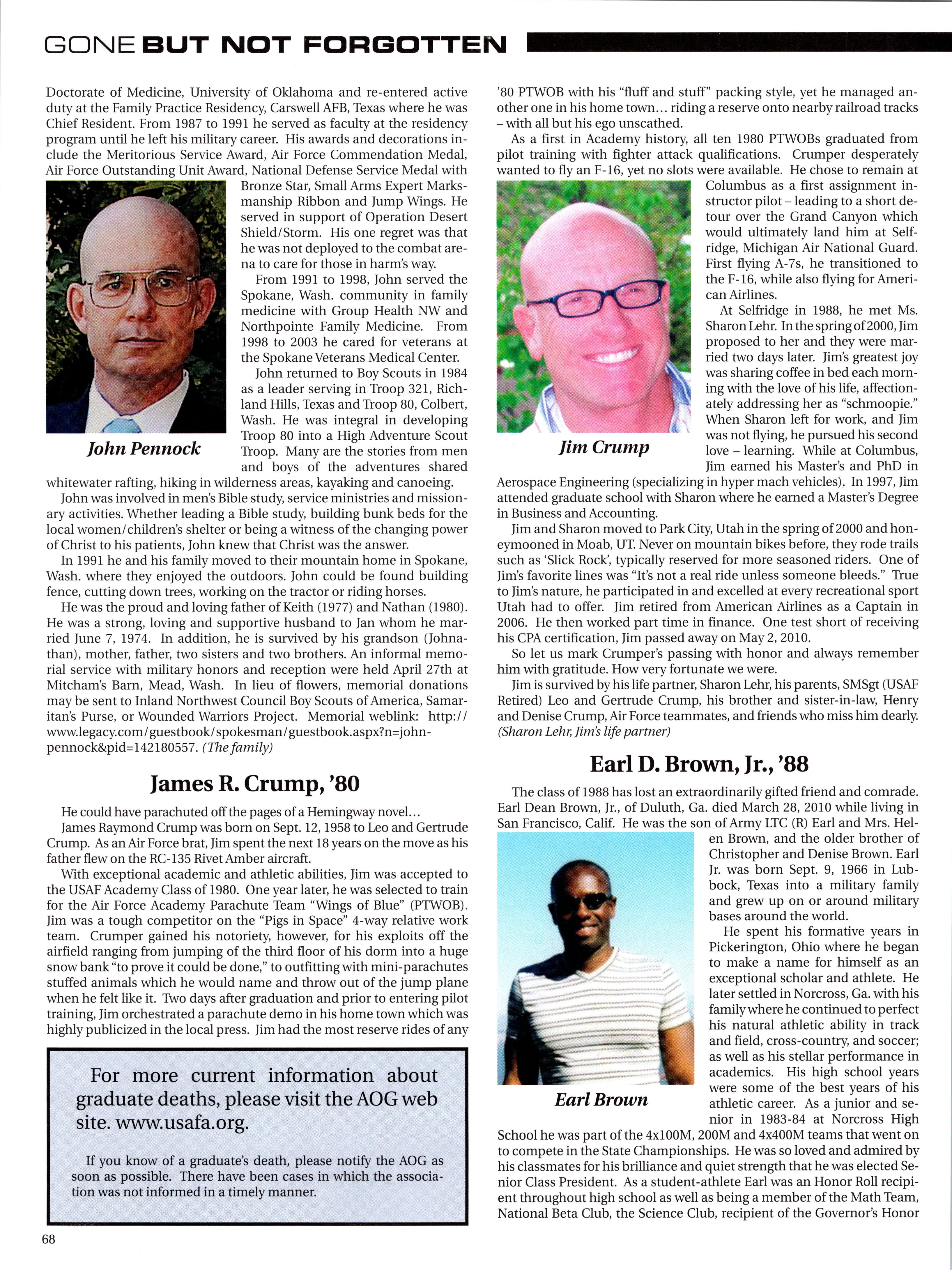 Lt. Col. (Ret) Thomas E. Sawner, III, Class of 1976, who died on July 11, 2010 in Arlington, Va.