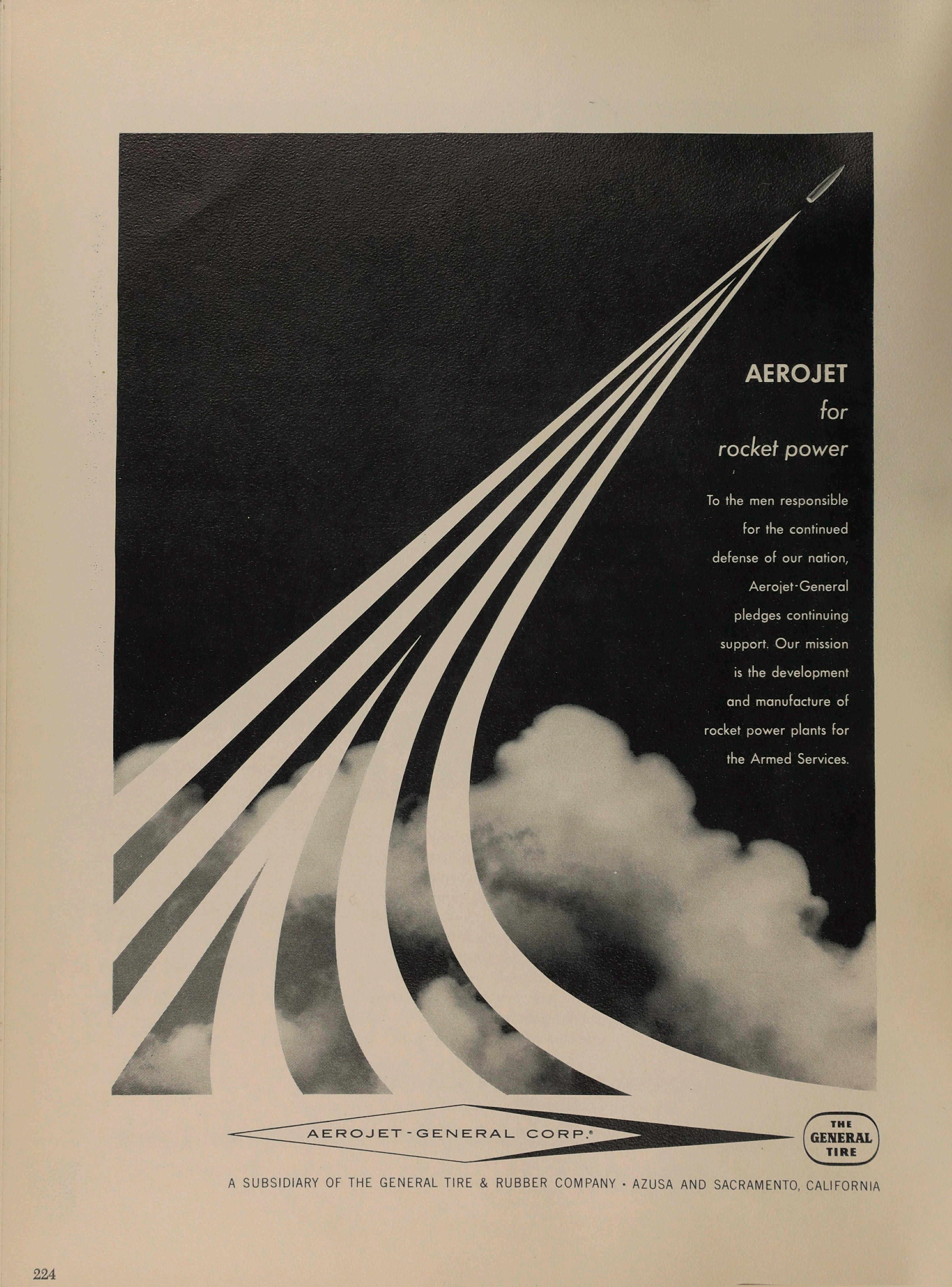 To the men responsible for the continued defense of our nation, Aerojet-General pledges continuing support. Our mission is the development and manufacture of rocket power plants for the Armed Services.