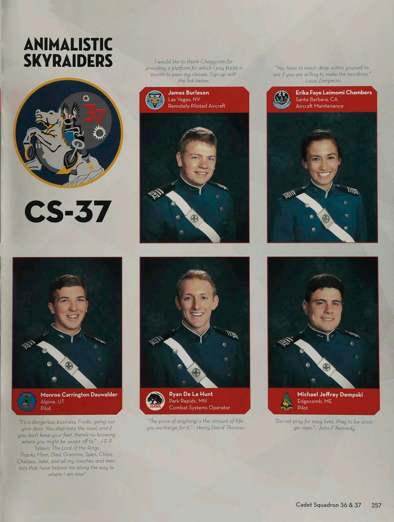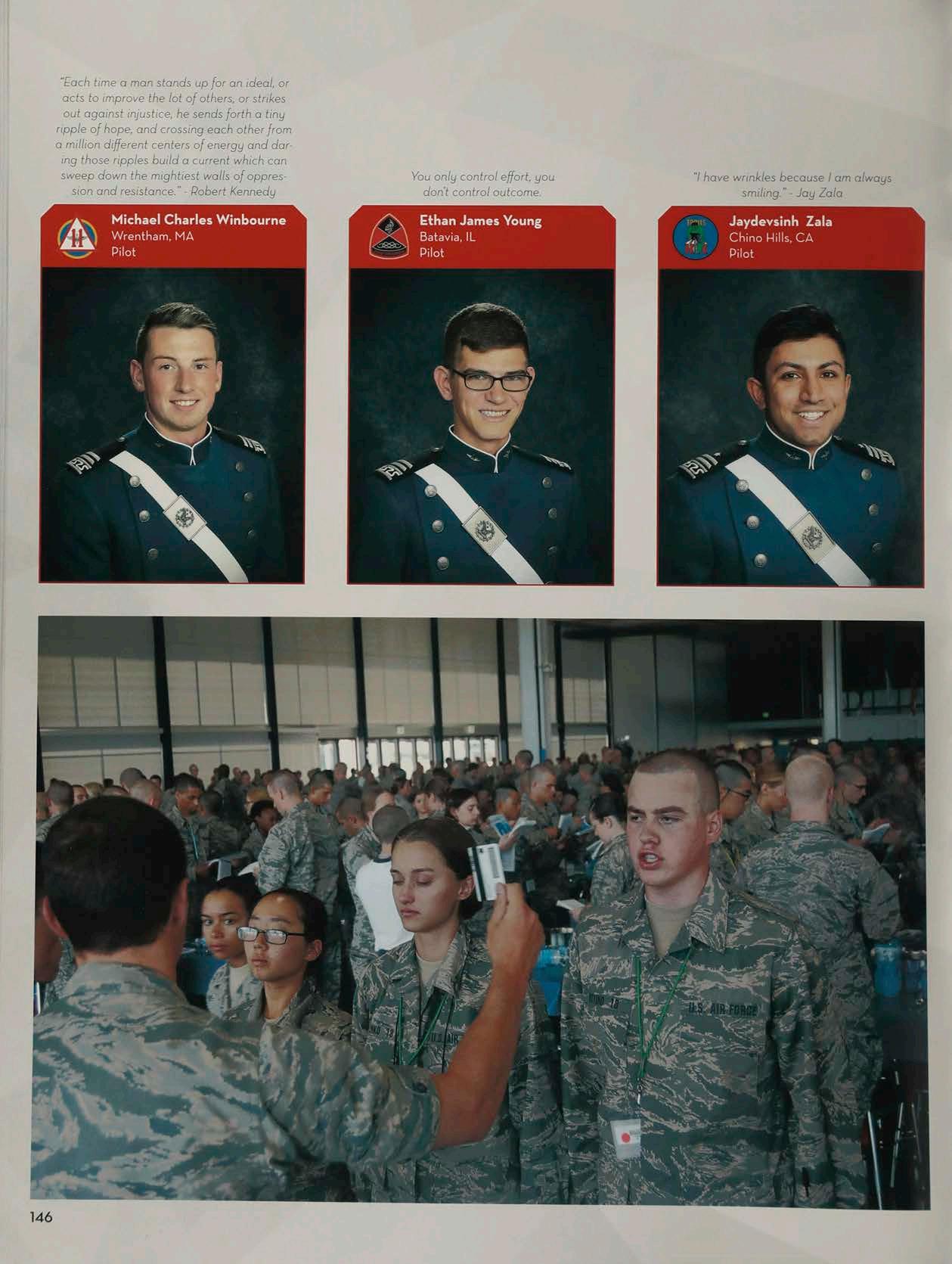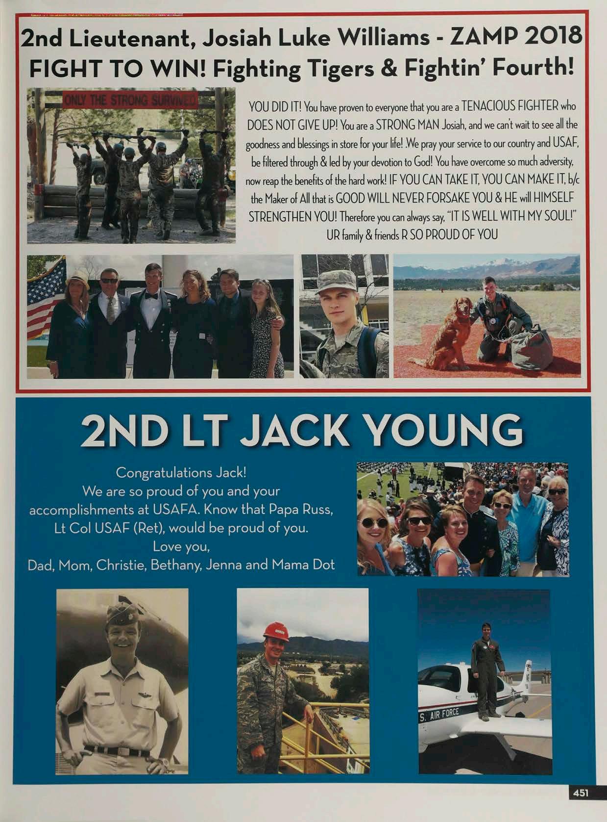 In 2015, the Class of 2018 chose Louis Zamperini to be its class exemplar. Mis moral courage and strength, dedication to country, grit and resiliency were what we hoped to emulate during our time at the Academy and subsequently in active duty. These were the characteristics we saw and wanted to highlight as we put together this year’s yearbook. Inspired by the poster for “Zamp’s” biographic movie, the cover (and first page) of the 2018 Polaris highlights various challenges cadets face in their four years at USAFA.