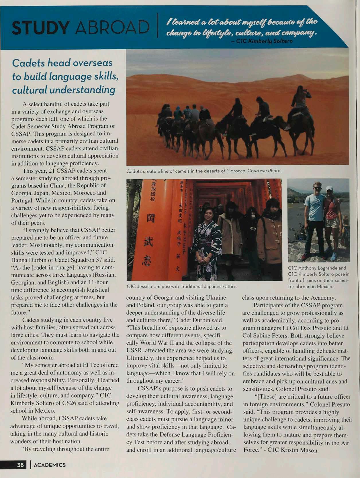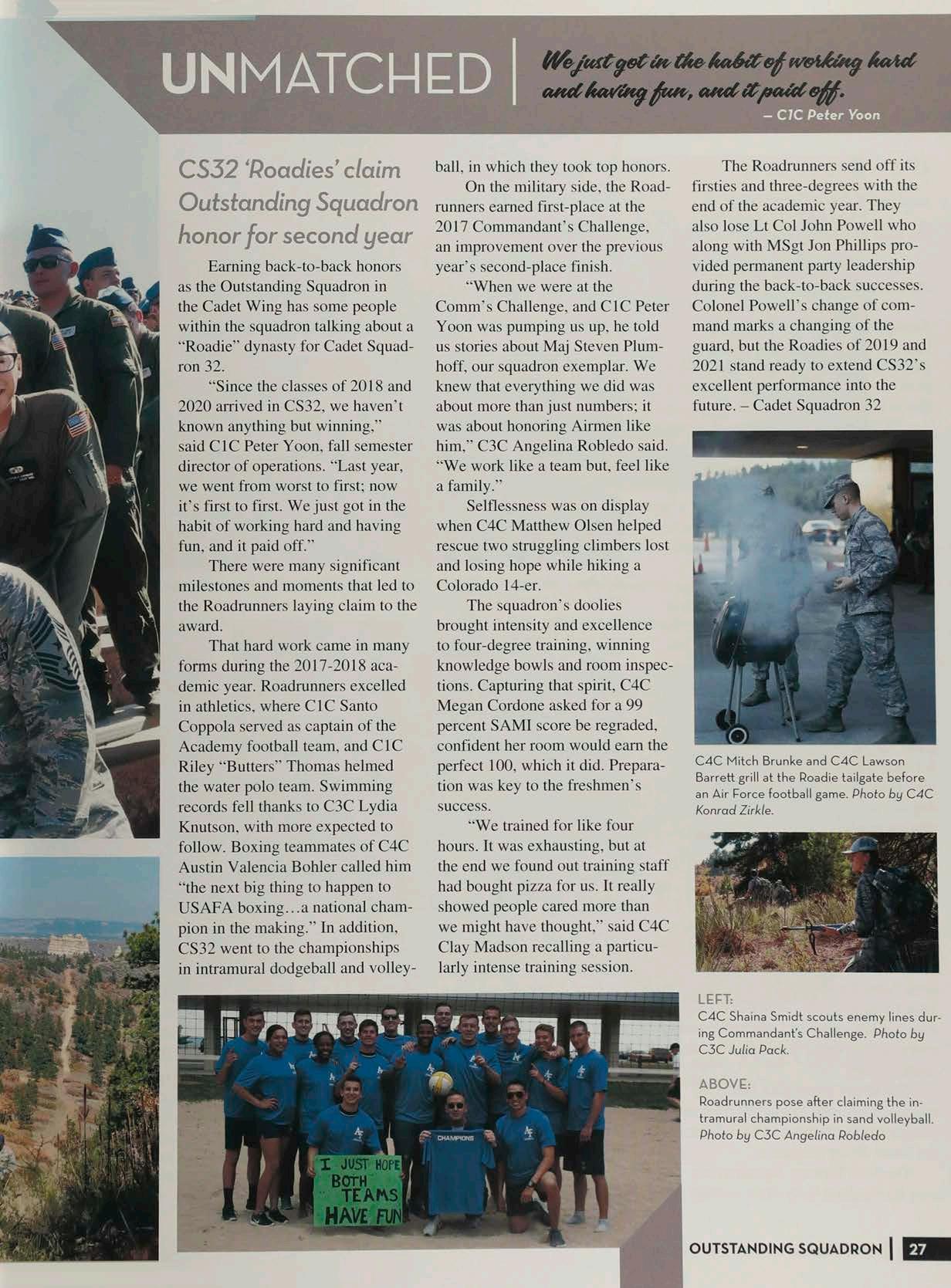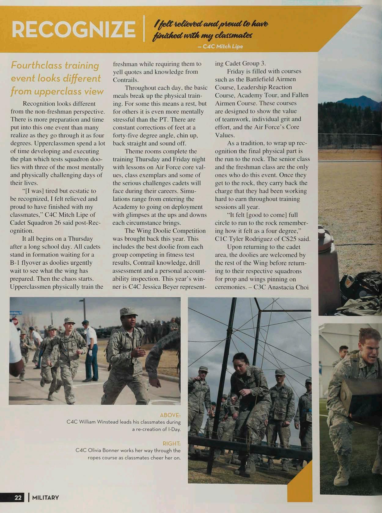 The inspiration, accomplishments and tenacity we’ve gotten to see during our time as editors is indescribable and weare beyond grateful to have had this experience. The talent amongst the Cadet Wing is unparalleled, but what amazed us even more was each cadet’s desire to better themselves; not allowing failure to define them and continuously striving for greatness. Cadet life is challenging. Anyone can feel good when things are going well, but to stand up and fight back when you are at your lowest is true strength. The real challenge lies in the moment you think you can’t do it; the moment you are ready to give up. Standing up for yourself, what you believe in, and for those around you exemplifies the spirit of a warrior.
