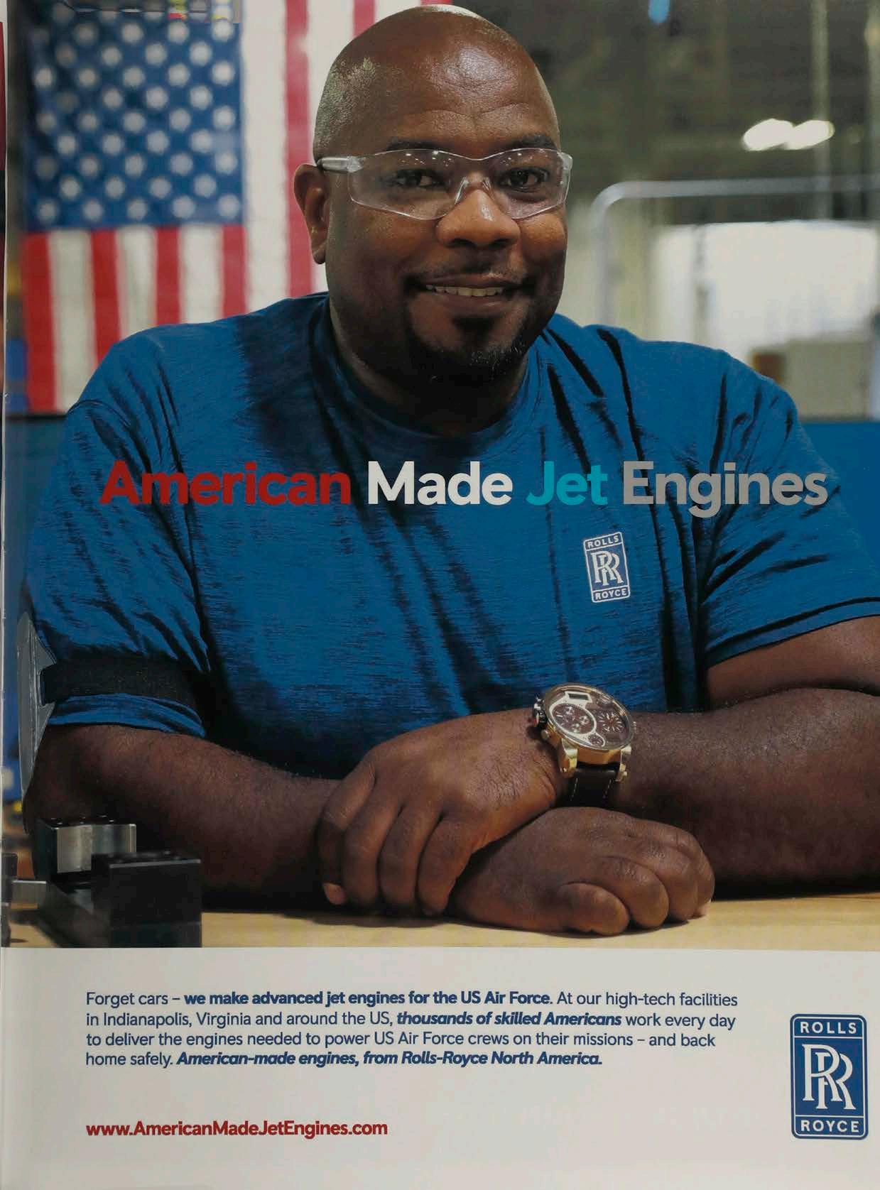 Forget cars - we make advancedjetengines for the US Air Force. At our high-tech facilities in Indianapolis, Virginia and around the US, thousands ofskilledAmericans work every day to deliver the engines needed to power US Air Force crews on their missions - and back home safely. American-made engines, from Rolls-Royce North America. www.AmericanMadeJetEngines.com
