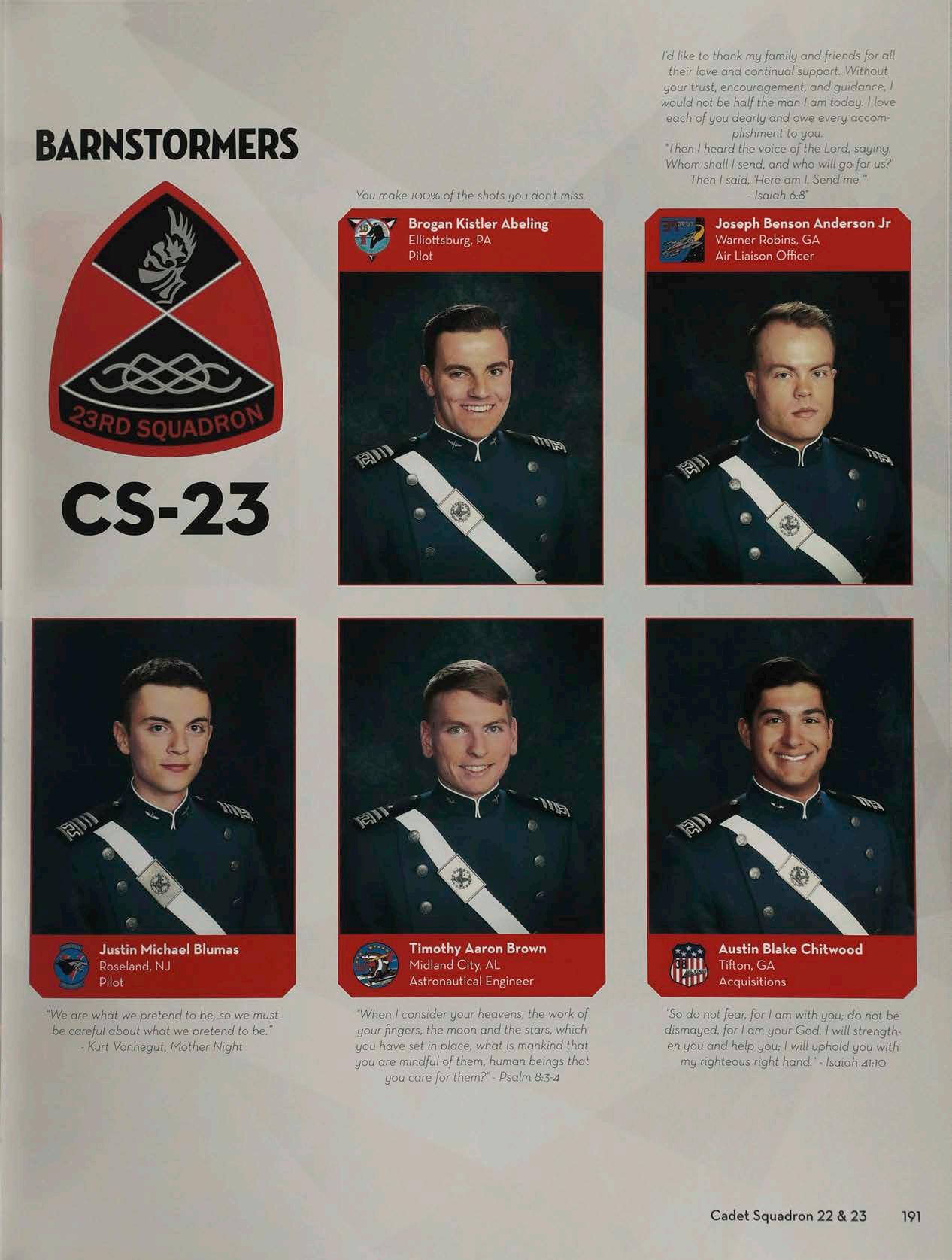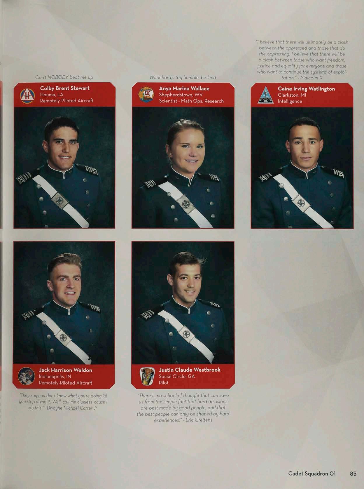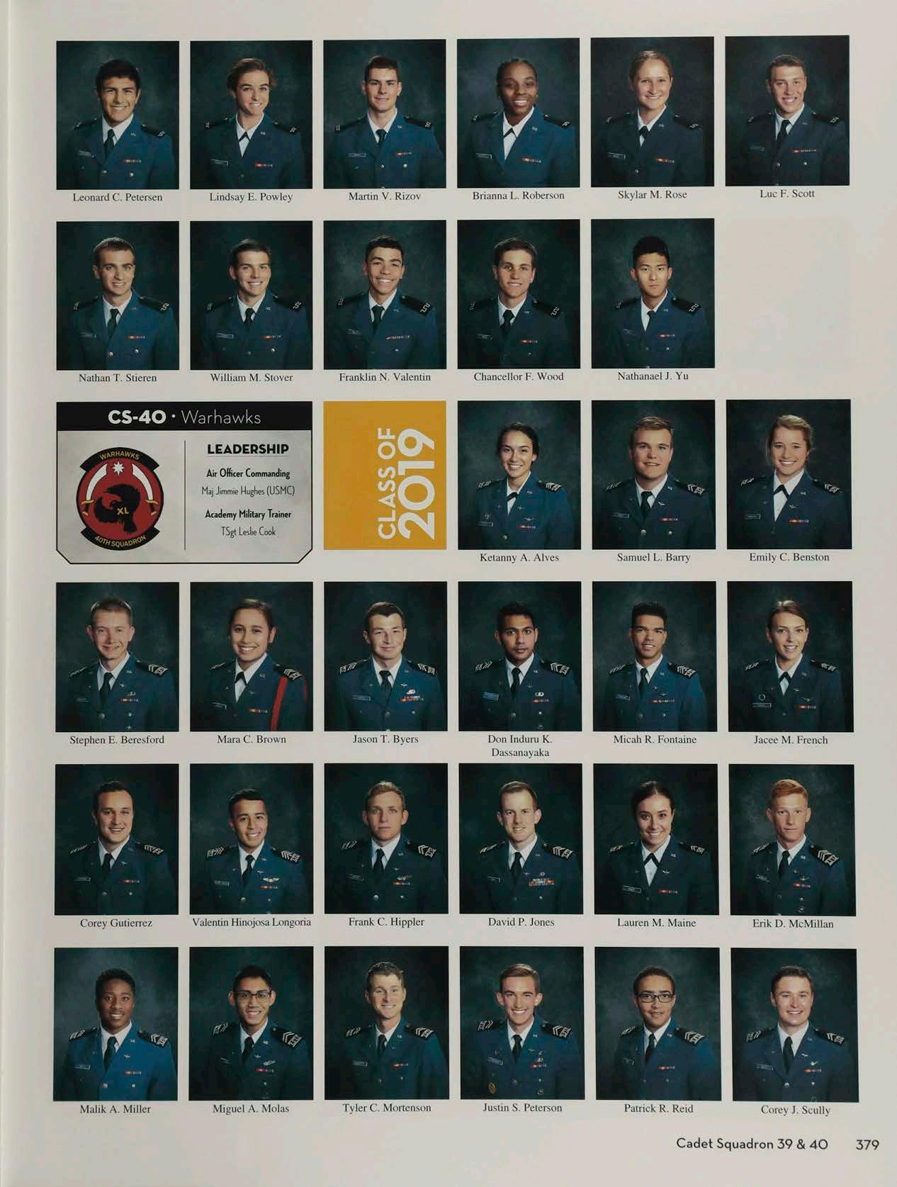 COMMANDANT: I see the Class of 2019 building upon the foundation the Class of 2018 set and leading the wing to new heights. They will be empowered to lead and make the next generation better than them. But with that empowerment comes the accountability in maintain standards and achieve excellence....which is easy to say but harder to execute. And while we are doing this... we always need to not forget to have fun! Developing relationships, bonds and solving issues together is part of this journey... this experience that bonds us to the long blue line.