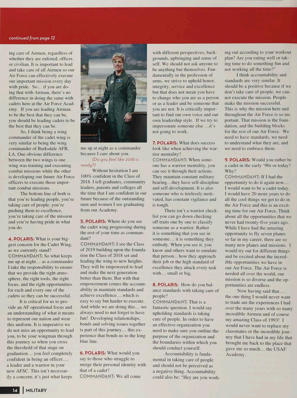 5. POLARIS: Where do you see the cadet wing progressing during the rest of your time as commandant?