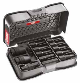 Assortiment de douilles à chocs six pans en boîtier modulaire Assortiment avec douille de butée hexagonale courte Assortiment de embouts à chocs en boîtier ABS Assortiment de embouts à chocs en boîtier ABS 16 PIÈCES 16 PIÈCES 8 PIÈCES 6 PIÈCES DESCRIPTION RÉF./DIMENSION PCS. Douilles porte-embouts à chocs Douilles porte-embouts à chocs 685 Embouts à chocs pour vis six pans creuses - raccord 1/2” 687 Embouts à chocs pour vis à empreinte TORX® - raccord 1/2” Embouts à chocs pour vis à empreinte PHILLIPS® - raccord 5/16” DESCRIPTION RÉF./DIMENSION PCS. 235 1/2 M 10-12-13-14-1516-17-18-19-21-22-24-2730-32 mm 235 MCA/4-6 235 MDA/4-6 236 1/2 M/125