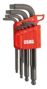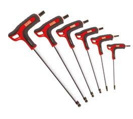 Set of 6 angled hexagon keys with special profiles and bimaterial handgrip