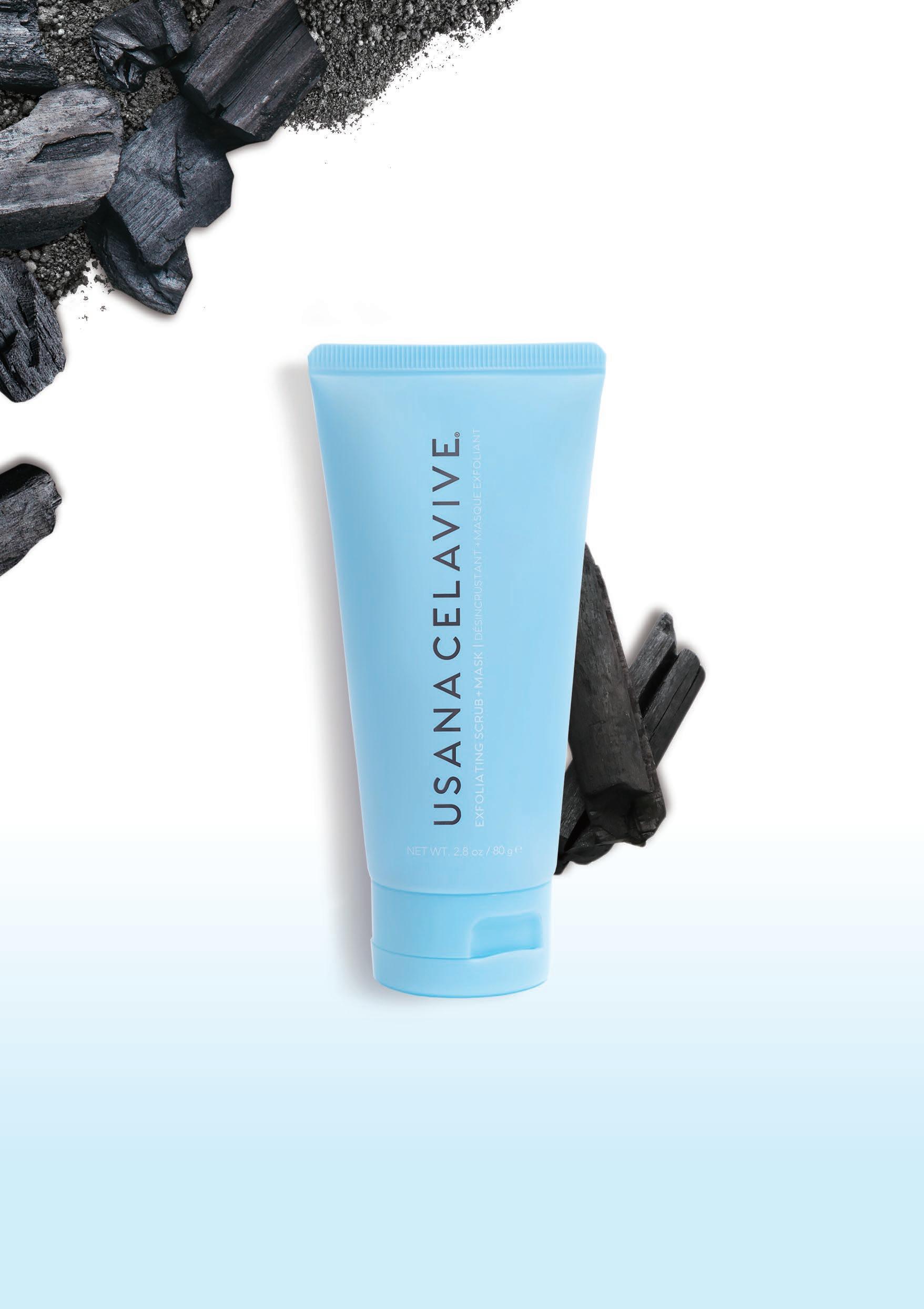 含有 蒟蒻 水凝微粒及 黑 炭粉,能去除粗糙及老廢角質,平滑肌膚,並可吸 附髒污及油脂,深層潔淨毛孔 。獨特 Olivol 綜合植物營養素及山茶花萃取