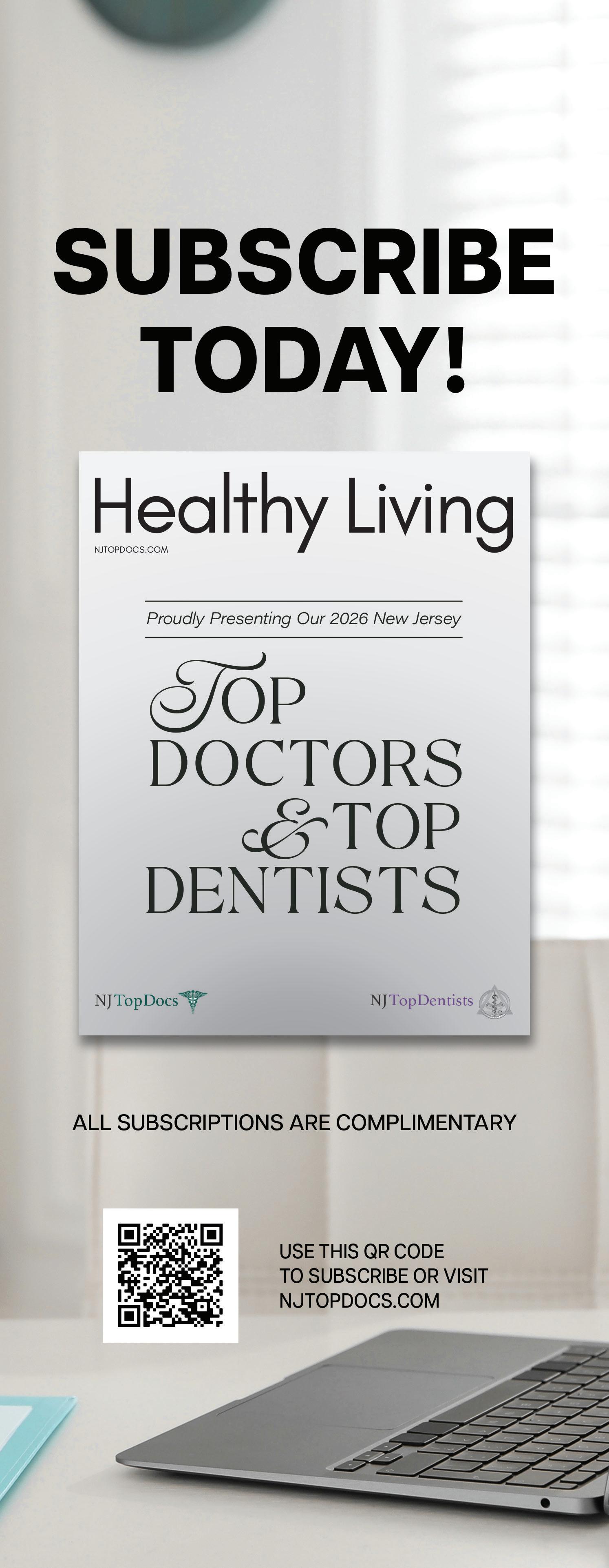 Peruse the following pages to get better acquainted with some of our NJ Top Docs and NJ Top Dentists and feel free to browse our extensive collection of approved providers on page 53 of our directory or online at www.NJTopDocs.com.