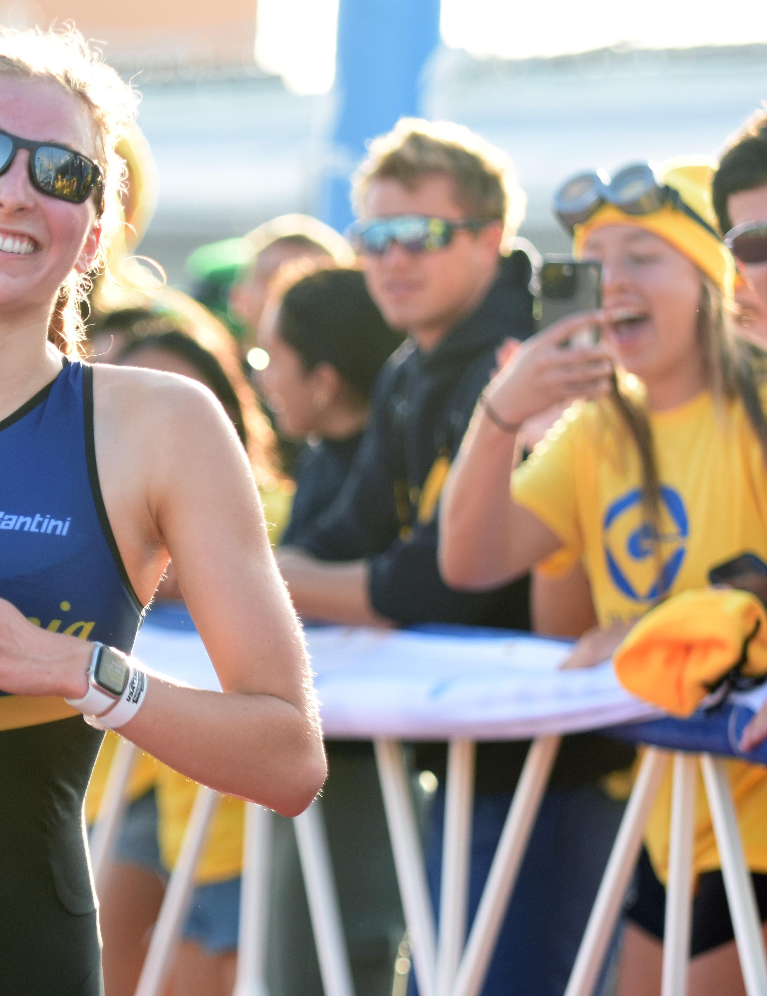 University of California-Berkeley fans cheer on their athletes at the 2025 USA Triathlon Collegiate Club National Championships in Miami. CLASH Endurance hosted the high-energy, fun event that featured more than 100 collegiate clubs from across the country, racing for school pride and national titles.